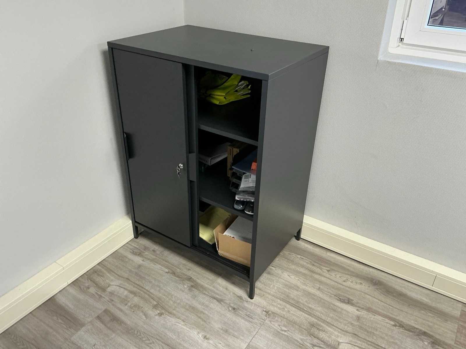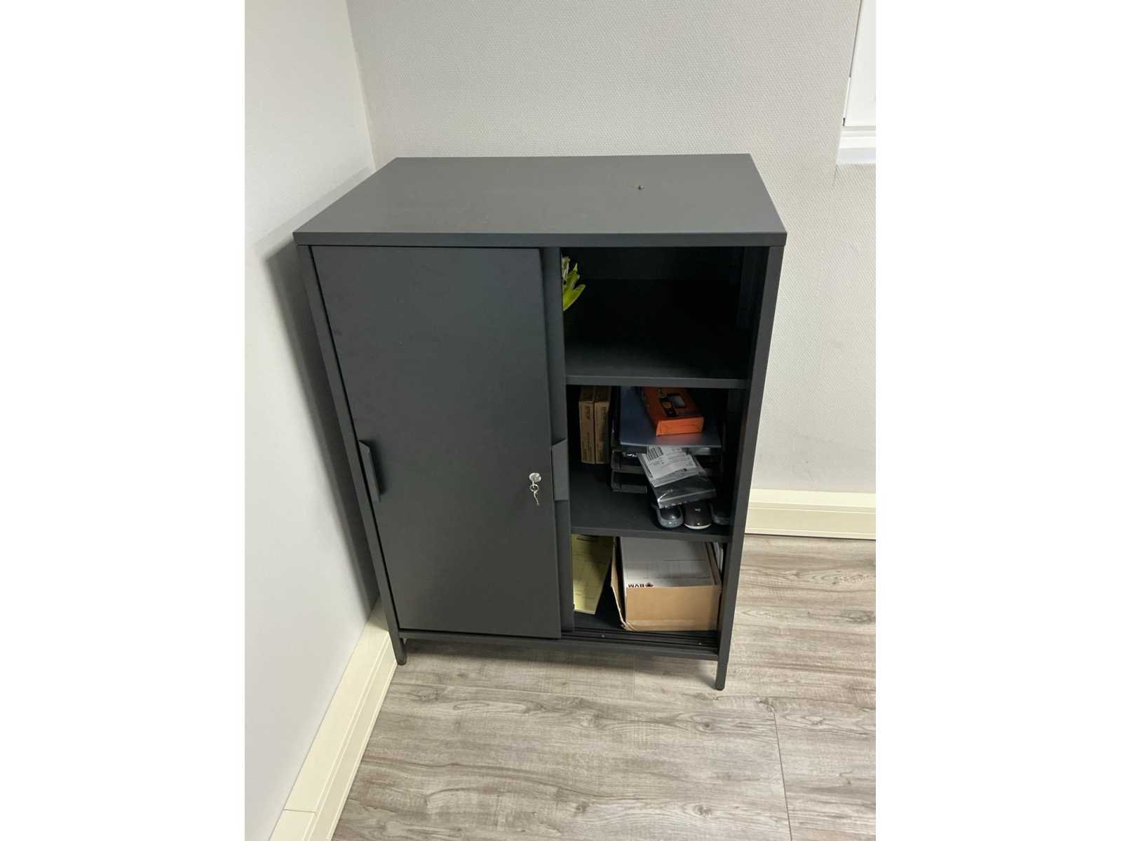 Exclusief computers en computerbeugels, inclusief stalen schuifdeurkast afm. 80x55x110 cm Lengte: 160cm Breedte: 110cm