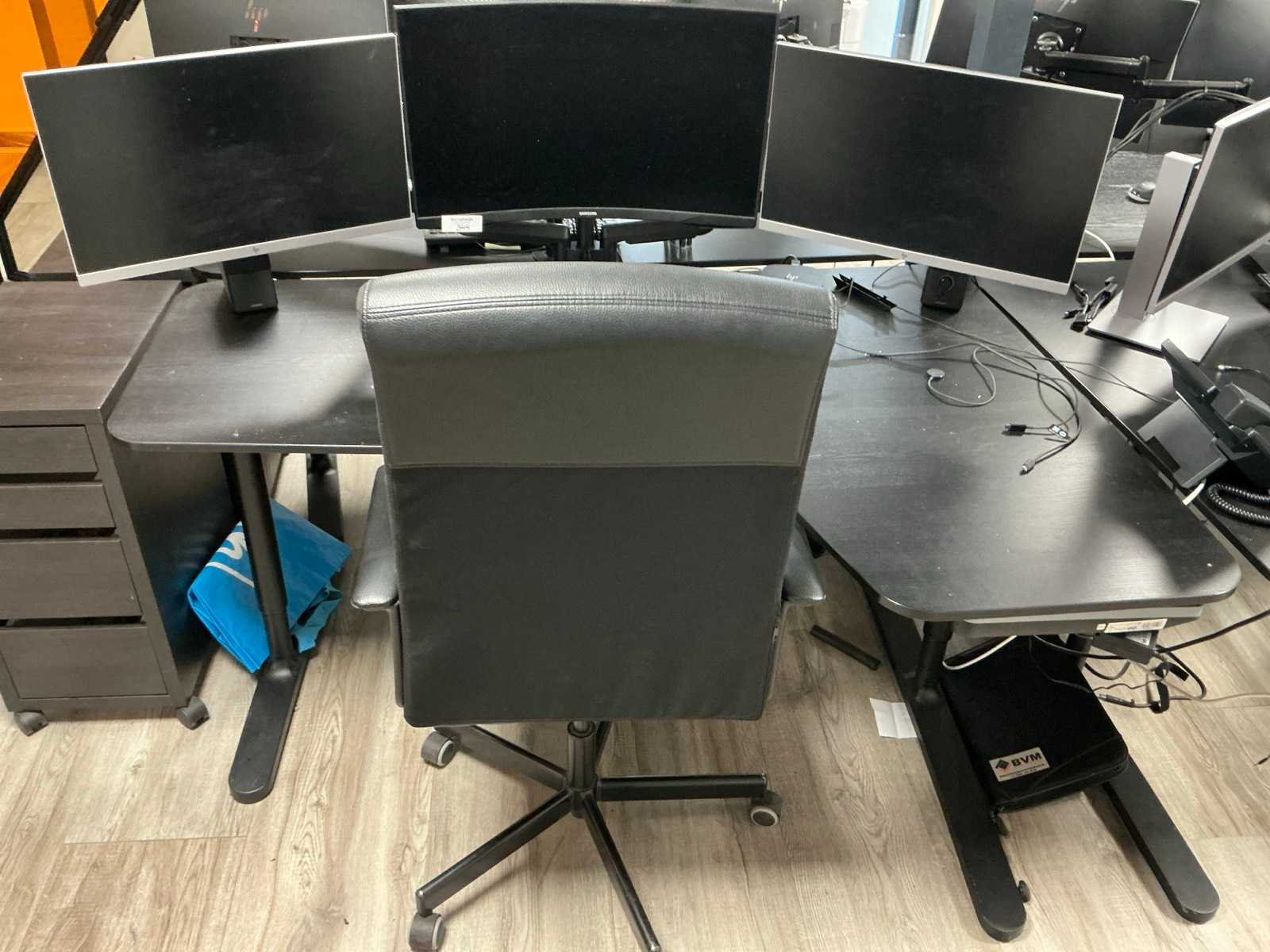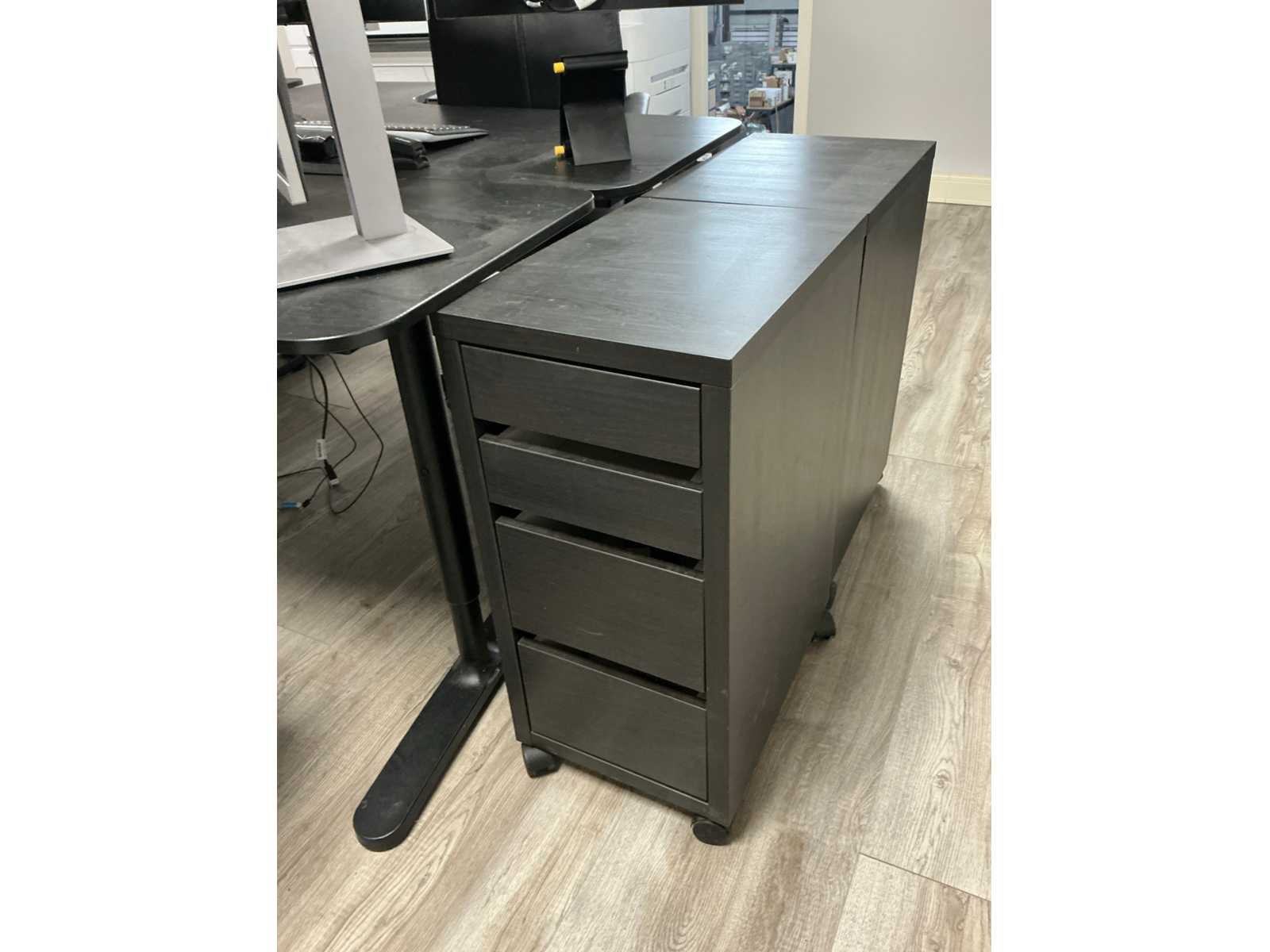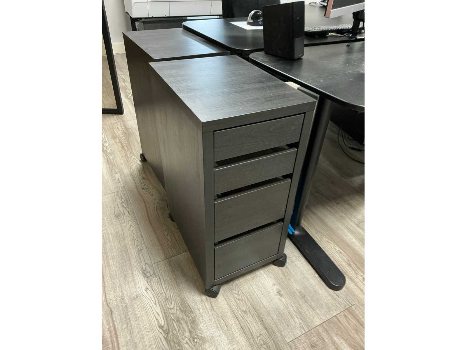 L-vormig bureau met bureaustoel en ladenkast (4x)
