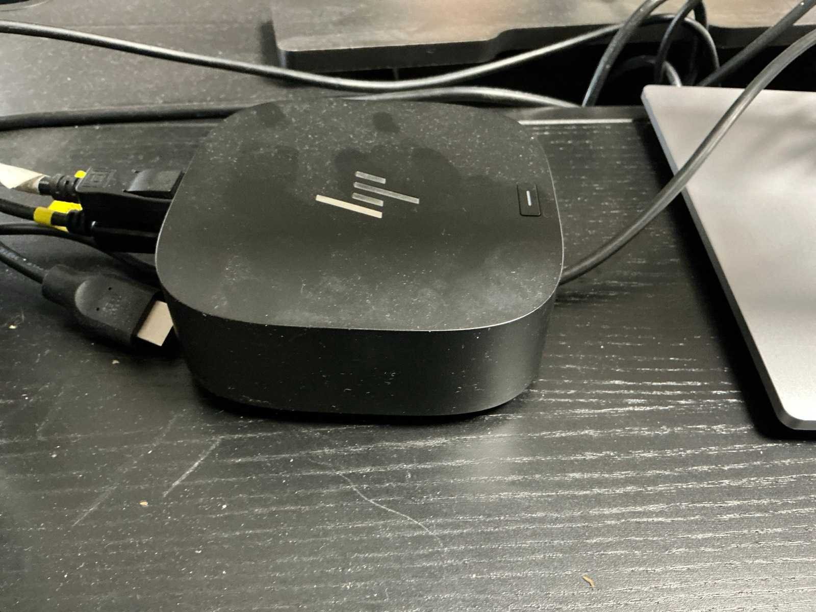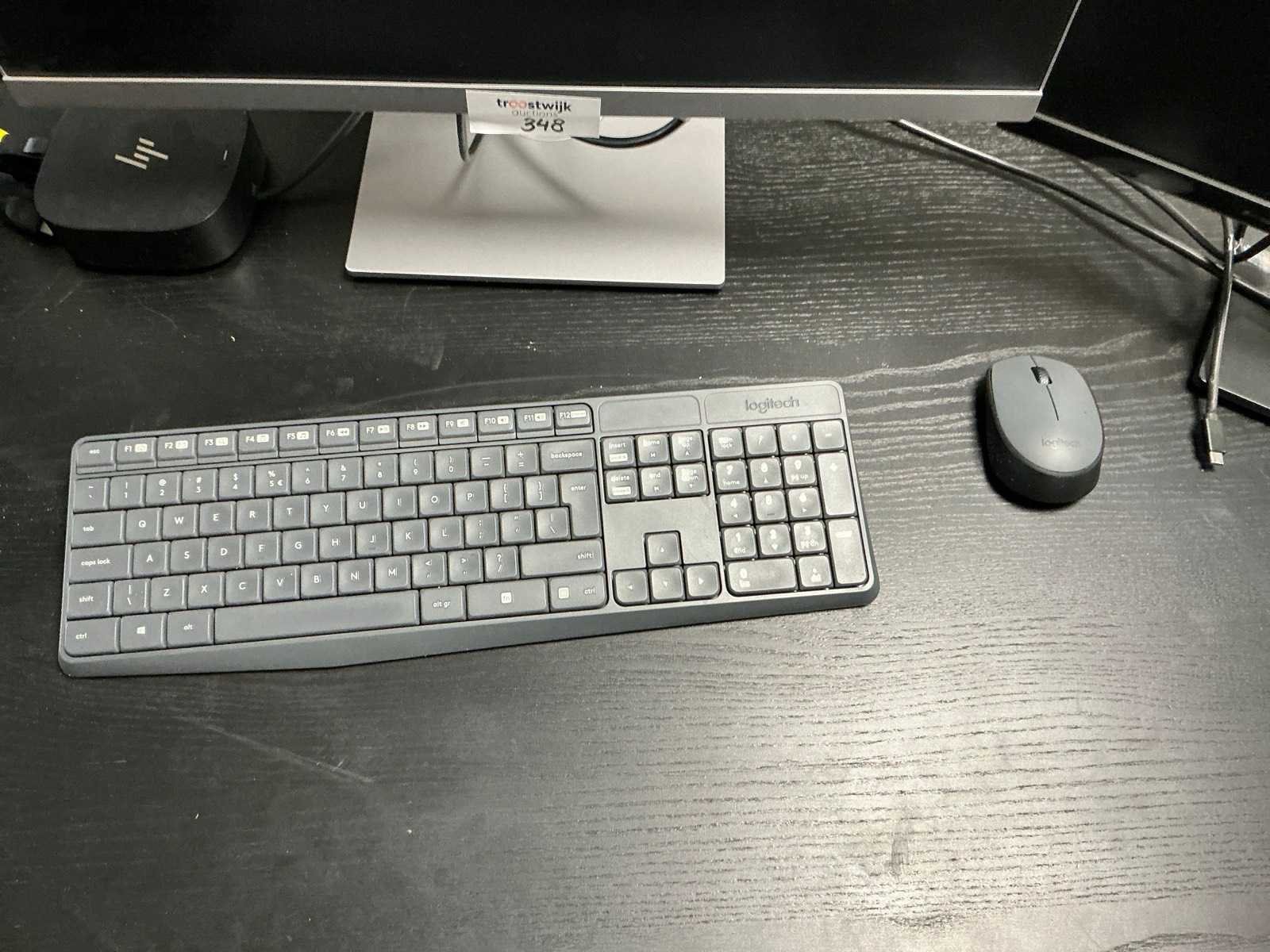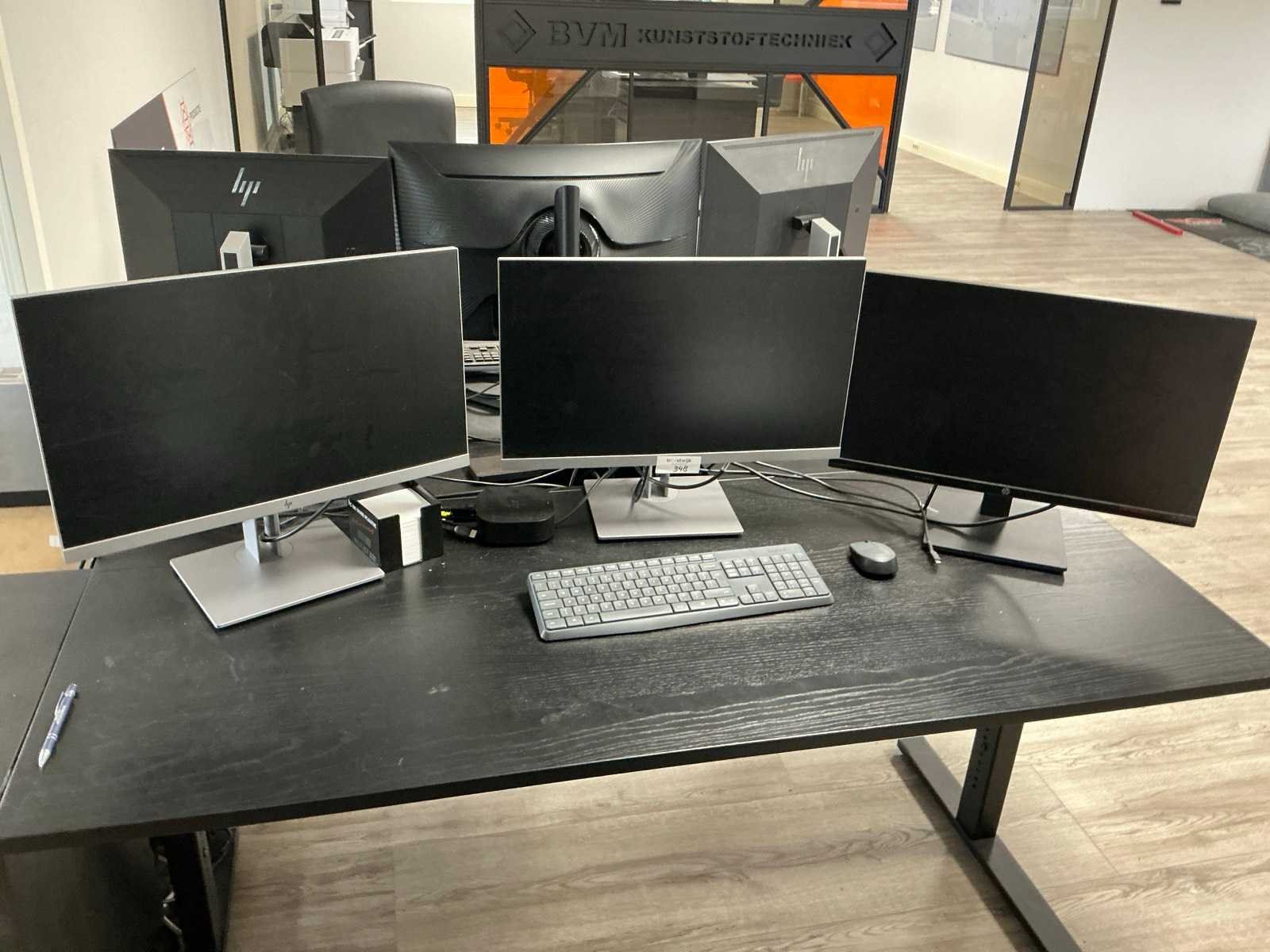 Bestaande uit HP USB-C dock G5 docking station, Logitech draadloos toetsenbord en muis en 3x HP E243 monitor