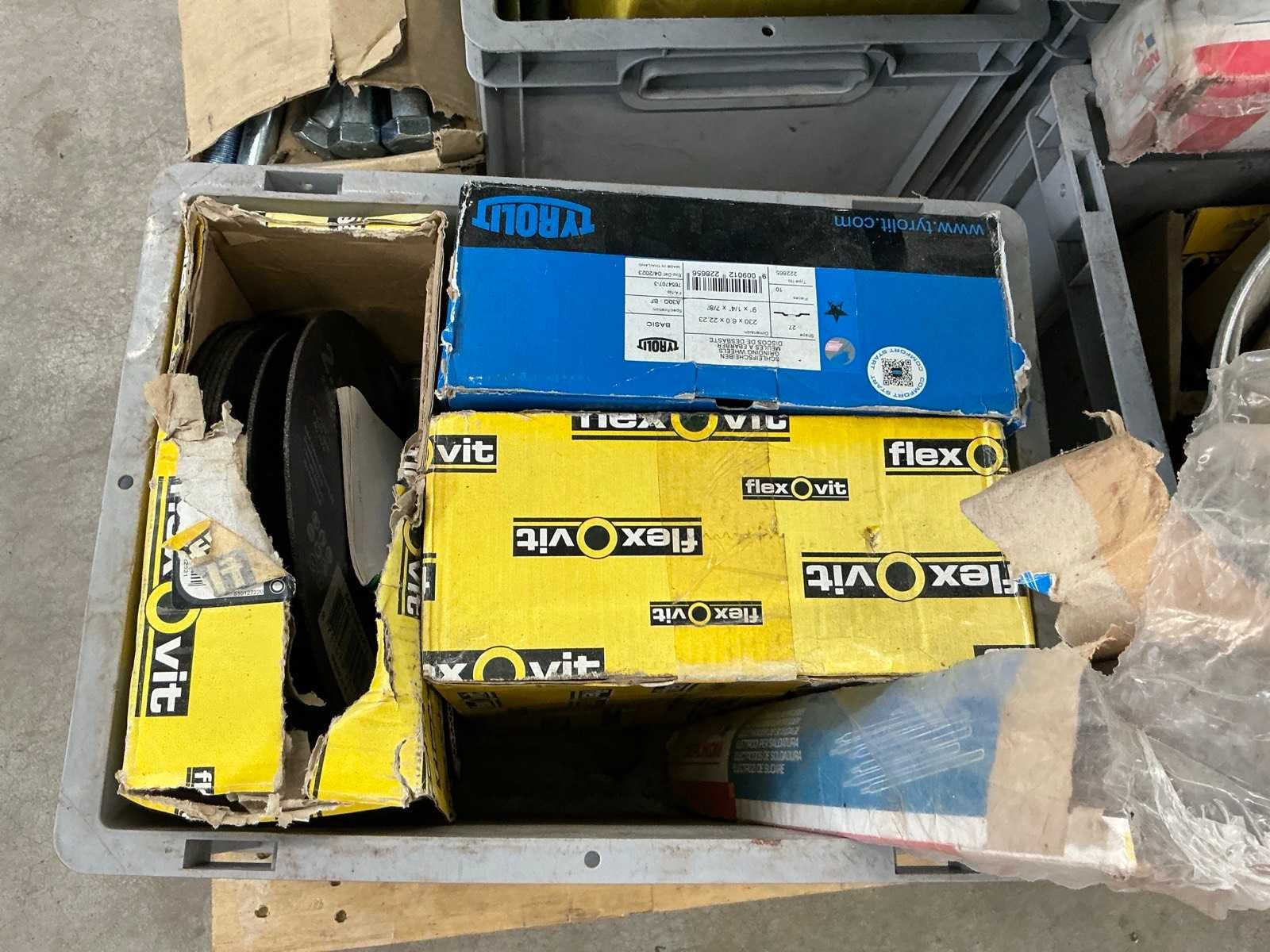 Waaronder Fabory M24 zeskantbouten, Flexovit slijpschijven etc
