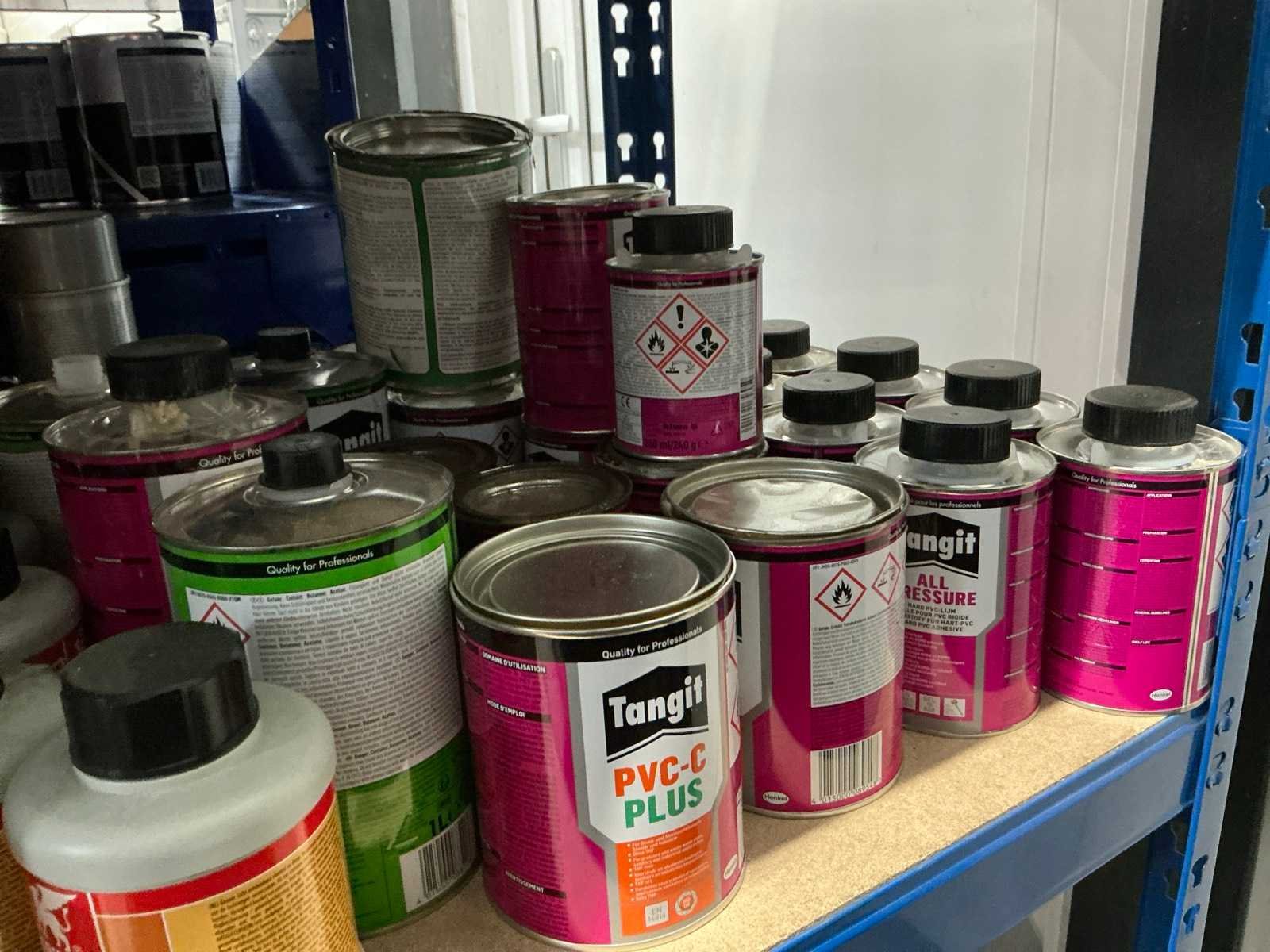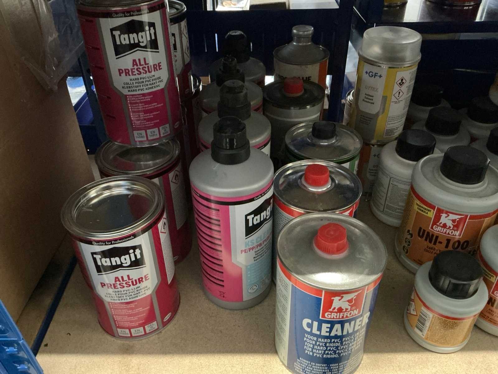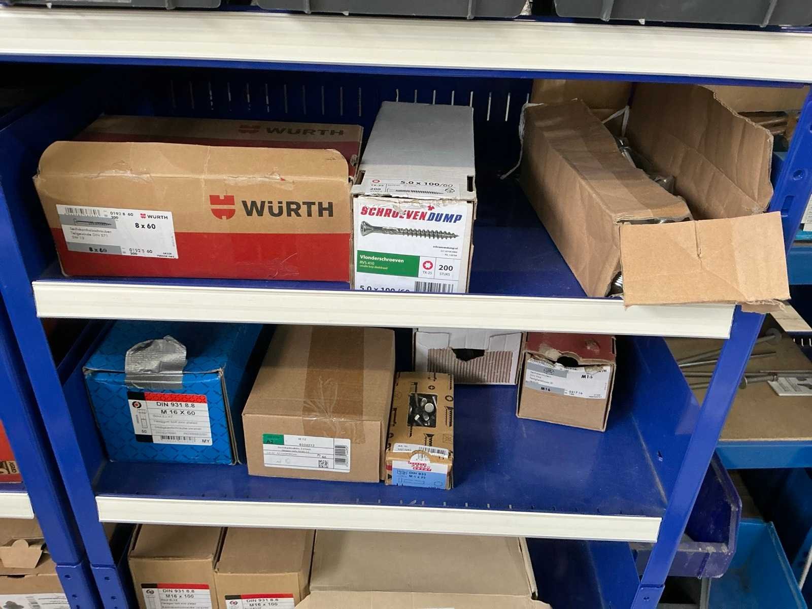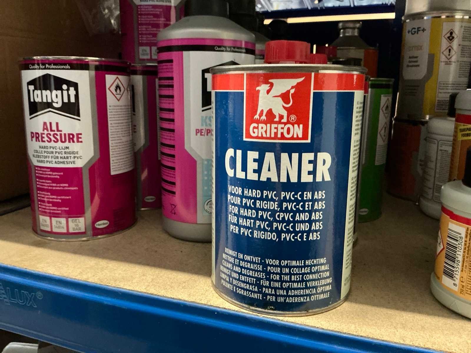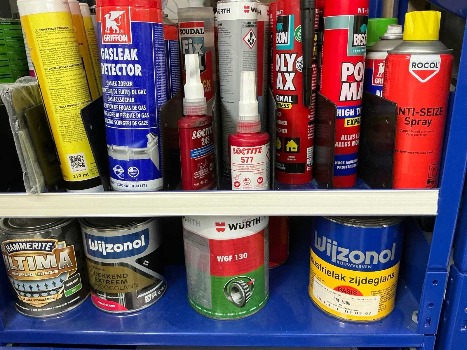 Inhoud bouten, moeren, ringen, schroeven, pvc lijm (12x), gaslekzoeker (12x) etc