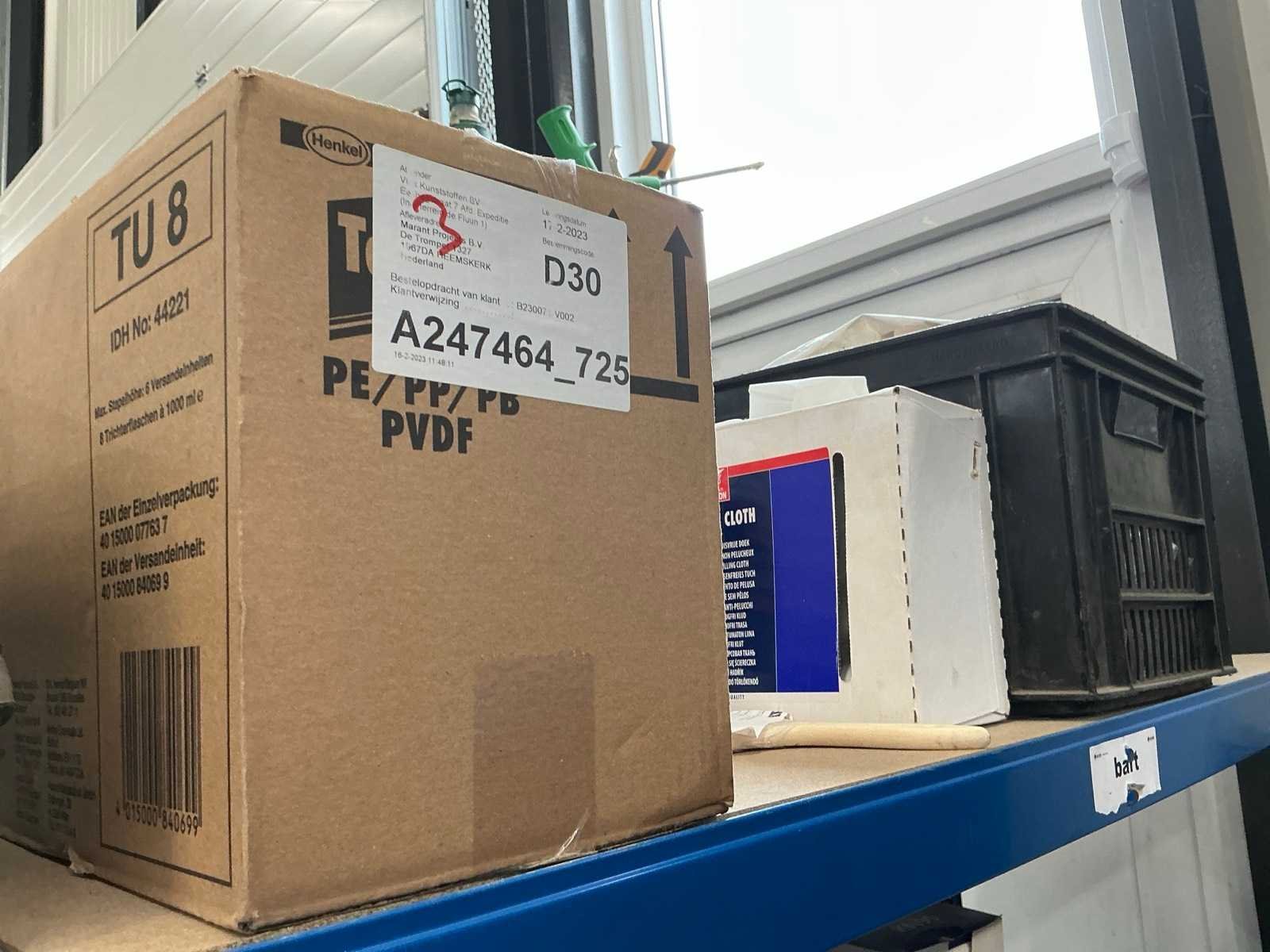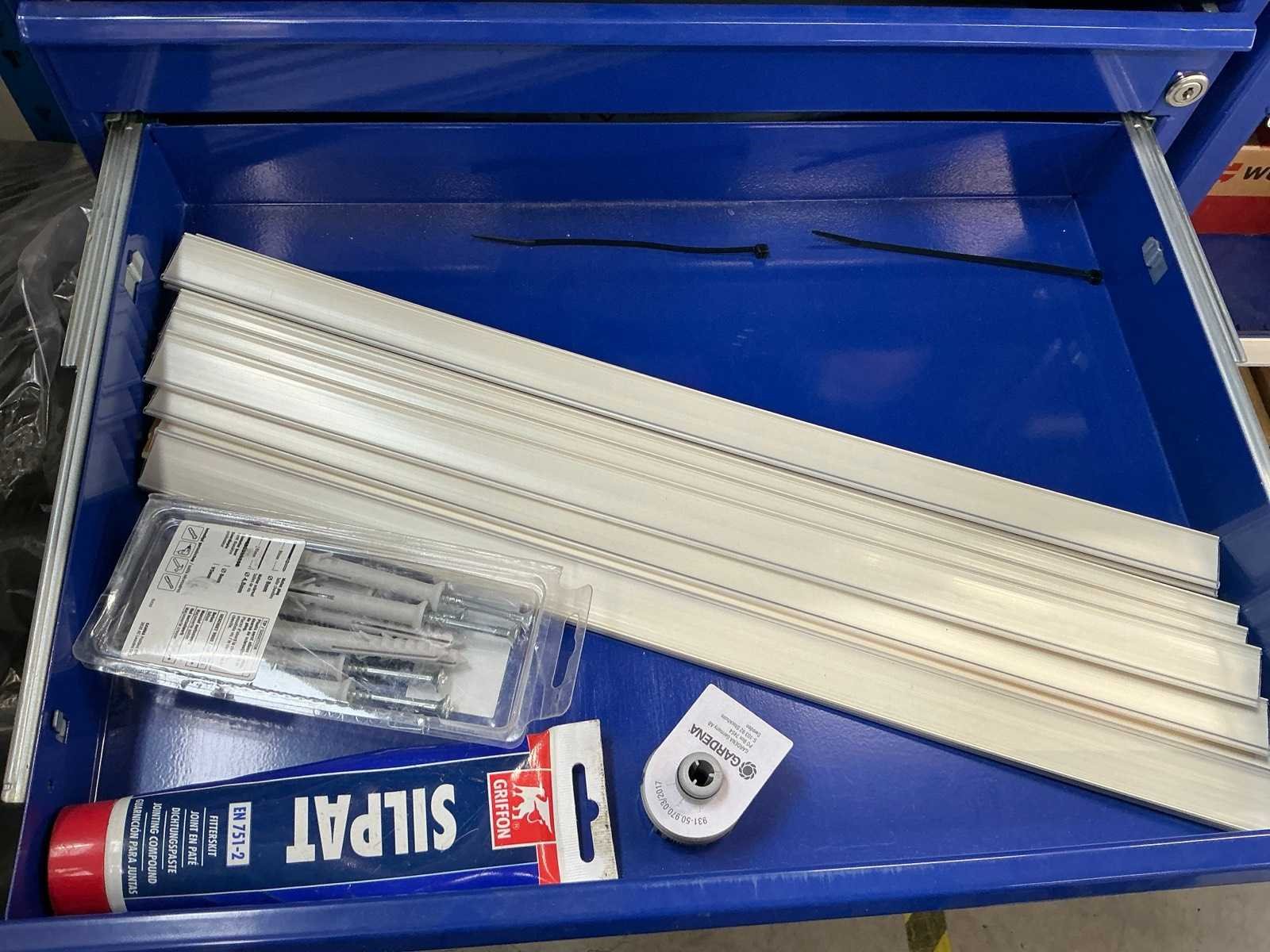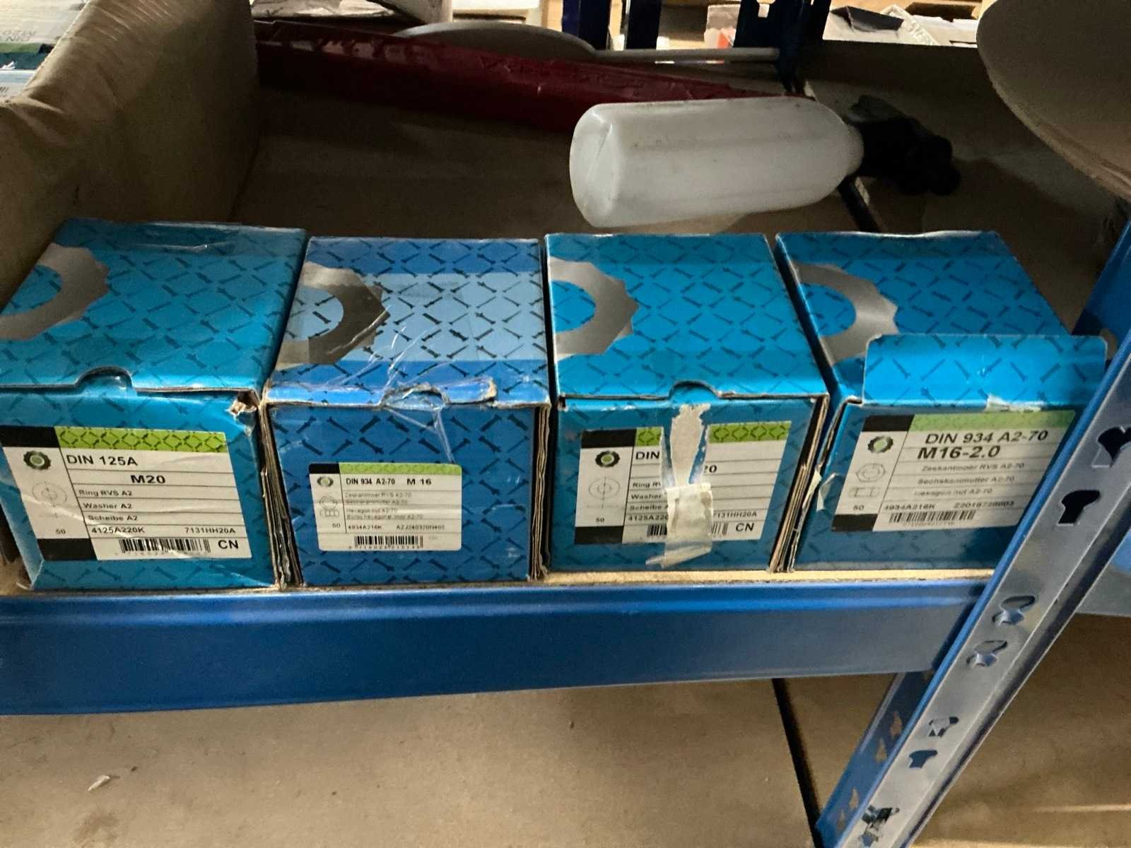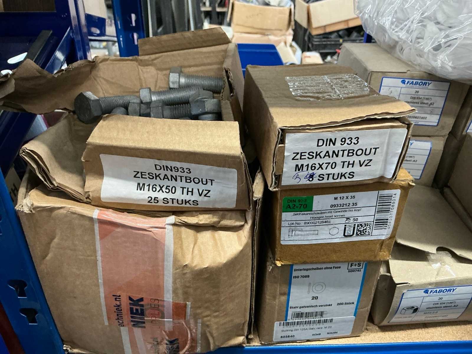 Inhoud bouten, moeren, ringen, schroeven, pvc lijm (12x), gaslekzoeker (12x) etc