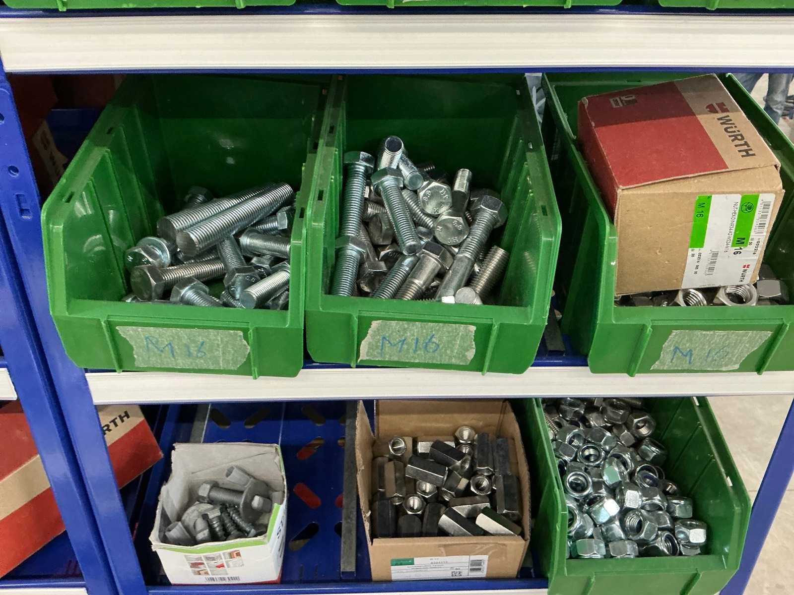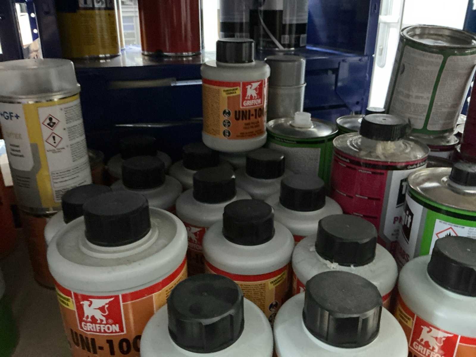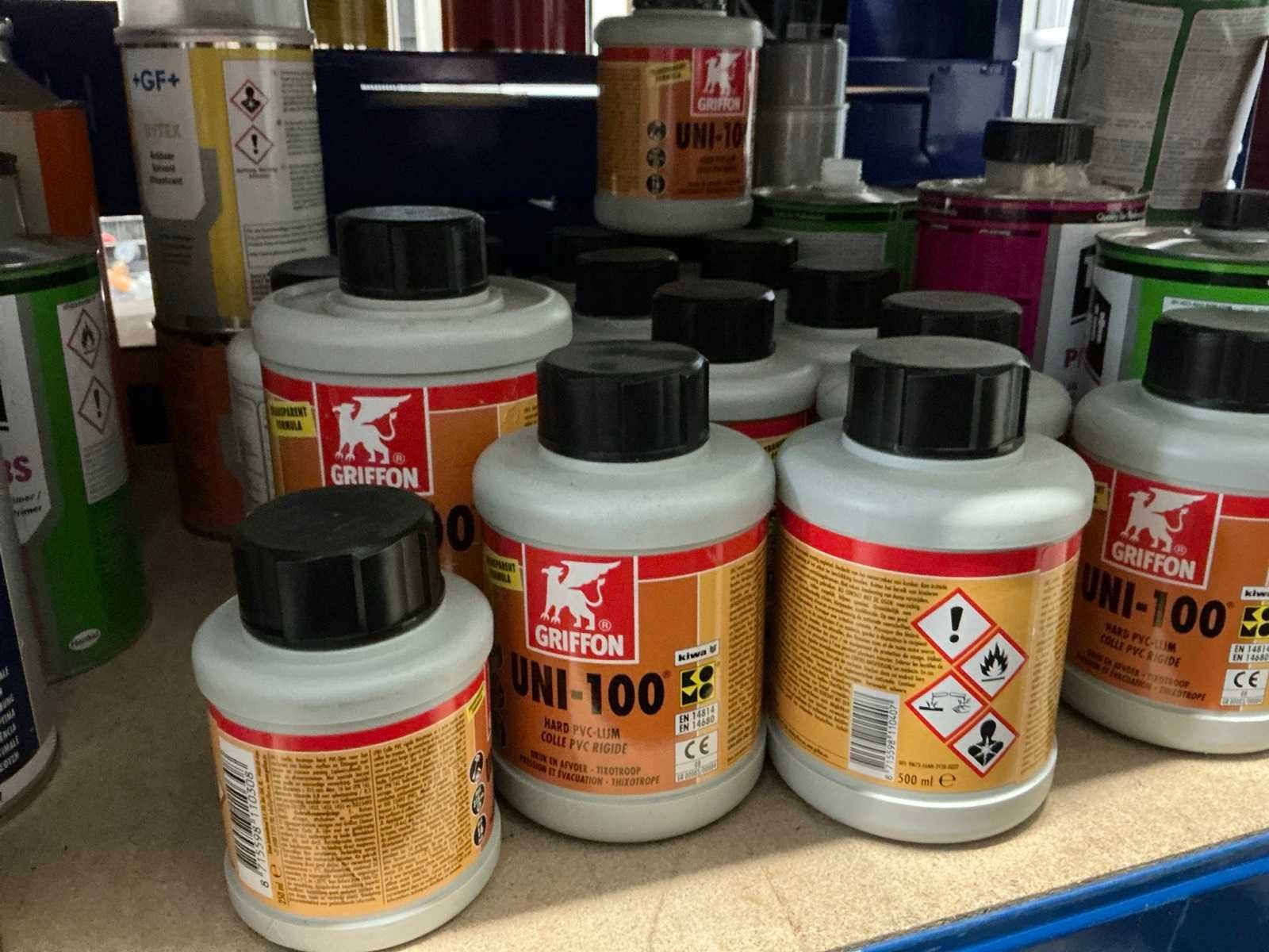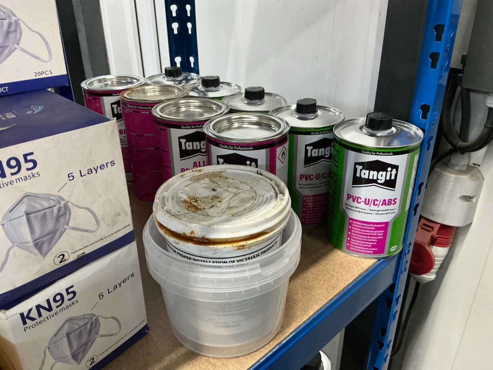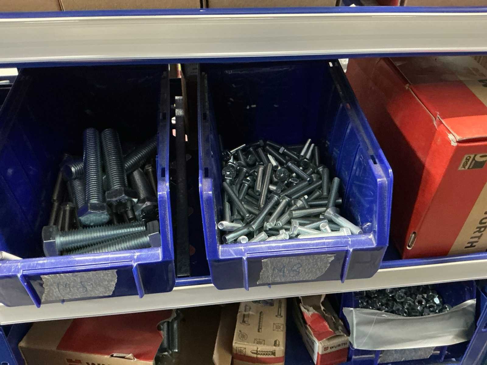 Inhoud bouten, moeren, ringen, schroeven, pvc lijm (12x), gaslekzoeker (12x) etc