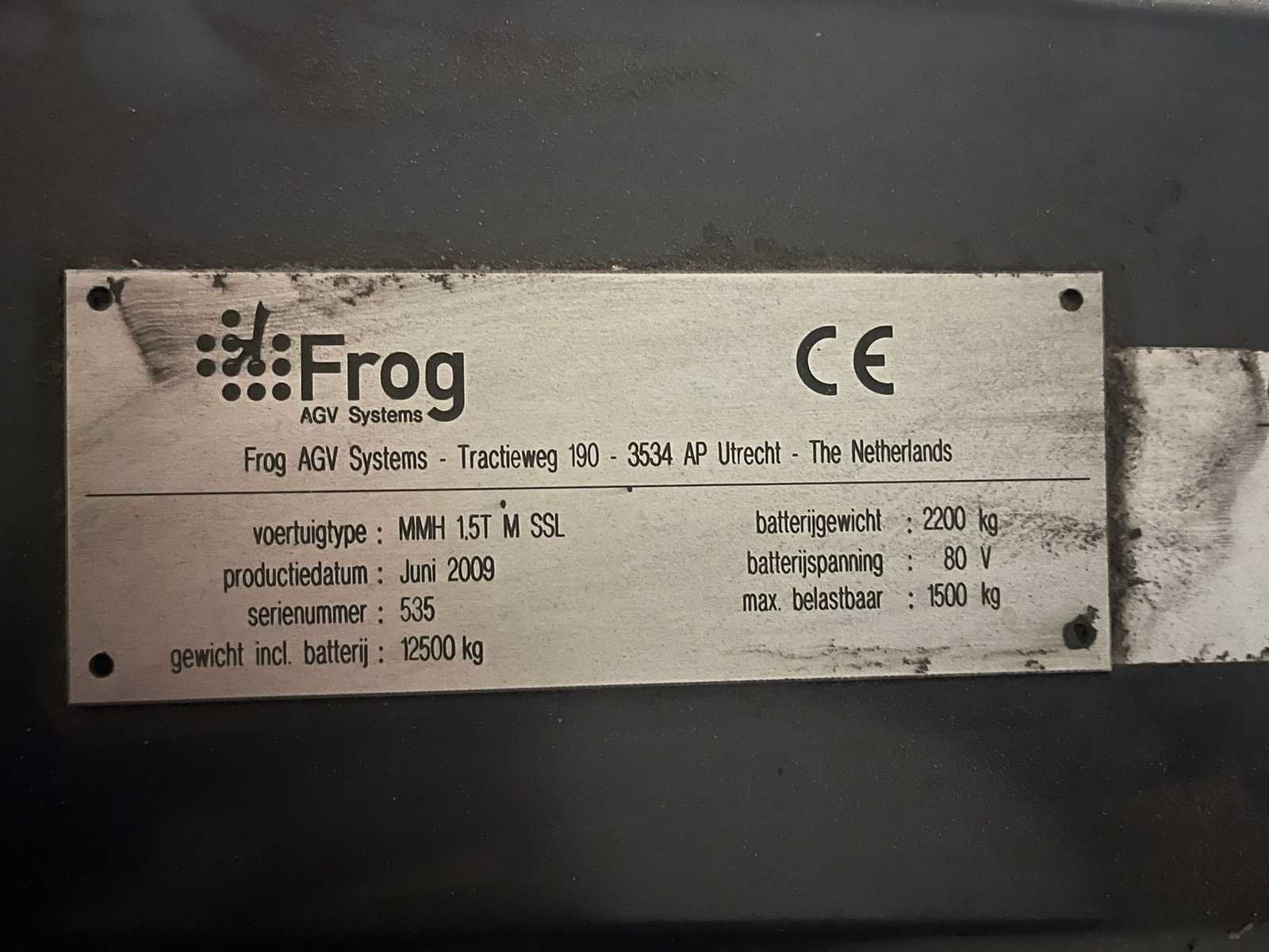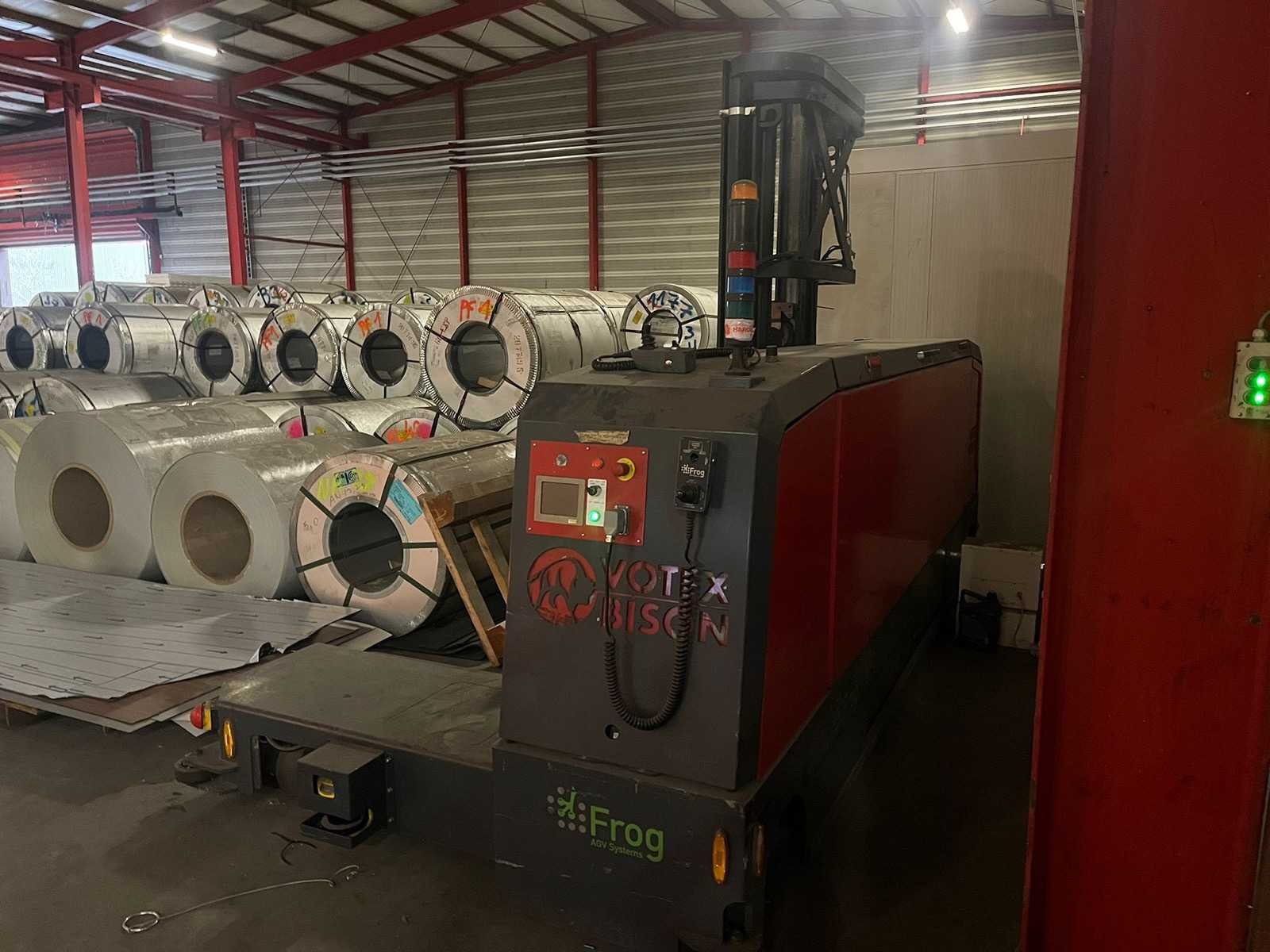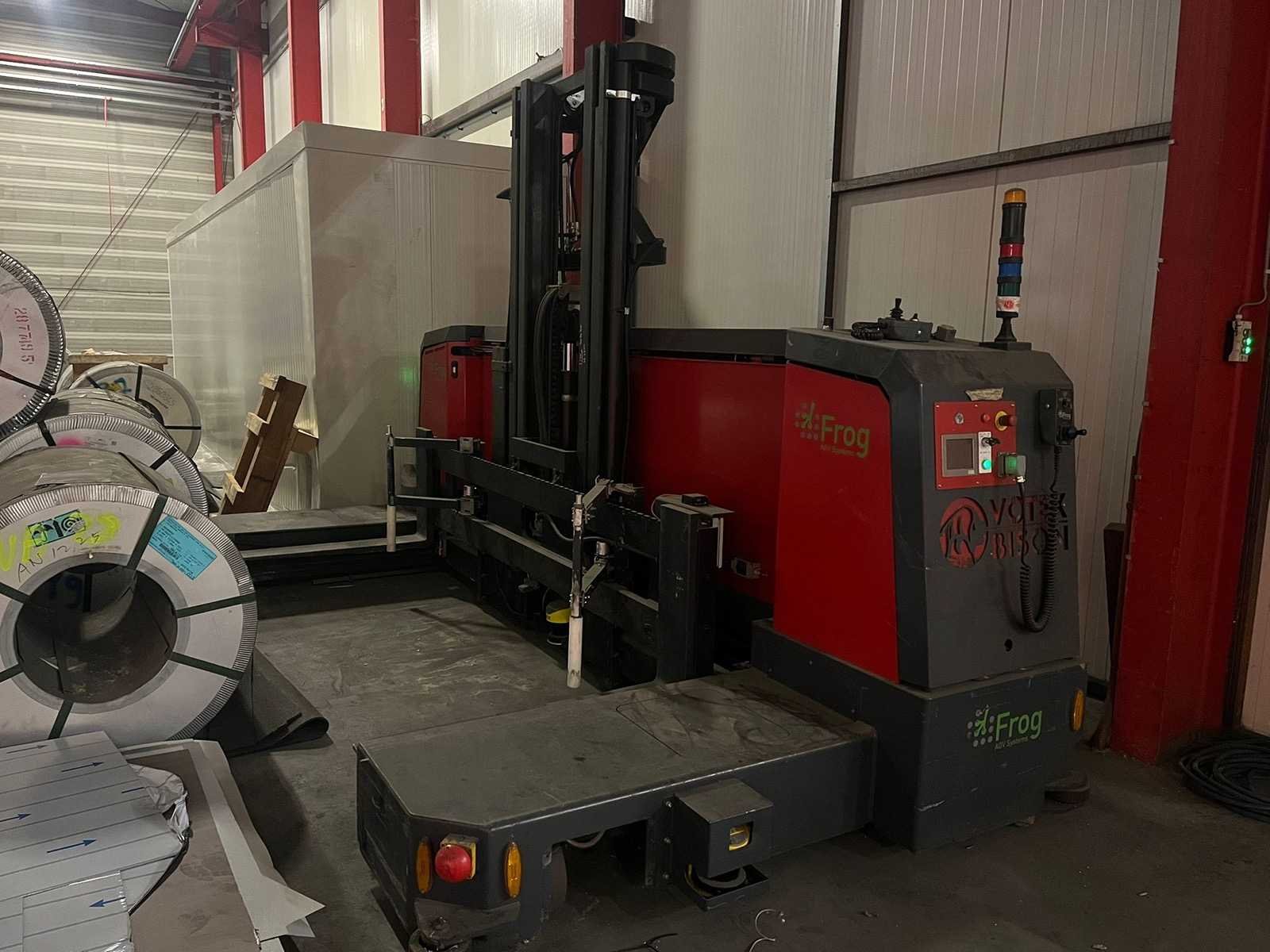 Voorzien van FROG AVG automatisch transportsysteem; incl fronius lader, Let op! kijken en afhalen op afspraak Merk: Votex Bison Type: AGV system Bouwjaar: 2009 Elektrisch: true Hefvermogen: 1550kg Hefhoogte: 6400mm Accu lader: true