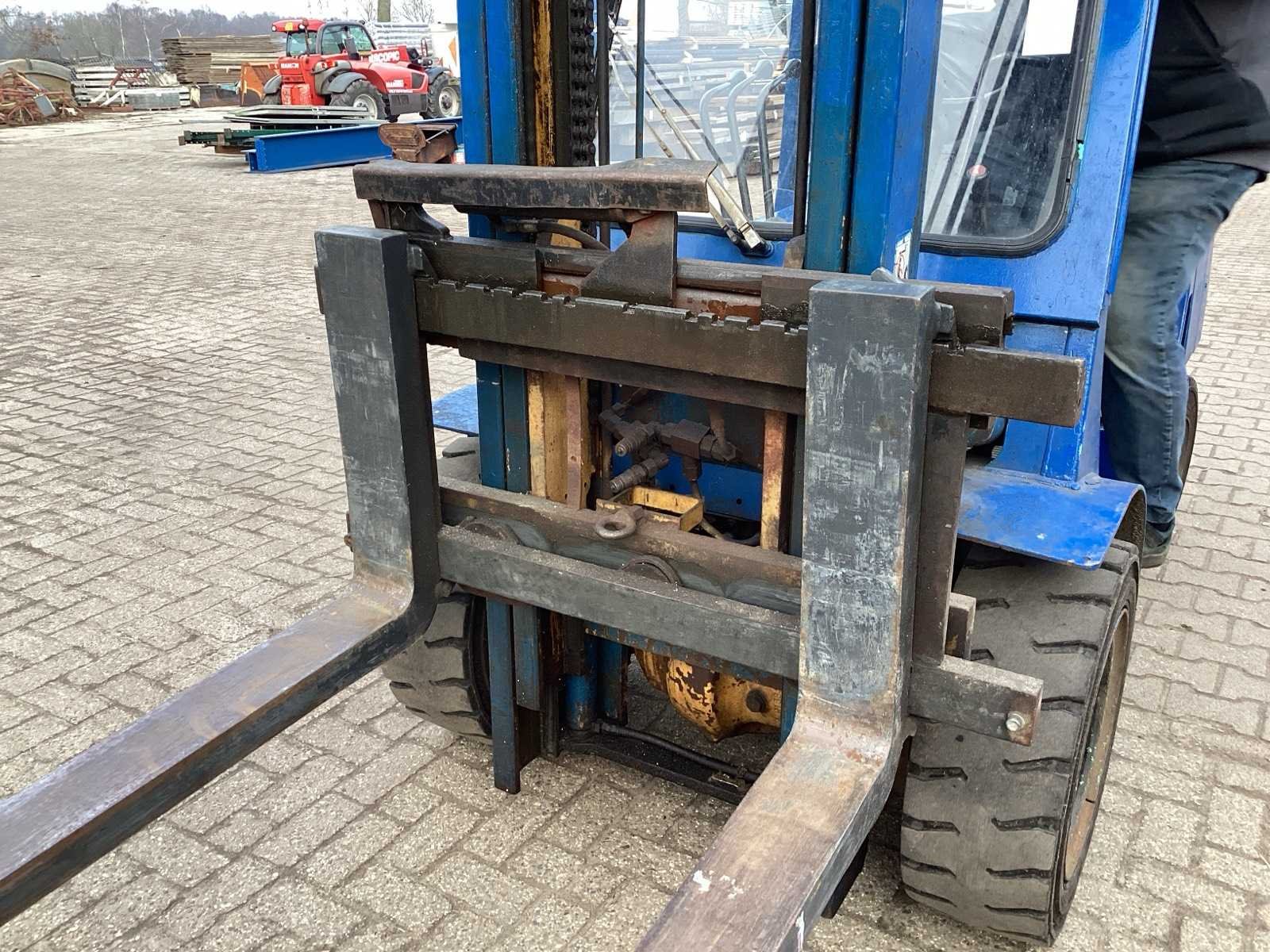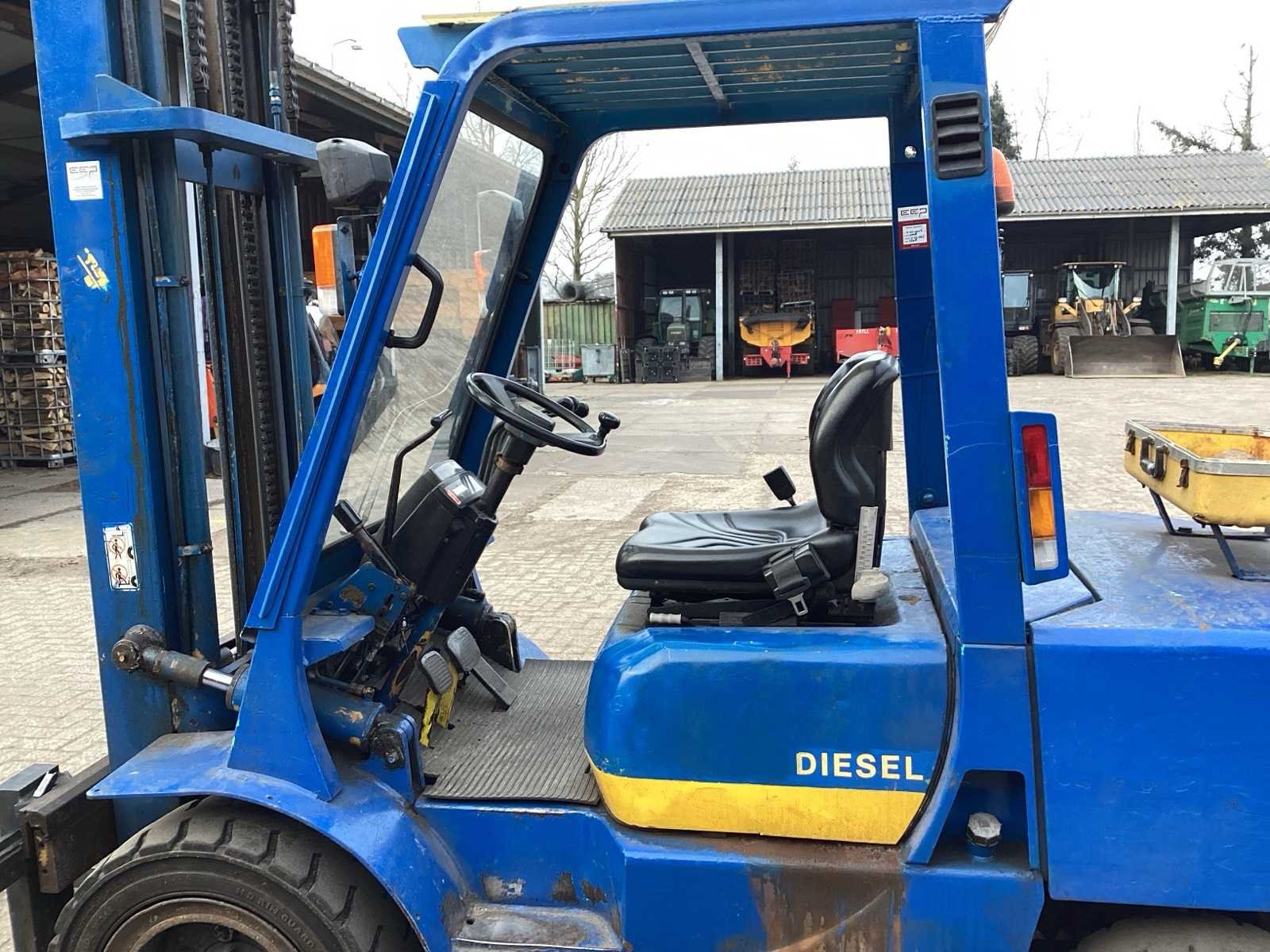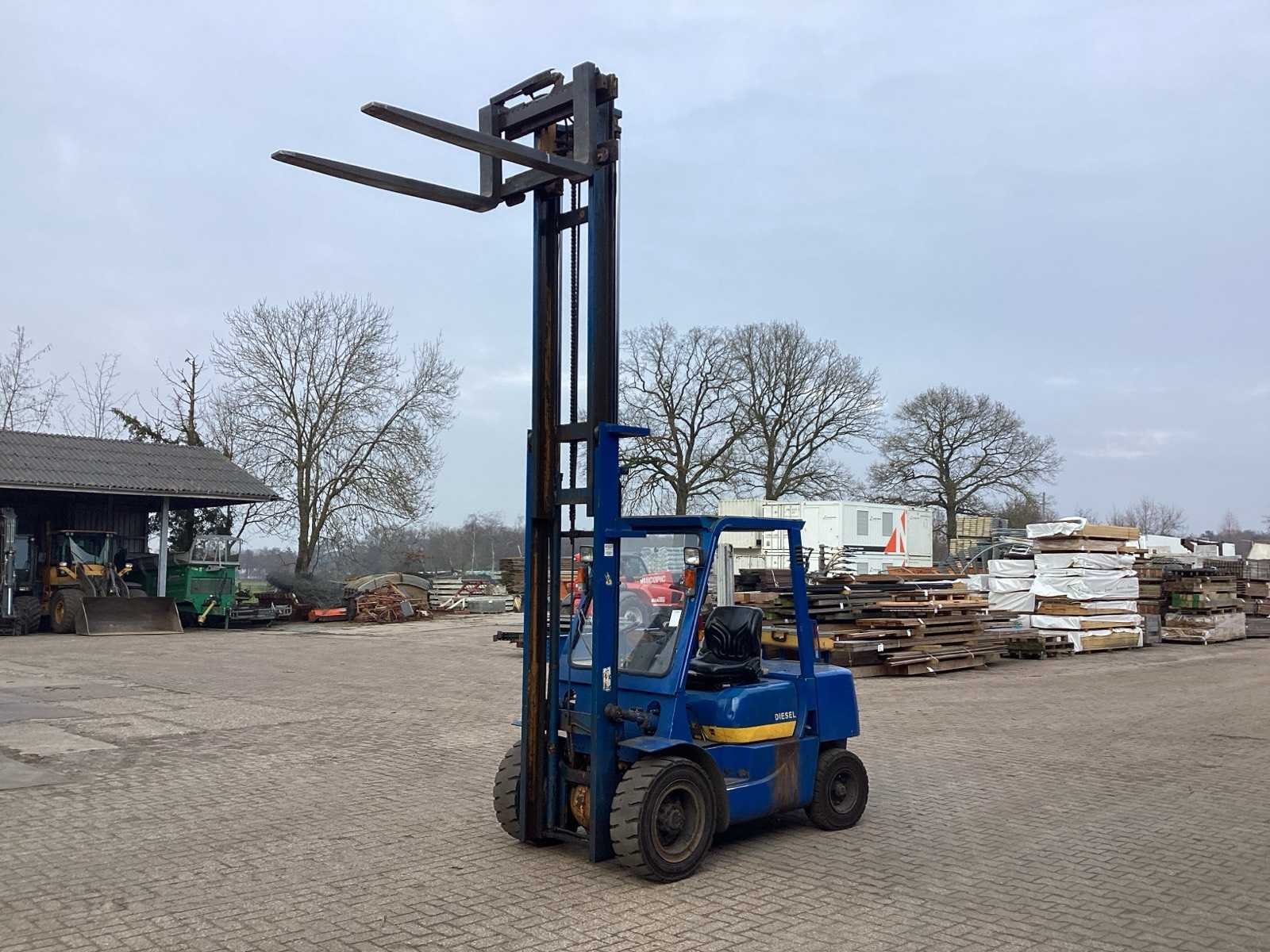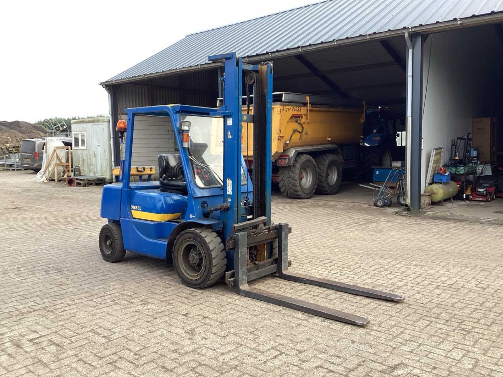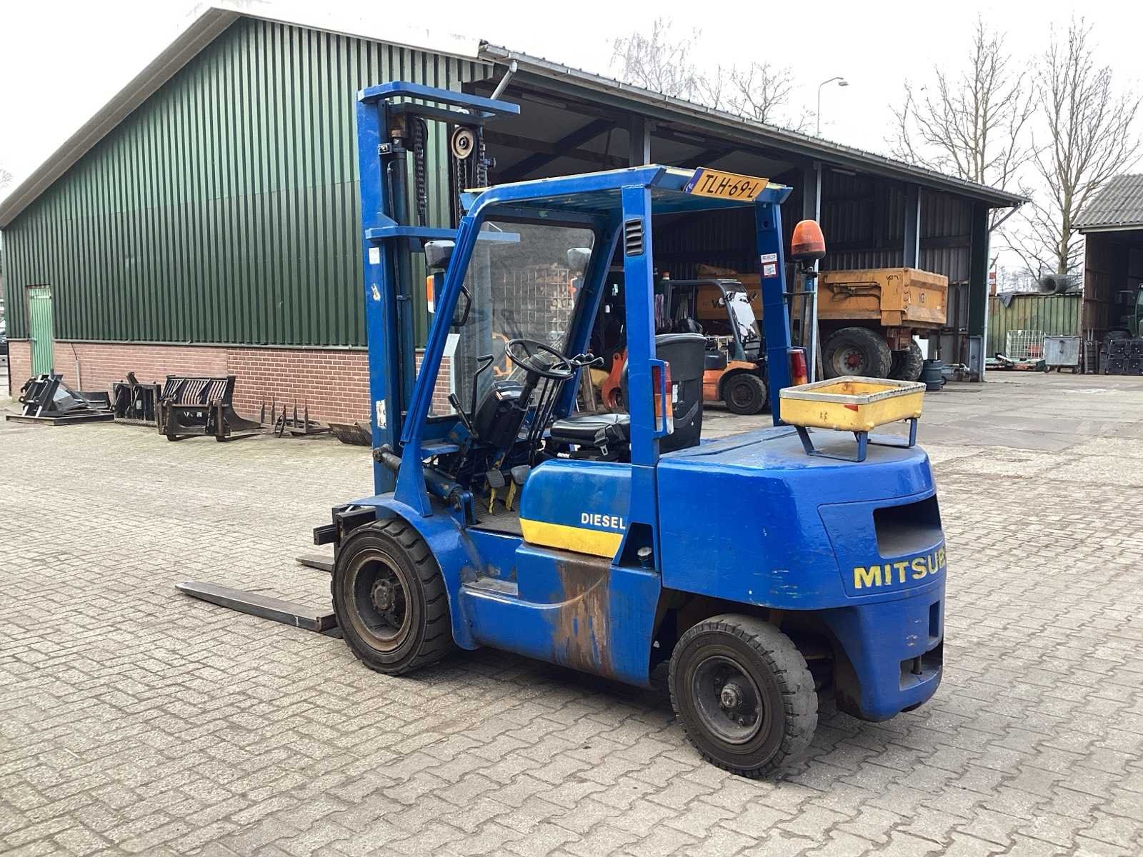 Voorzien van. Heftruck is gekeurd; Werkverlichting; zwaailicht; radiator heeft een kleine lekkage; Merk: Mitsubishi Type: FD30 Brandstof: diesel Kenteken: TLH-69-L Afgelezen urenstand: 2814 Hydraulisch verstelbare lepels: true Duplex mast: true Eigen gewicht: 4860kg Hefvermogen: 3000kg Max. hefhoogte: 4000mm Minimale doorrijhoogte: 2600mm Totale afmeting L: 4100mm Totale afmeting Breedte: 1300mm Totale afmeting Hoogte: 2600mm Diesel: true