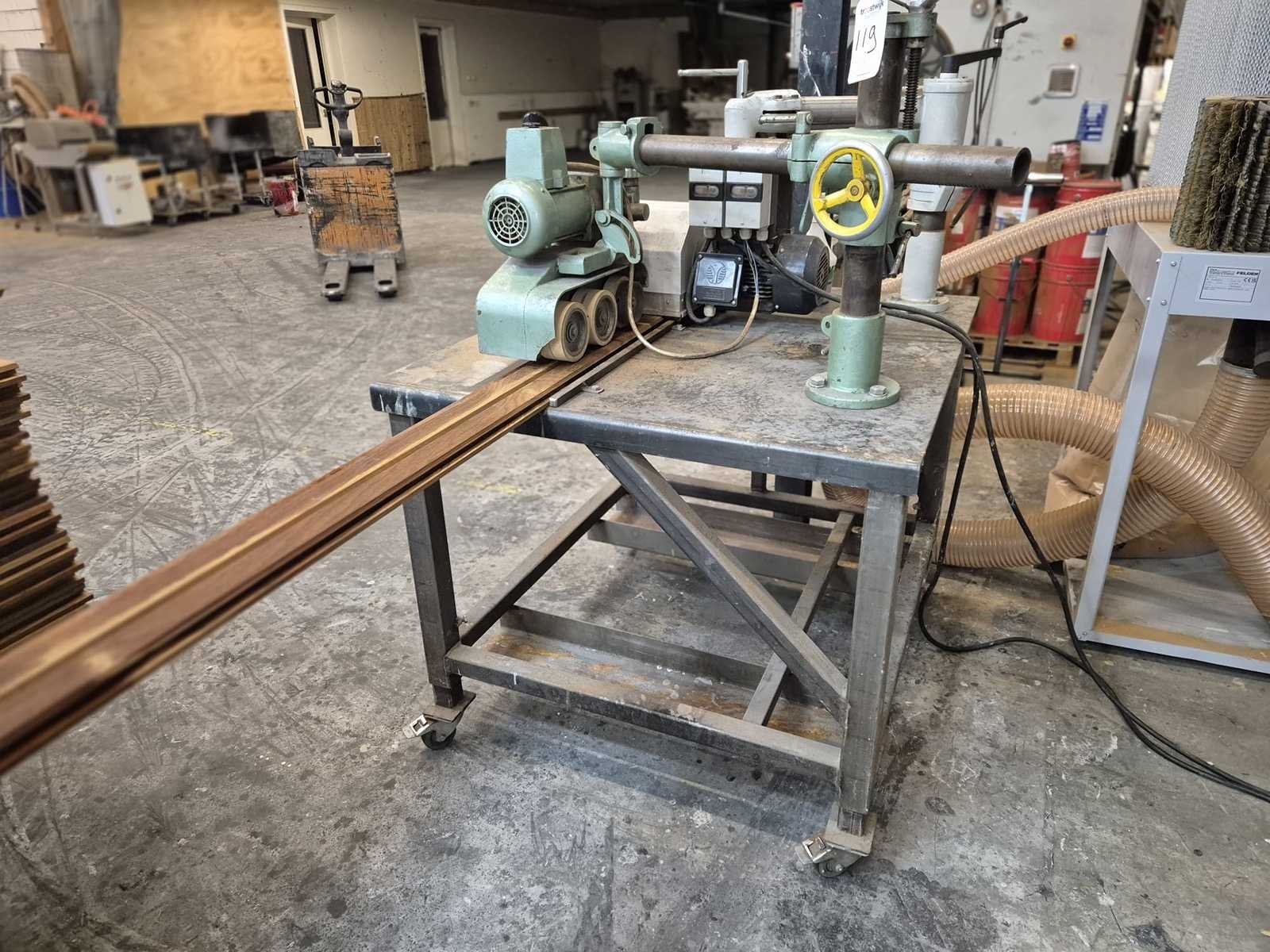 Machine om hout te schuren, structureren of nerven uit te borstelen; inclusief 2 borstels; reeds gedemonteerd en verpakt op pallet Merk: Cosma Bouwjaar: 2017