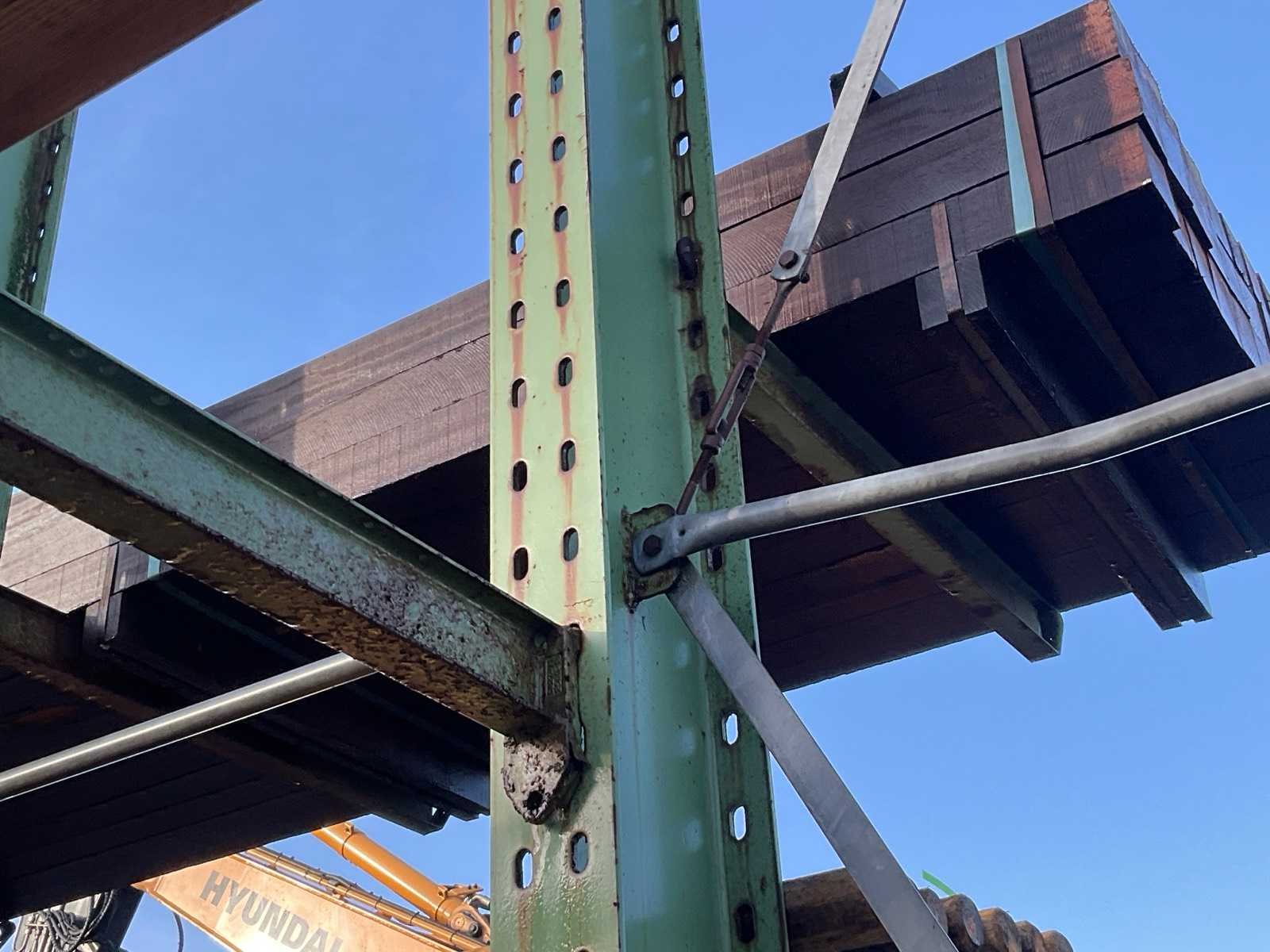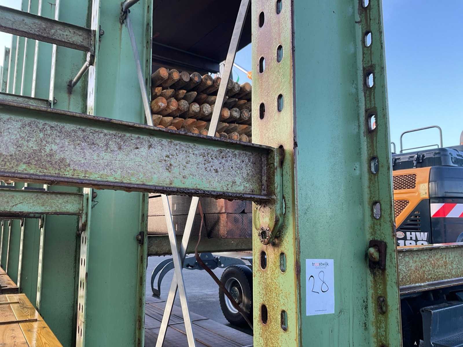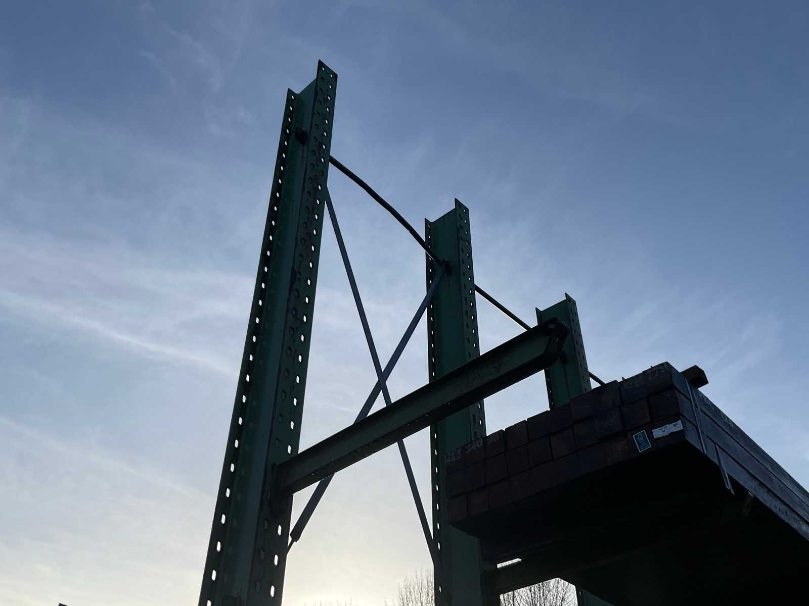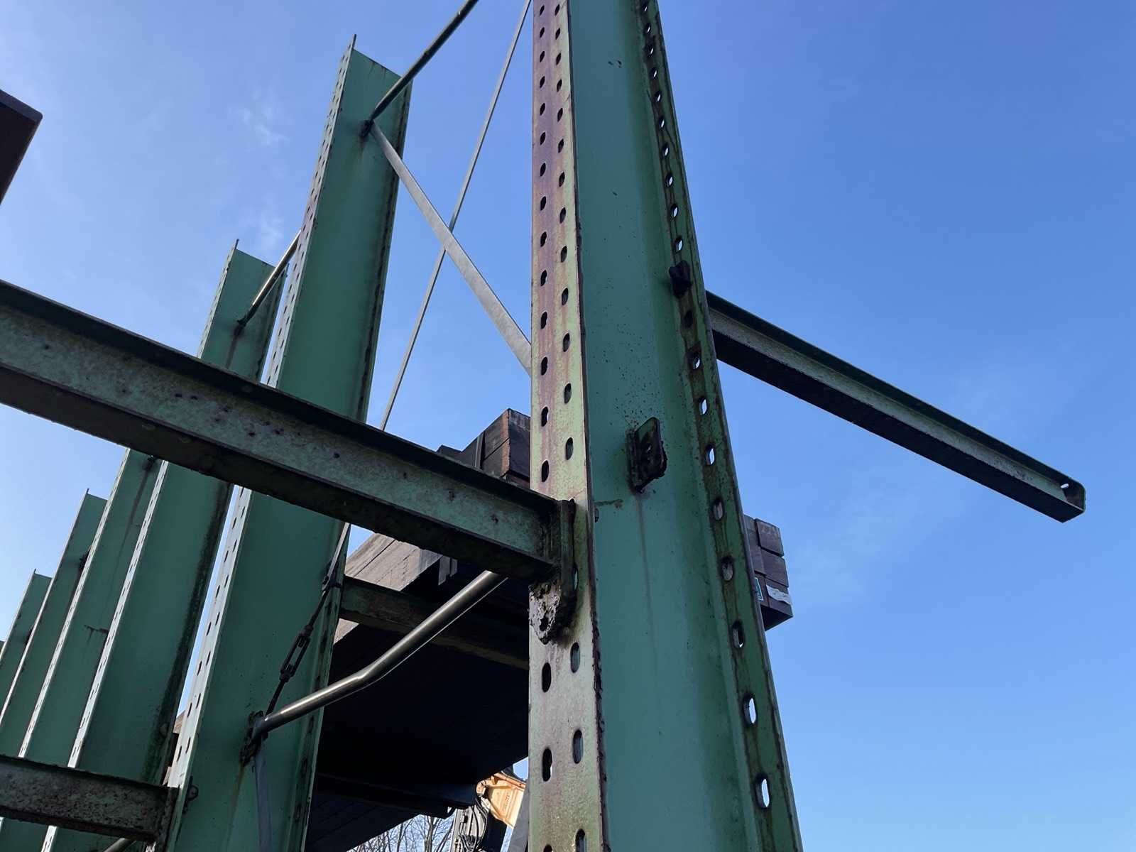 Sectie diepte 125 en 175 cm, Secties zijn niet allemaal precies 125 cm breed. Aantal secties: 20 Sectie afm. b: 1250mm Sectie afm. h: 5800mm Aantal staanders: 21 Aantal liggers: 98 Demontabel: true Totale afmeting L: 2600cm Totale afmeting Breedte: 335cm Totale afmeting Hoogte: 580cm