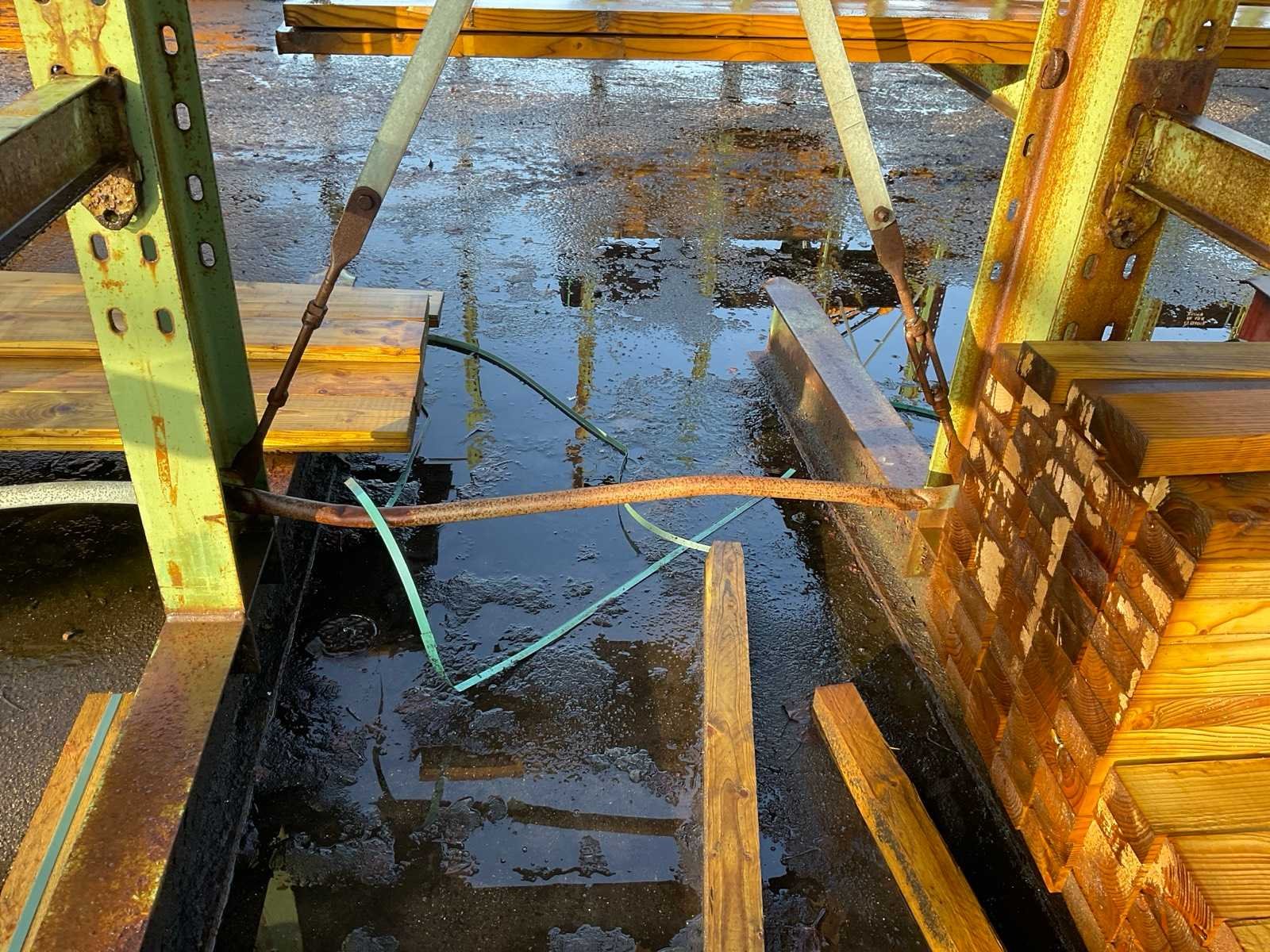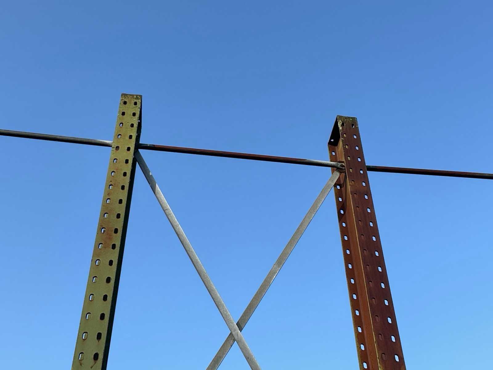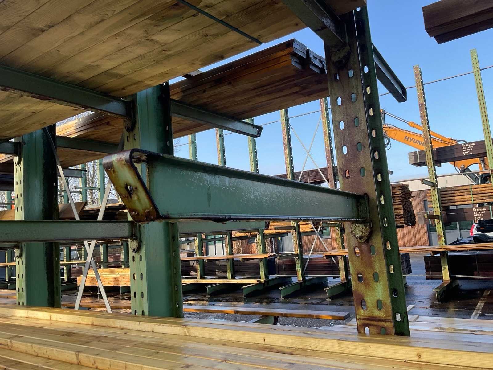 Secties zijn niet allemaal precies 125 cm breed. Aantal secties: 20 Sectie afm. b: 1250mm Sectie diepte: 1200mm Sectie afm. h: 5700mm Aantal staanders: 21 Aantal liggers: 100 Demontabel: true Totale afmeting L: 2600cm Totale afmeting Breedte: 270cm Totale afmeting Hoogte: 570cm