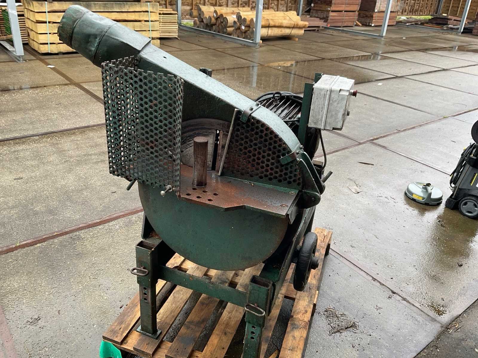 Aansluiting 400 V, diameter draaischijf circa 50 cm; palen puntenslijper Merk: Gundeys Elektrisch aangedreven: true Totale afmeting L: 1250mm Totale afmeting Breedte: 1100mm Totale afmeting Hoogte: 1400mm