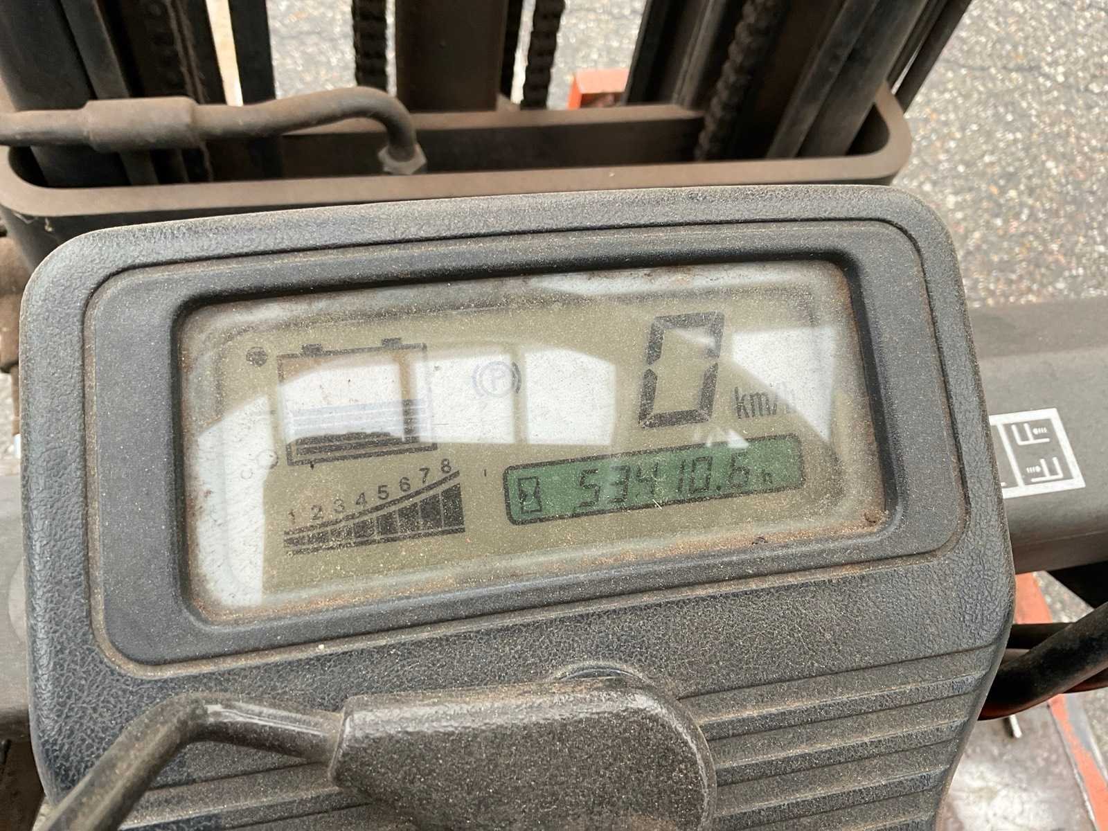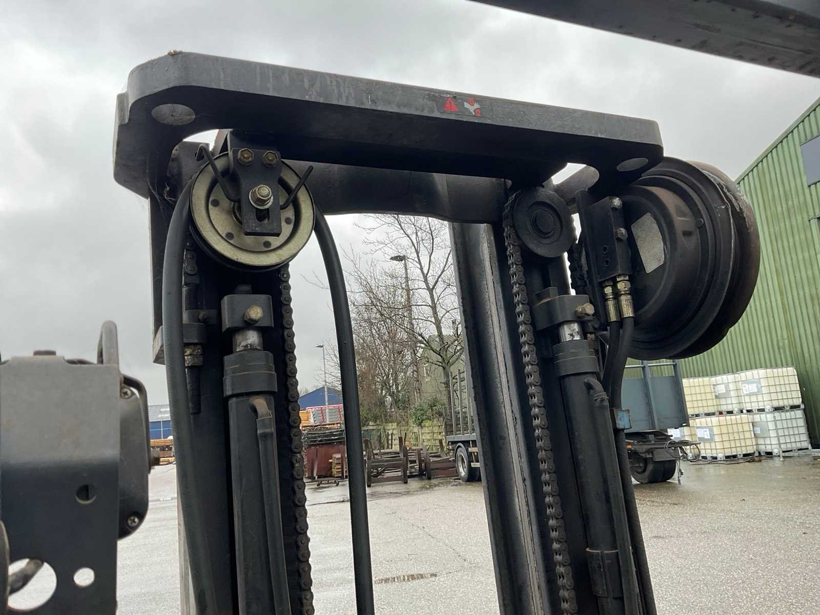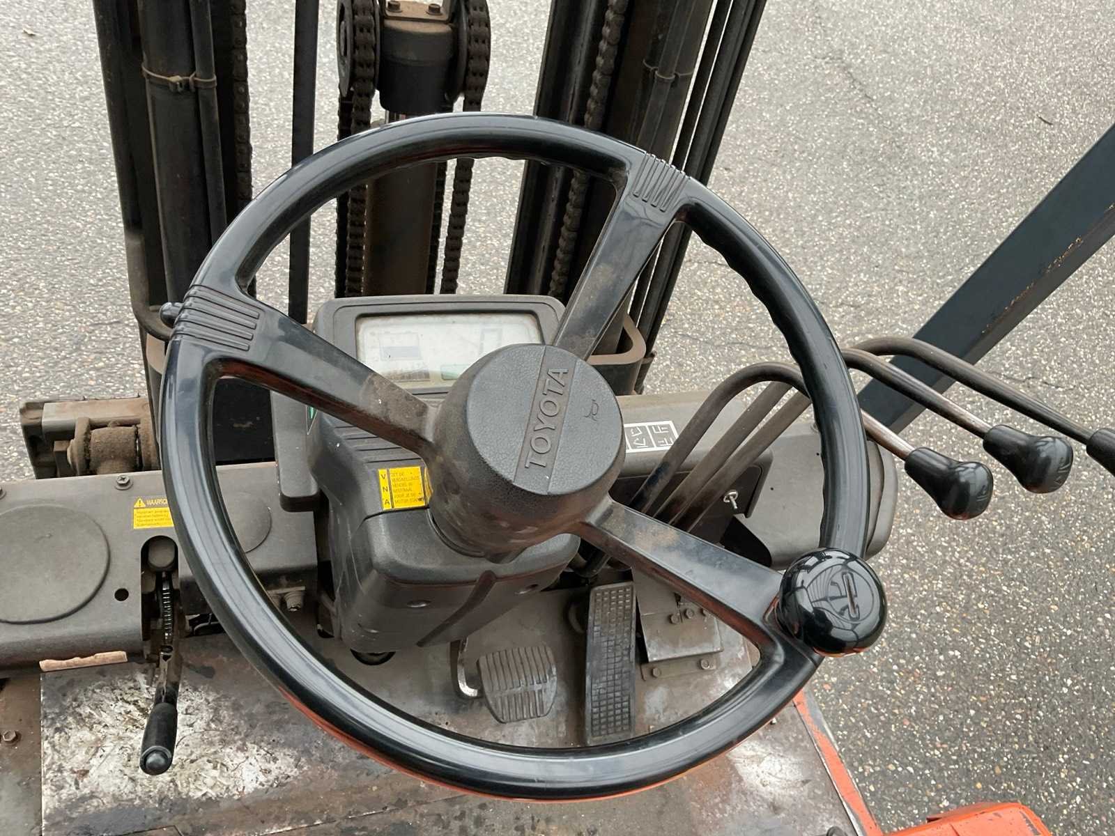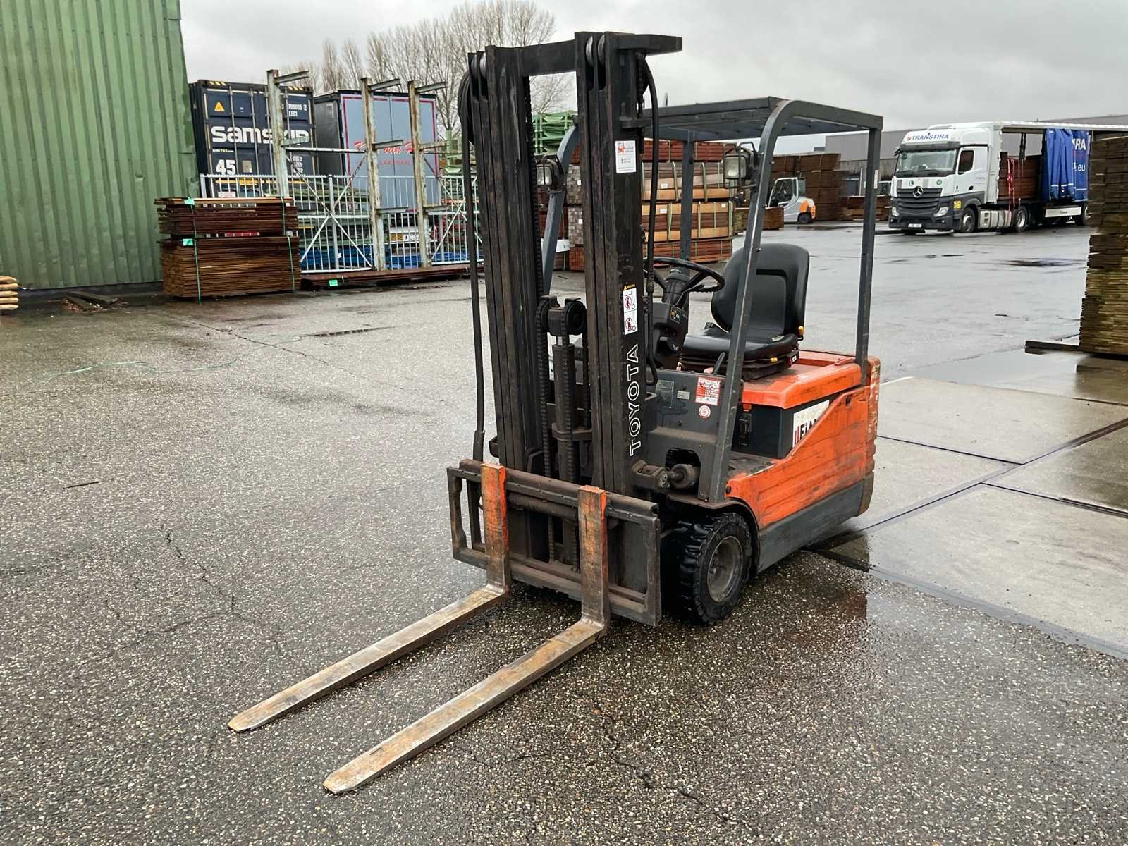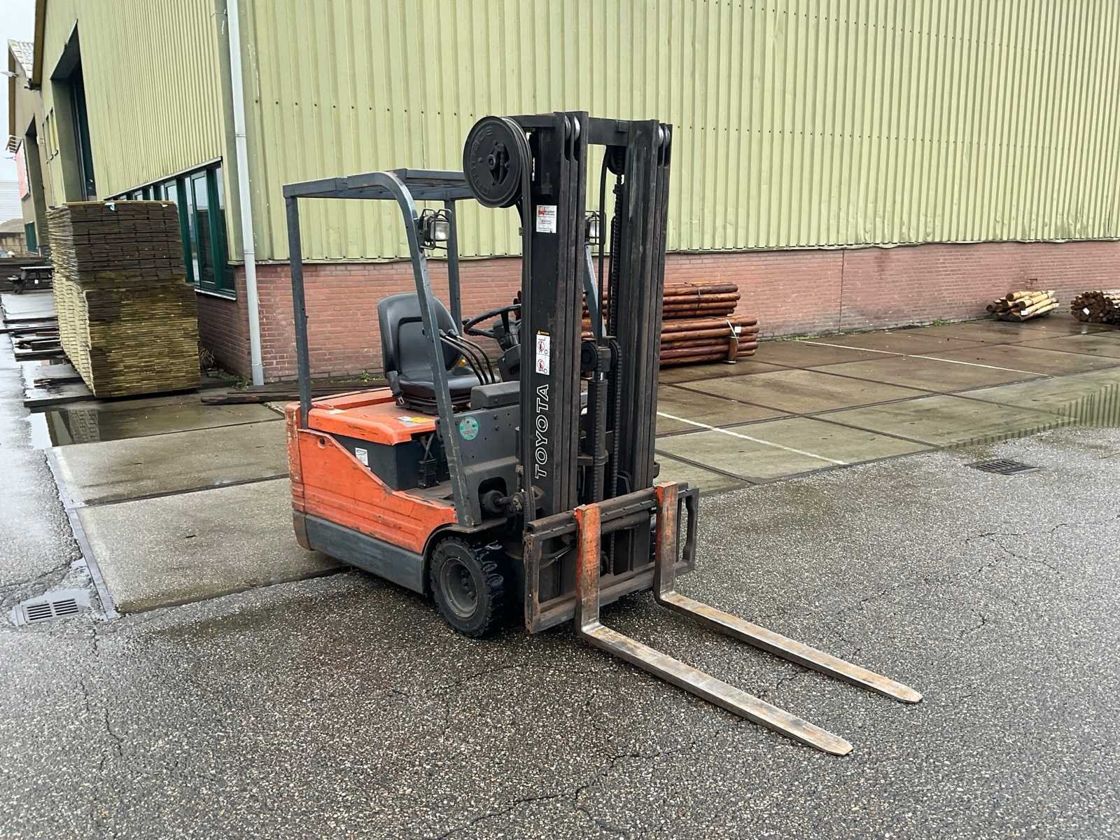 Merk: Toyota Type: 5FB18 Bouwjaar: 1997 Serienummer: 5FB18021755 Soort band: Volrubber banden Aantal wielen: 3 Afgelezen urenstand: 53410 Accu lader: true Free-lift: true Triple mast: true Eigen gewicht: 3550kg Hefvermogen: 1400kg Lepellengte: 1150mm Max. hefhoogte: 4700mm Minimale doorrijhoogte: 2150mm Totale afmeting Hoogte: 2100mm