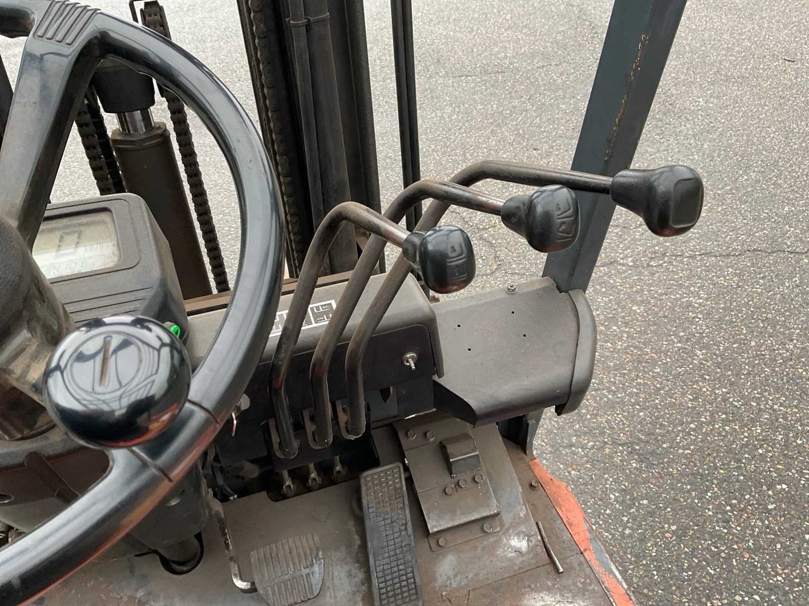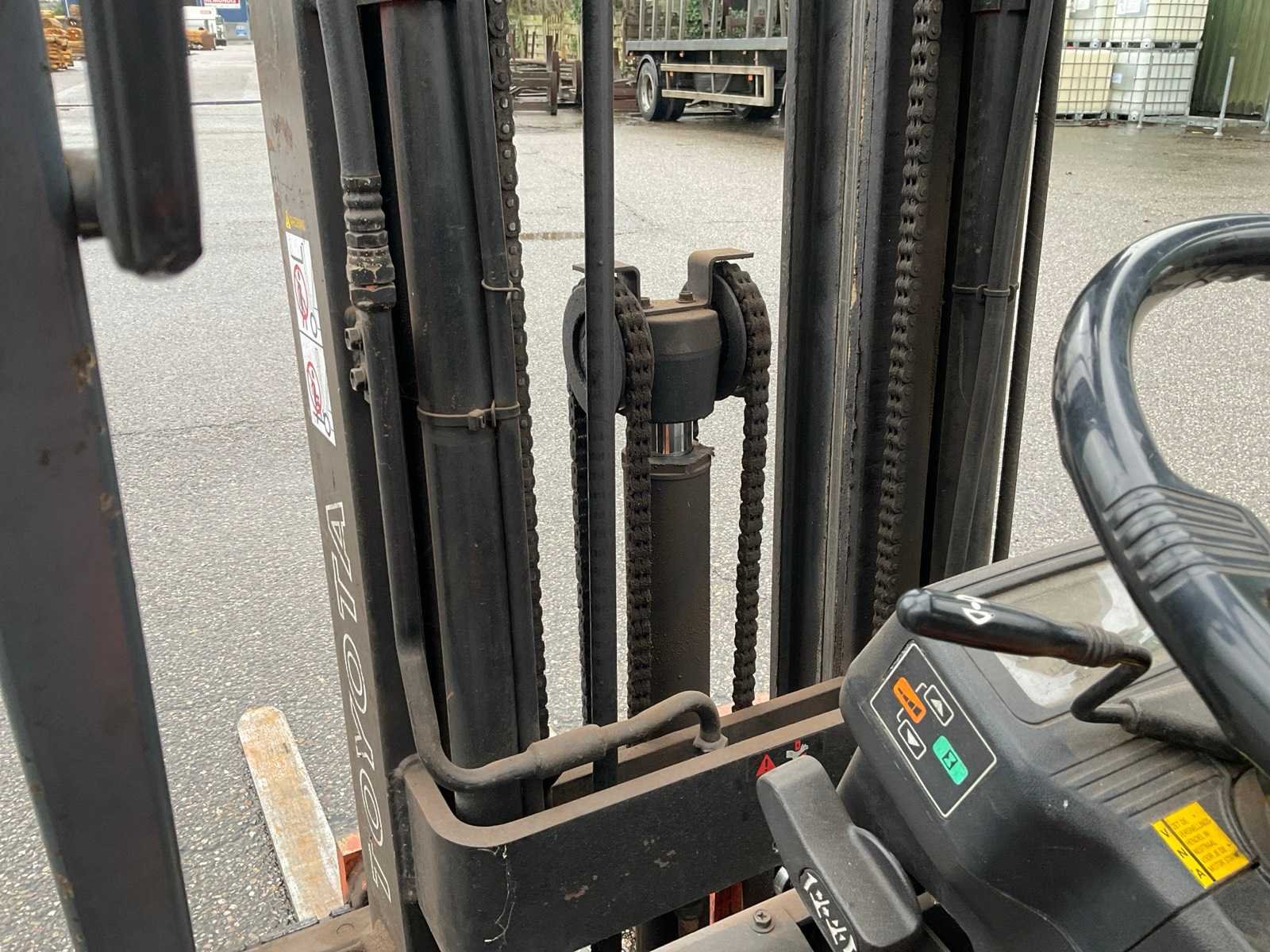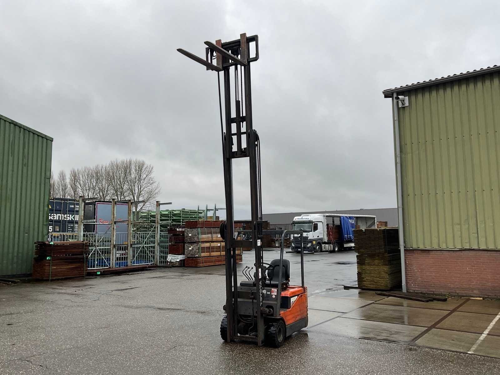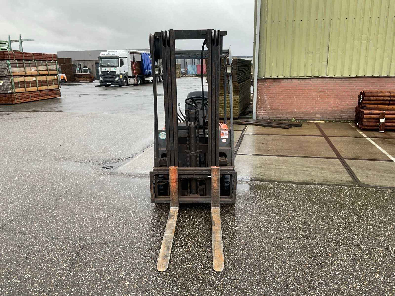 Merk: Toyota Type: 5FB18 Bouwjaar: 1997 Serienummer: 5FB18021755 Soort band: Volrubber banden Aantal wielen: 3 Afgelezen urenstand: 53410 Accu lader: true Free-lift: true Triple mast: true Eigen gewicht: 3550kg Hefvermogen: 1400kg Lepellengte: 1150mm Max. hefhoogte: 4700mm Minimale doorrijhoogte: 2150mm Totale afmeting Hoogte: 2100mm