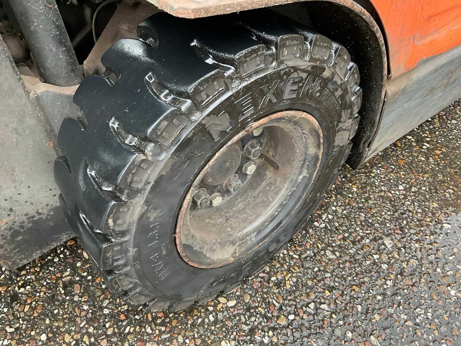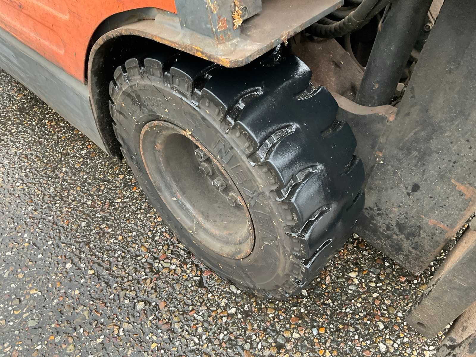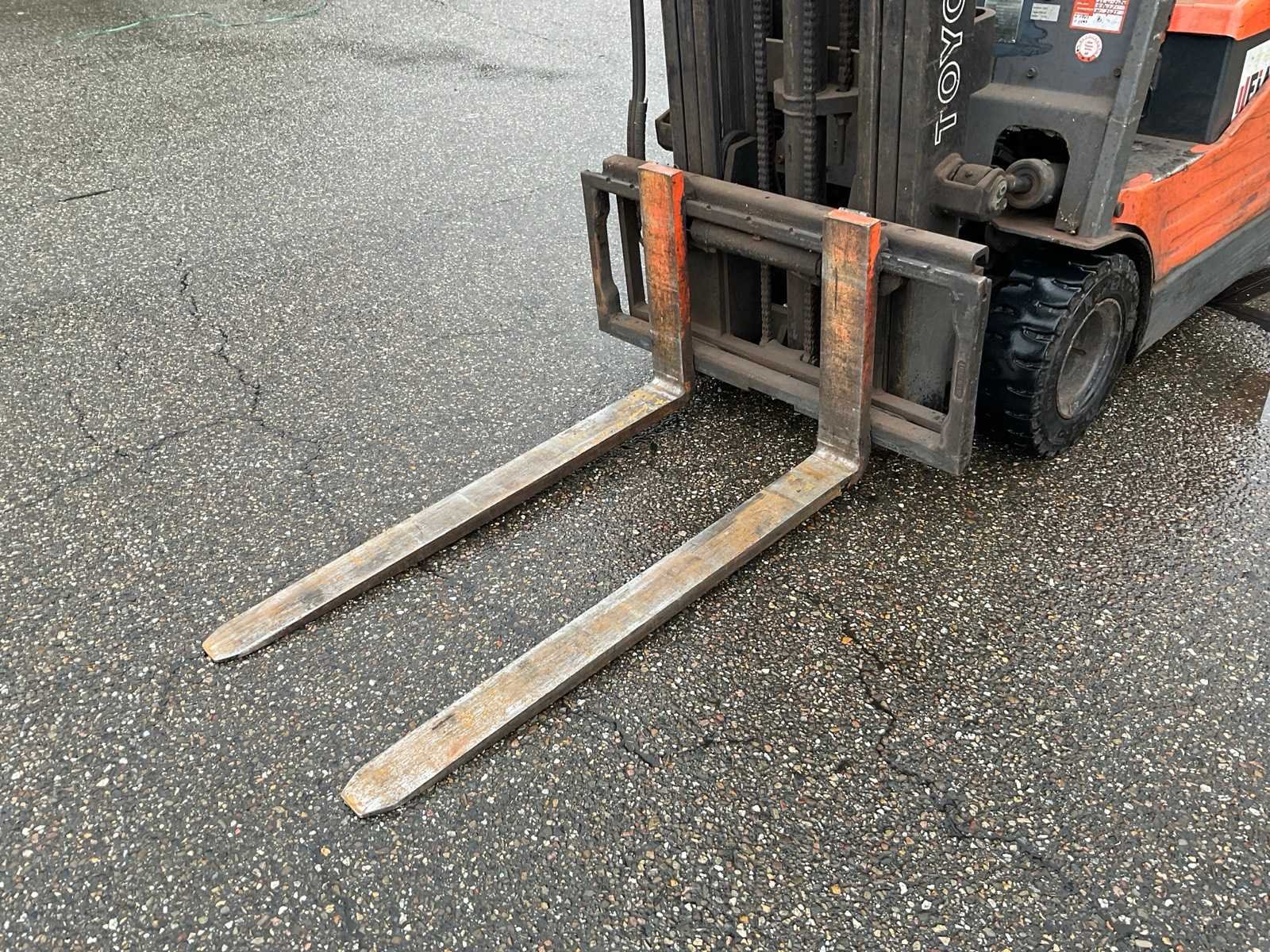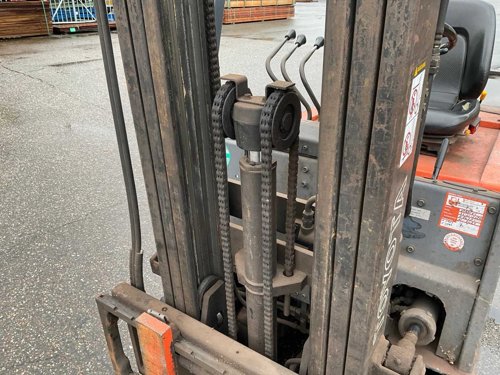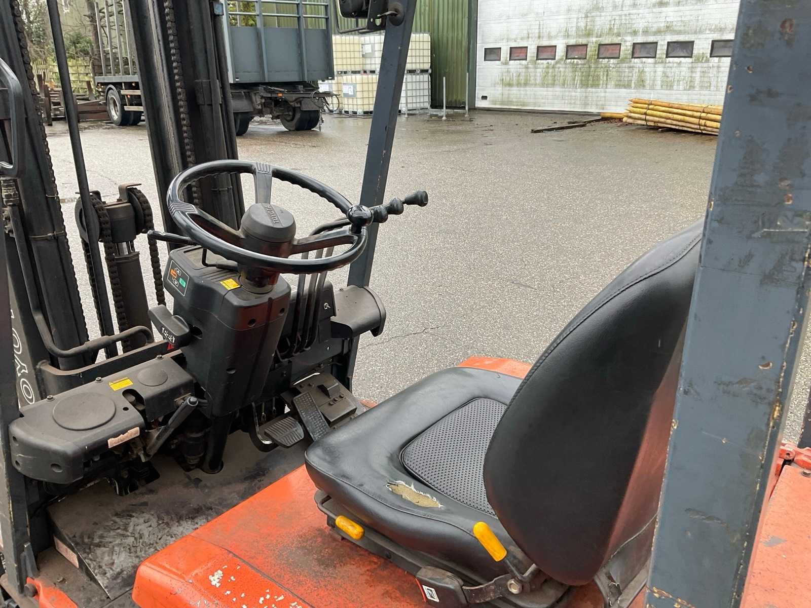 Merk: Toyota Type: 5FB18 Bouwjaar: 1997 Serienummer: 5FB18021755 Soort band: Volrubber banden Aantal wielen: 3 Afgelezen urenstand: 53410 Accu lader: true Free-lift: true Triple mast: true Eigen gewicht: 3550kg Hefvermogen: 1400kg Lepellengte: 1150mm Max. hefhoogte: 4700mm Minimale doorrijhoogte: 2150mm Totale afmeting Hoogte: 2100mm