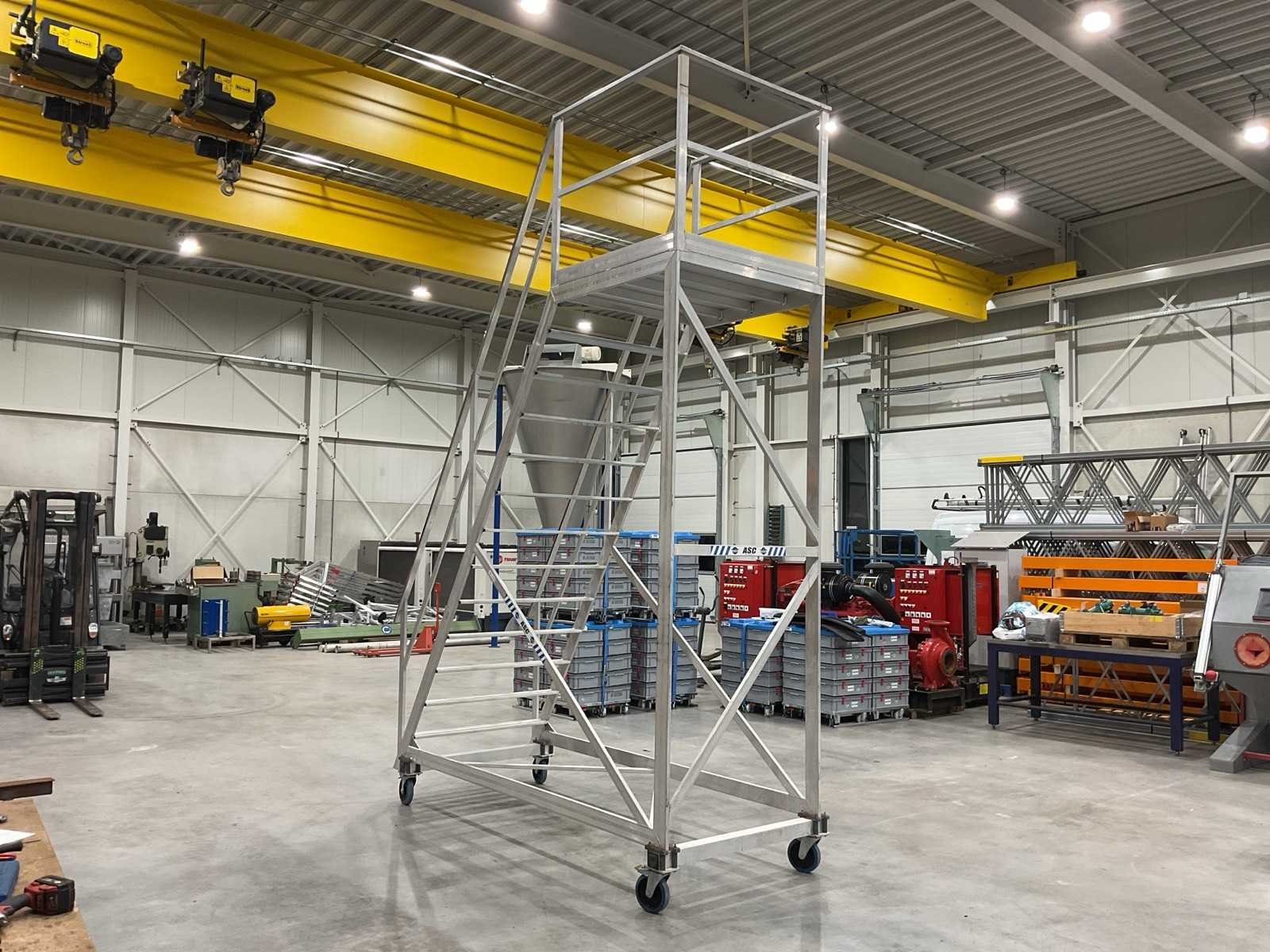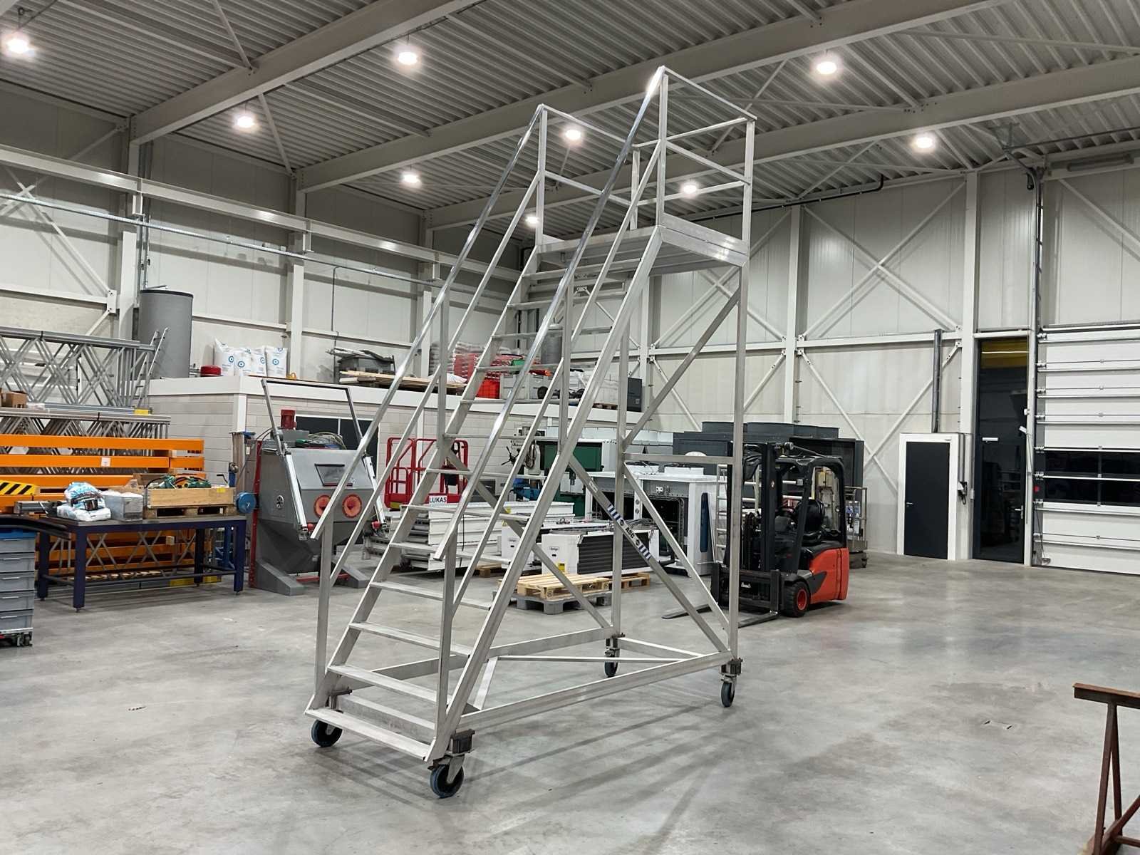 Voorzien van zwenkwielen; bordes hoogte 3500mm Merk: ASC Aluminium: true Oplooptrap: true Bordestrap: true Totale afmeting L: 3150mm Totale afmeting Breedte: 1290mm Totale afmeting Hoogte: 4600mm