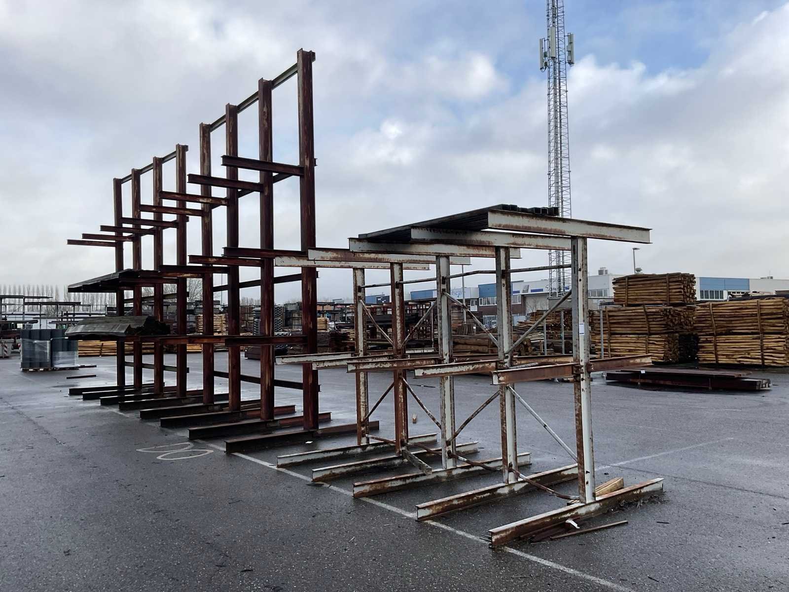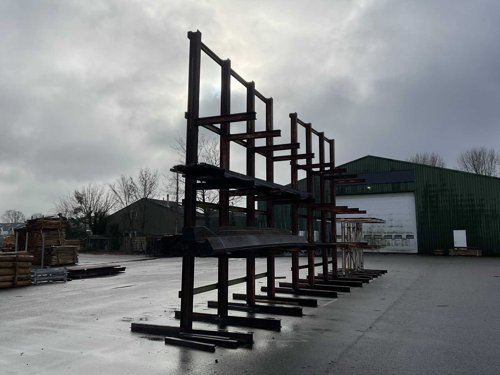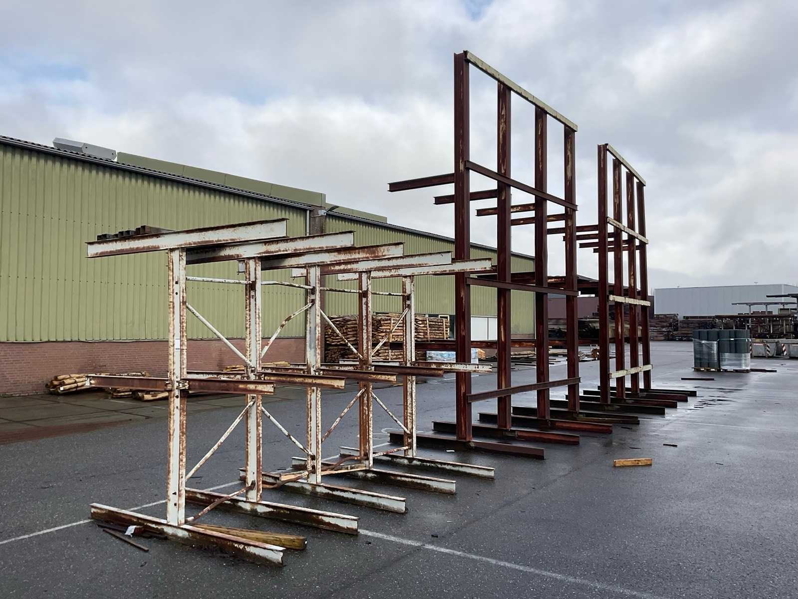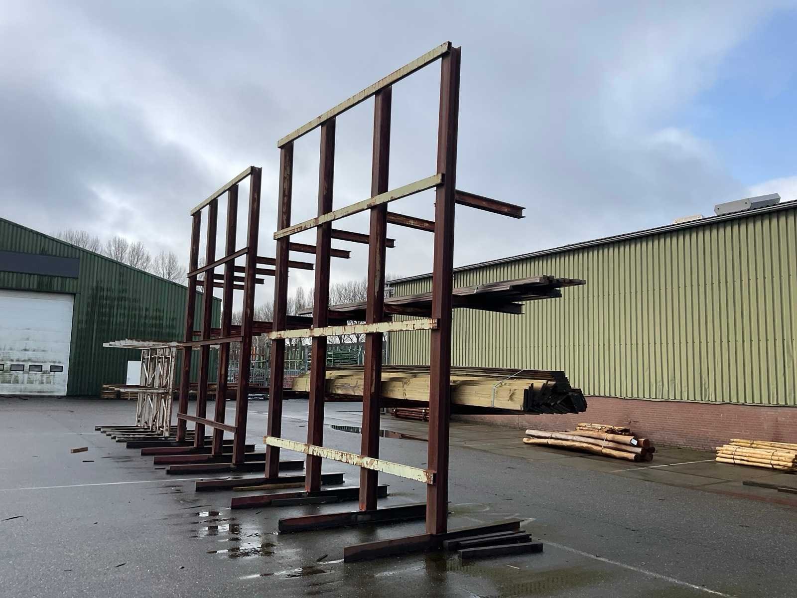 2x circa 445x245x560 cm, sectie diepte 118 cm, niet demontabel, 1x dubbele draagarmstelling circa 238x138x250 cm, sectie diepte 110 cm, demontabel.