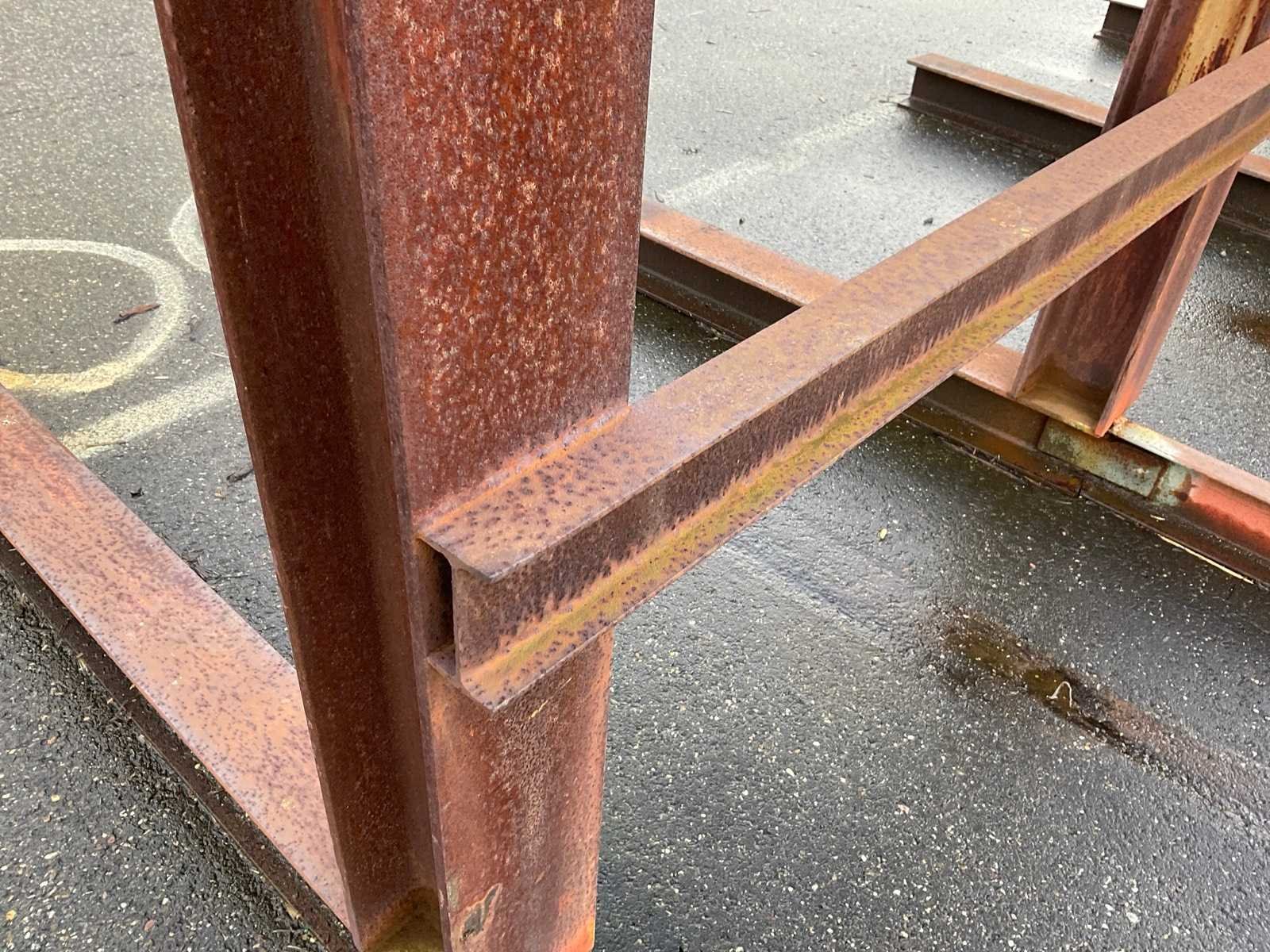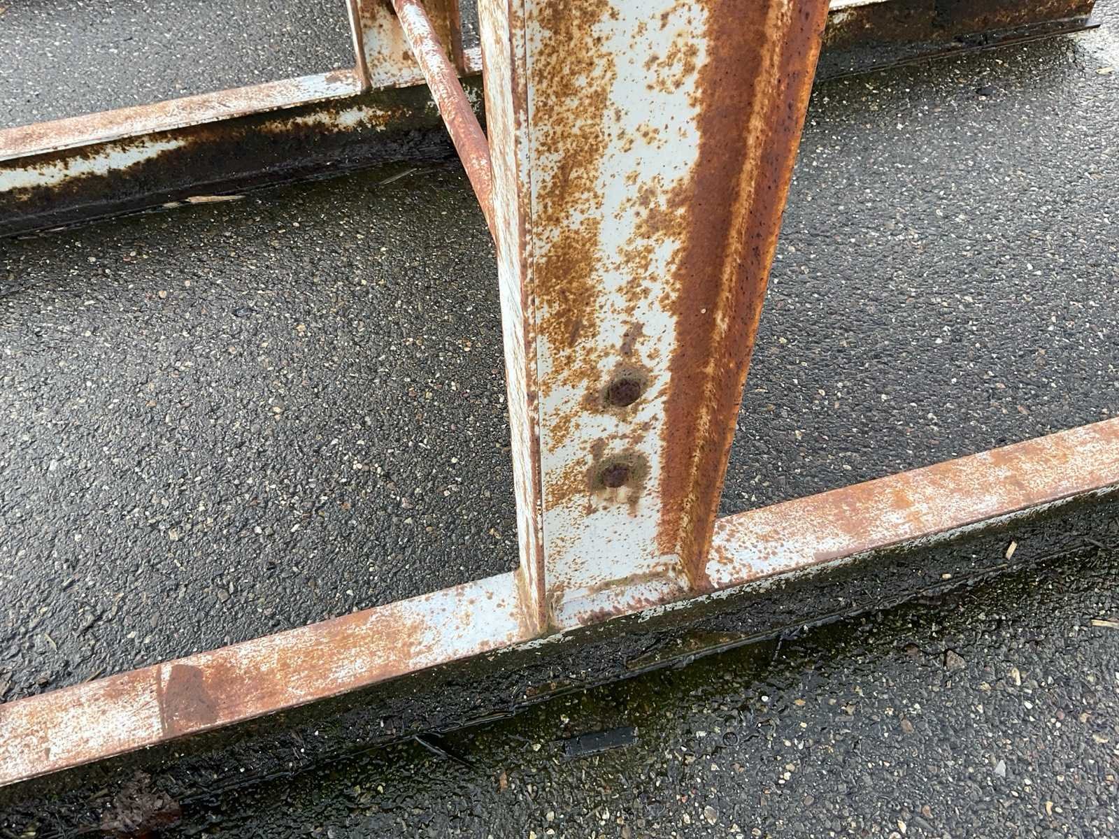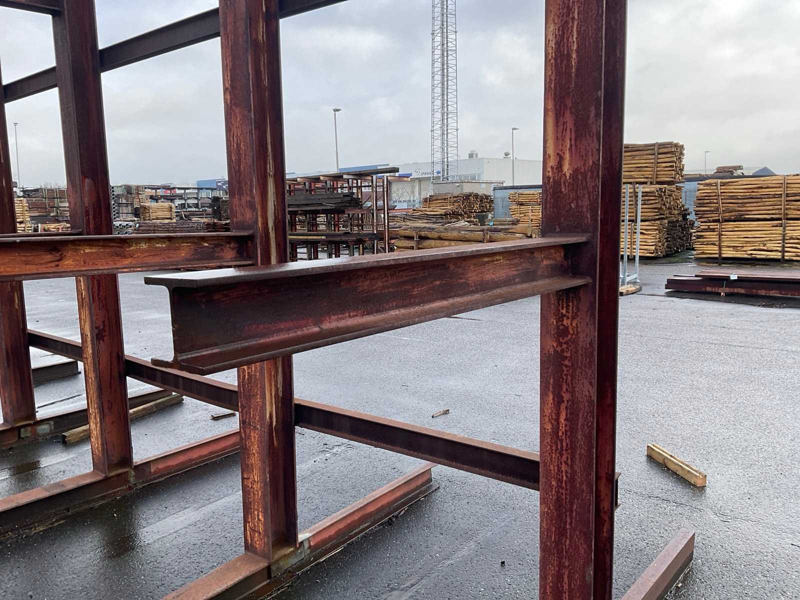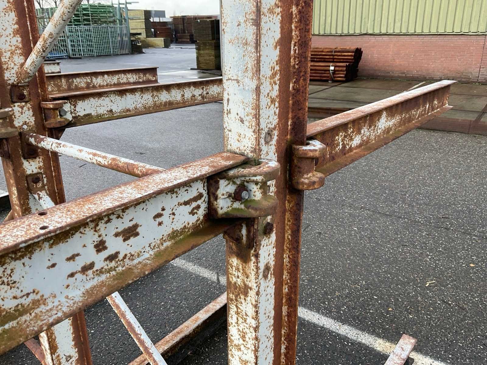 2x circa 445x245x560 cm, sectie diepte 118 cm, niet demontabel, 1x dubbele draagarmstelling circa 238x138x250 cm, sectie diepte 110 cm, demontabel.