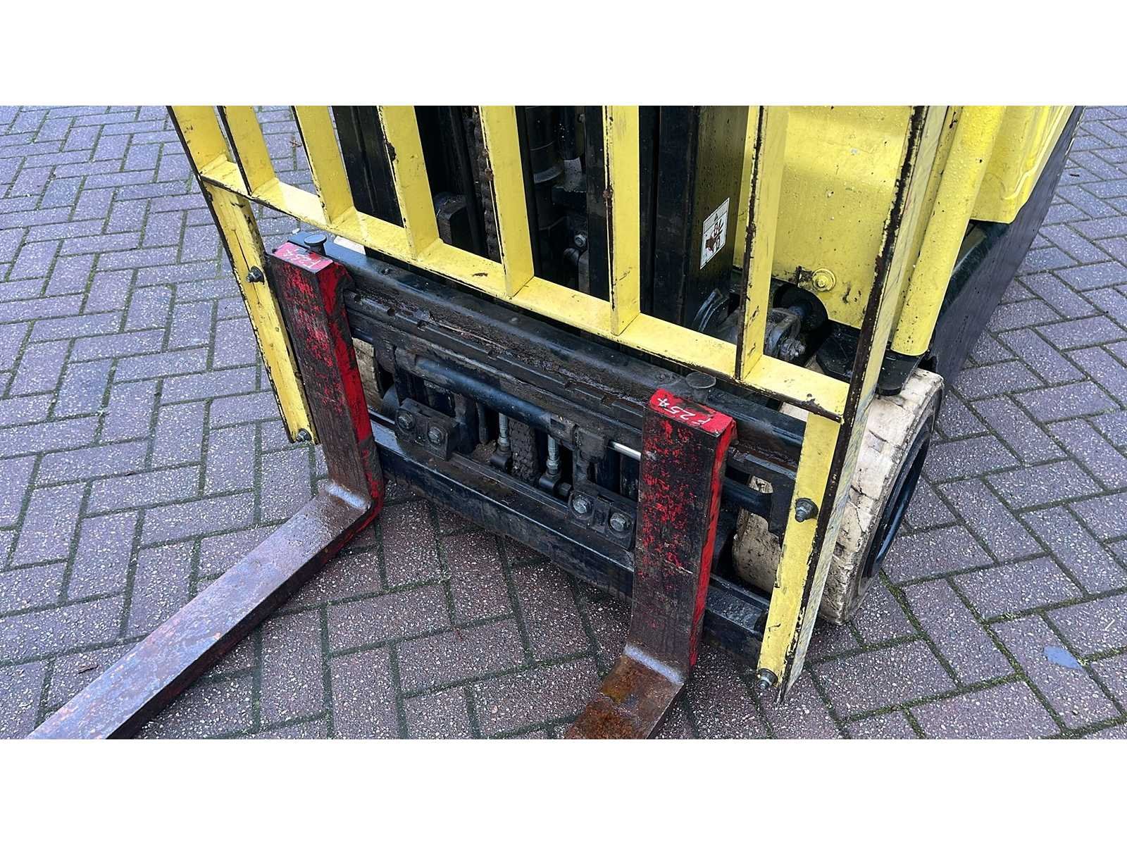 48 volt; lastrek Merk: Hyster Type: J2.0 XNT Bouwjaar: 2011 Serienummer: K160B03375J Soort band: non marking Side-shift: true Duplex mast: true Hefvermogen: 1870kg Hefhoogte: 4600mm Vol rubber banden: true