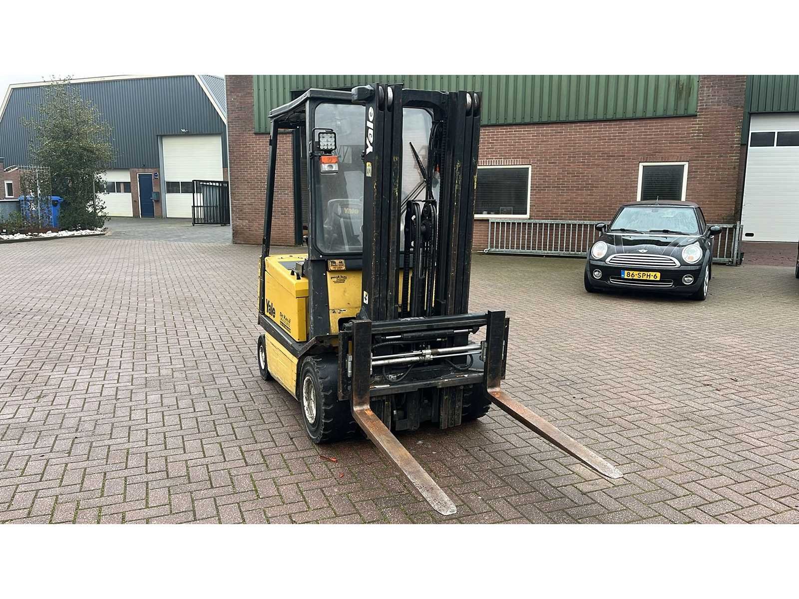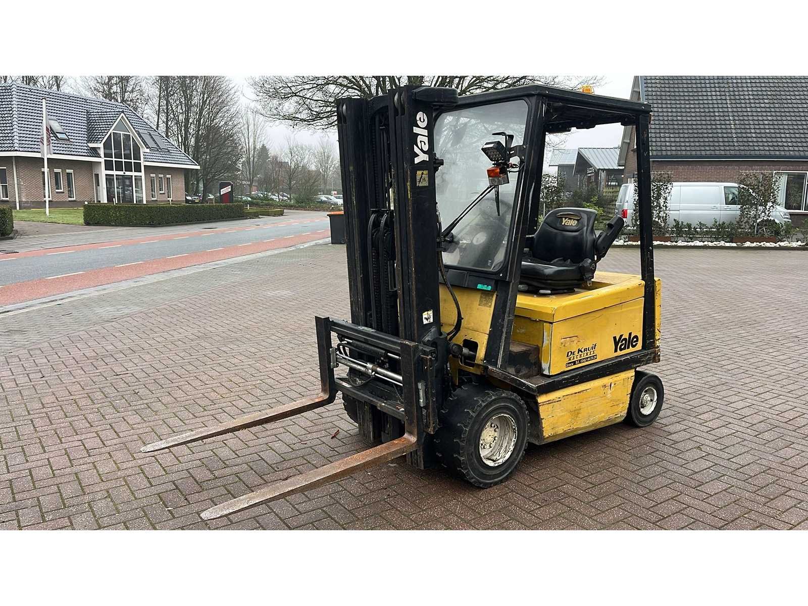80 volt; Merk: Yale Type: ERP25ALF Bouwjaar: 2002 Mast: 3 FFL mast Aantal wielen: 4 Free-lift: true Side-shift: true Hydraulisch verstelbare lepels: true Triple mast: true Hefvermogen: 2500kg Lepellengte: 1200mm Vol rubber banden: true