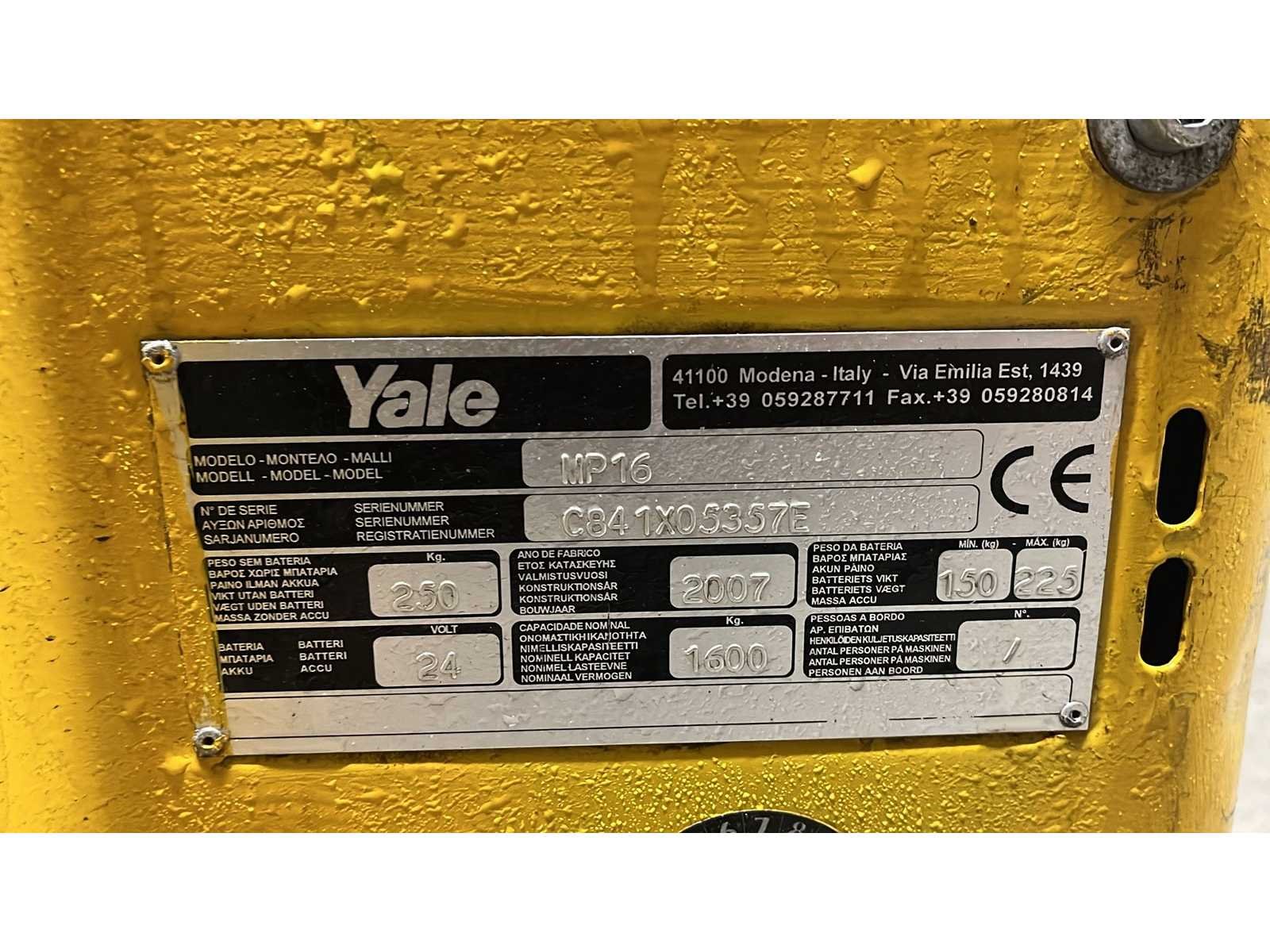 Excl. Batterij; tandem front wheels; 24volt Merk: Yale Type: MP16 Bouwjaar: 2007 Serienummer: C841X05357E Hefvermogen: 1600kg Lepellengte: 1150mm