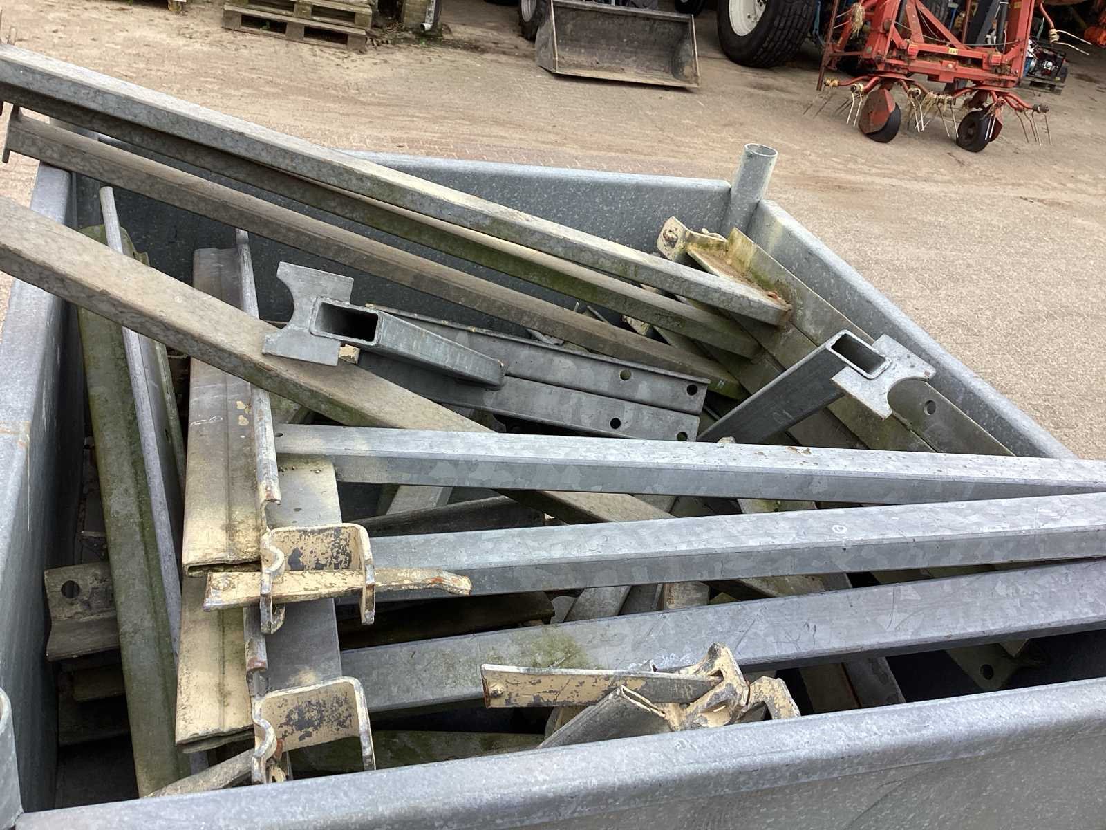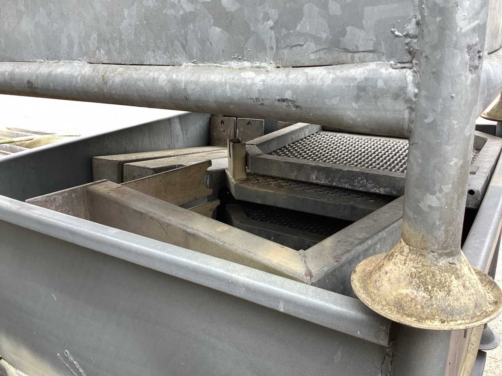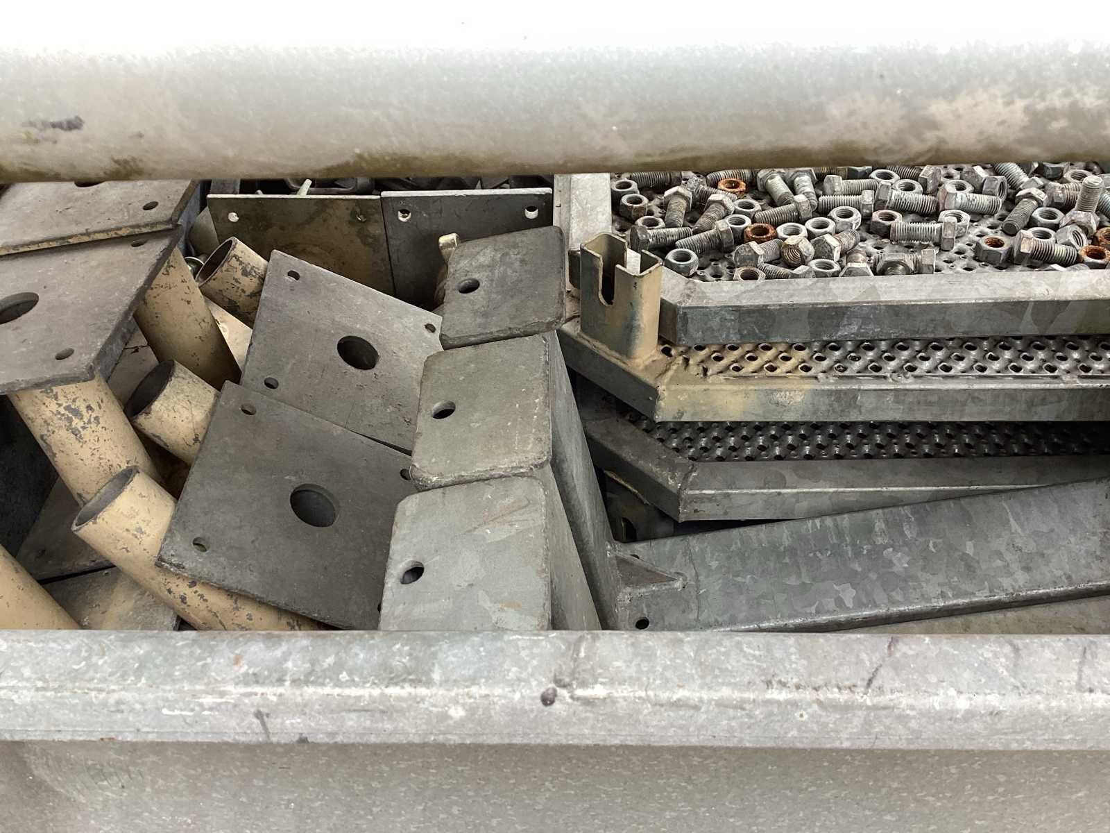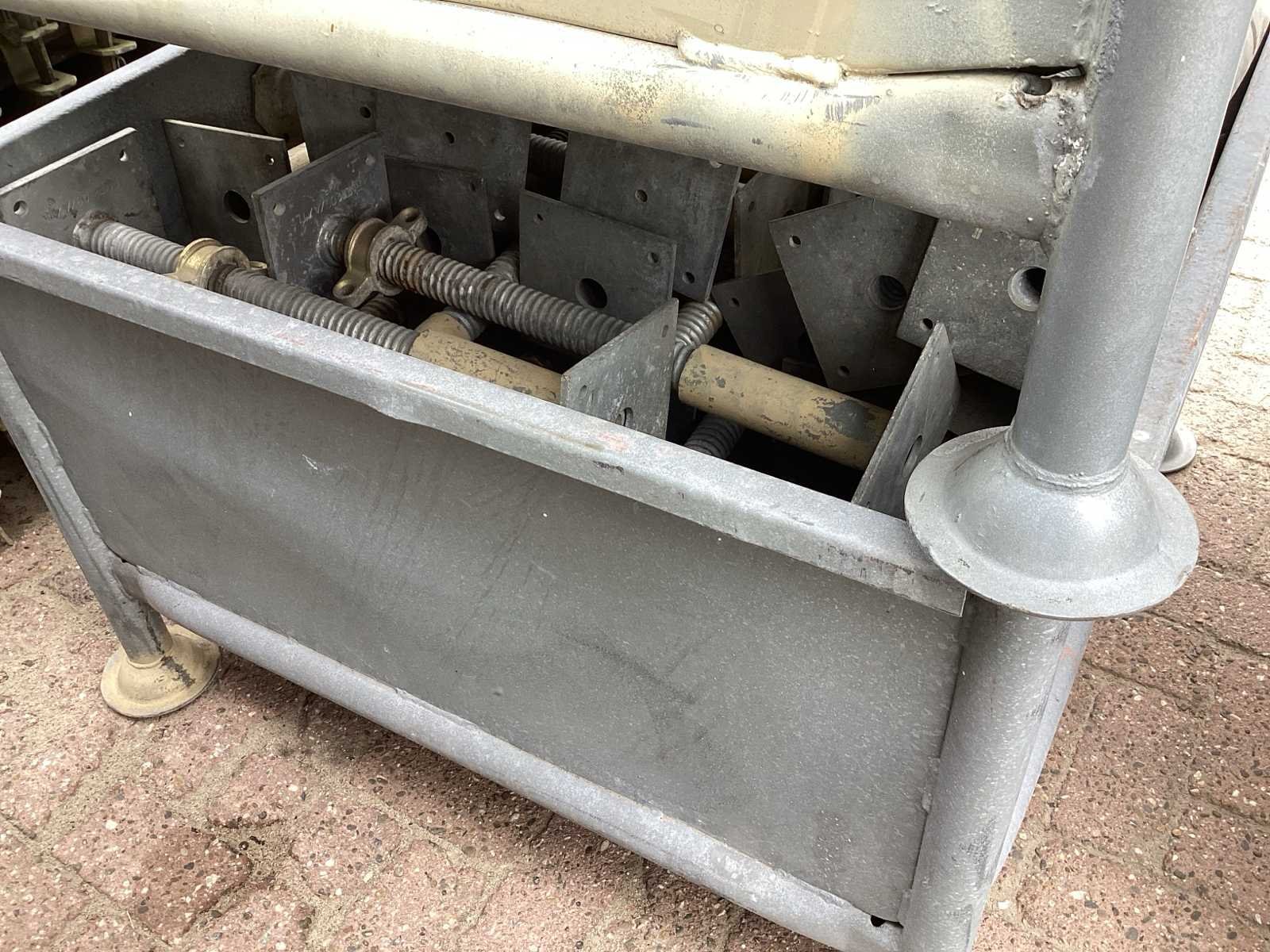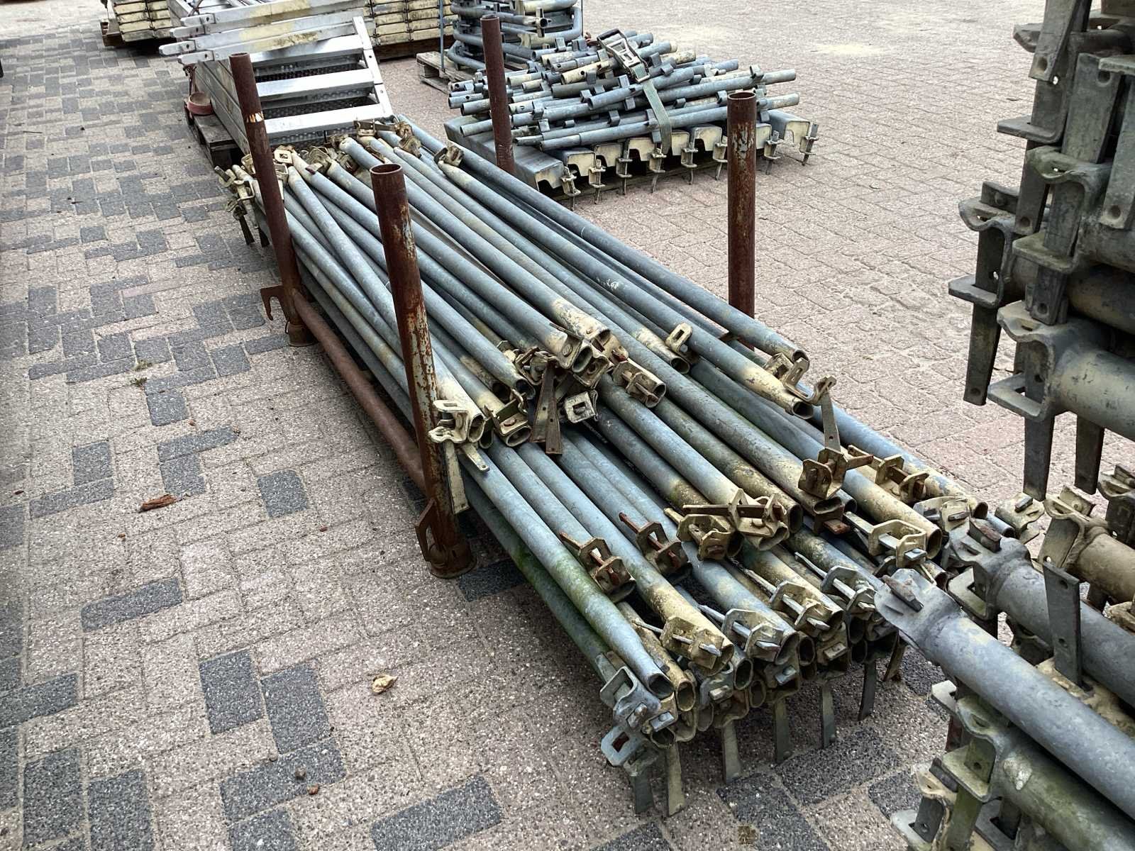 Voorzien van: 170 stalen steiger planken L= 240 cm; 50 stalen steiger planken L= 125 cm; 120 staanders L= 200cm; 120 liggers L= 240 cm; 150 korteling L= 110 cm; 16 korteling L= 60 cm; 6 hoek korteling L= 110 cm; q8 schoren div. L; 12 leuningen; 30 instelbare schroefpoten; 10 wielen; 4 aluminium trappen met leuning en toebehoren; 4 verzinkte stabelbakken; 6 verzinkte stapelblokken; Merk: Matemco Type: Kwiksteigersysteem Gegalvaniseerd: true