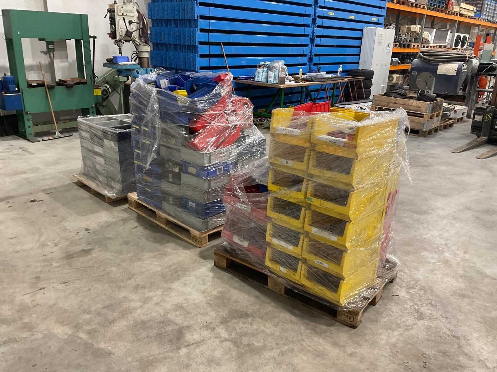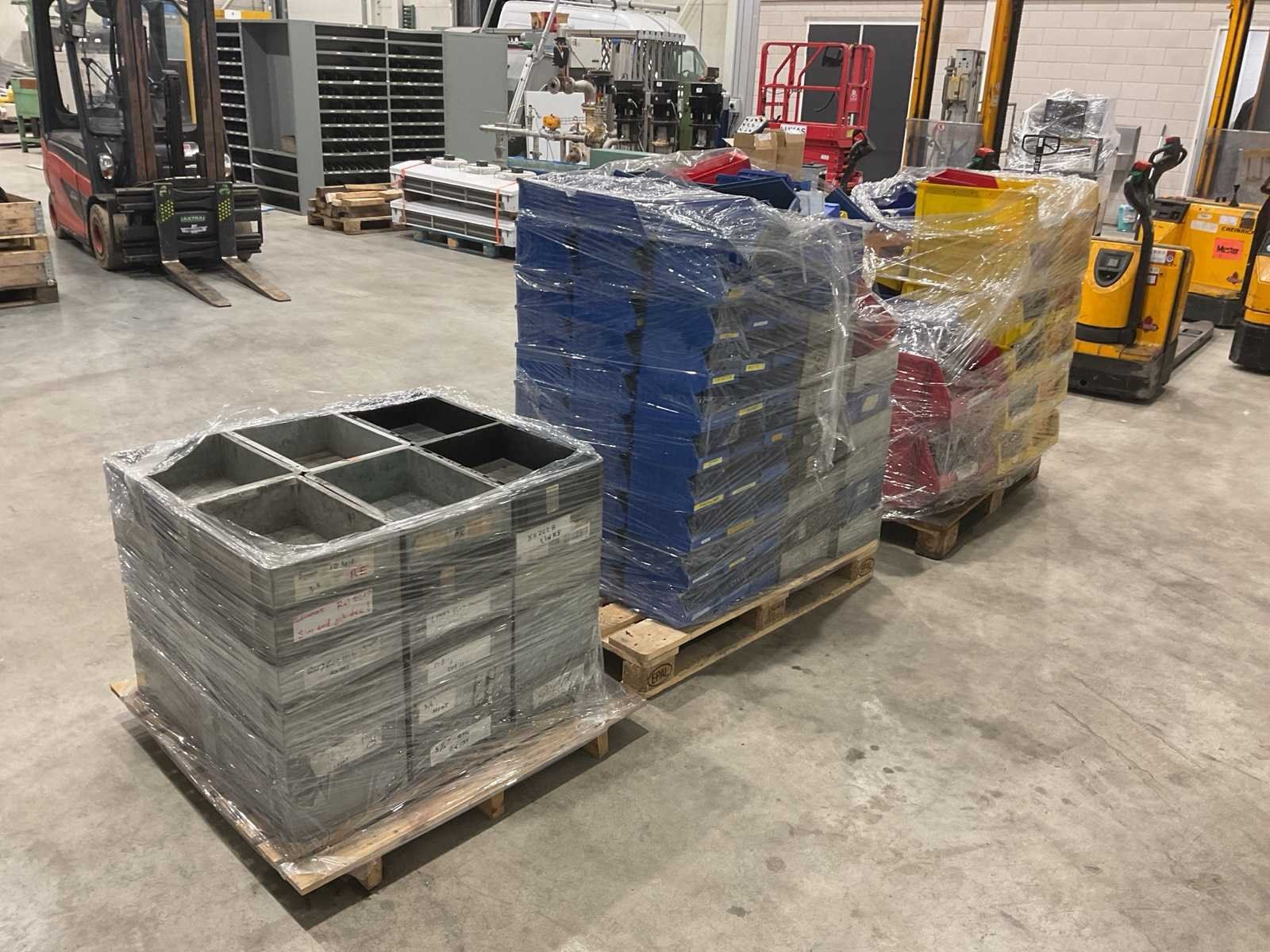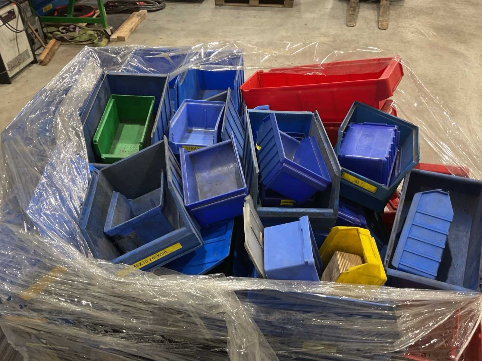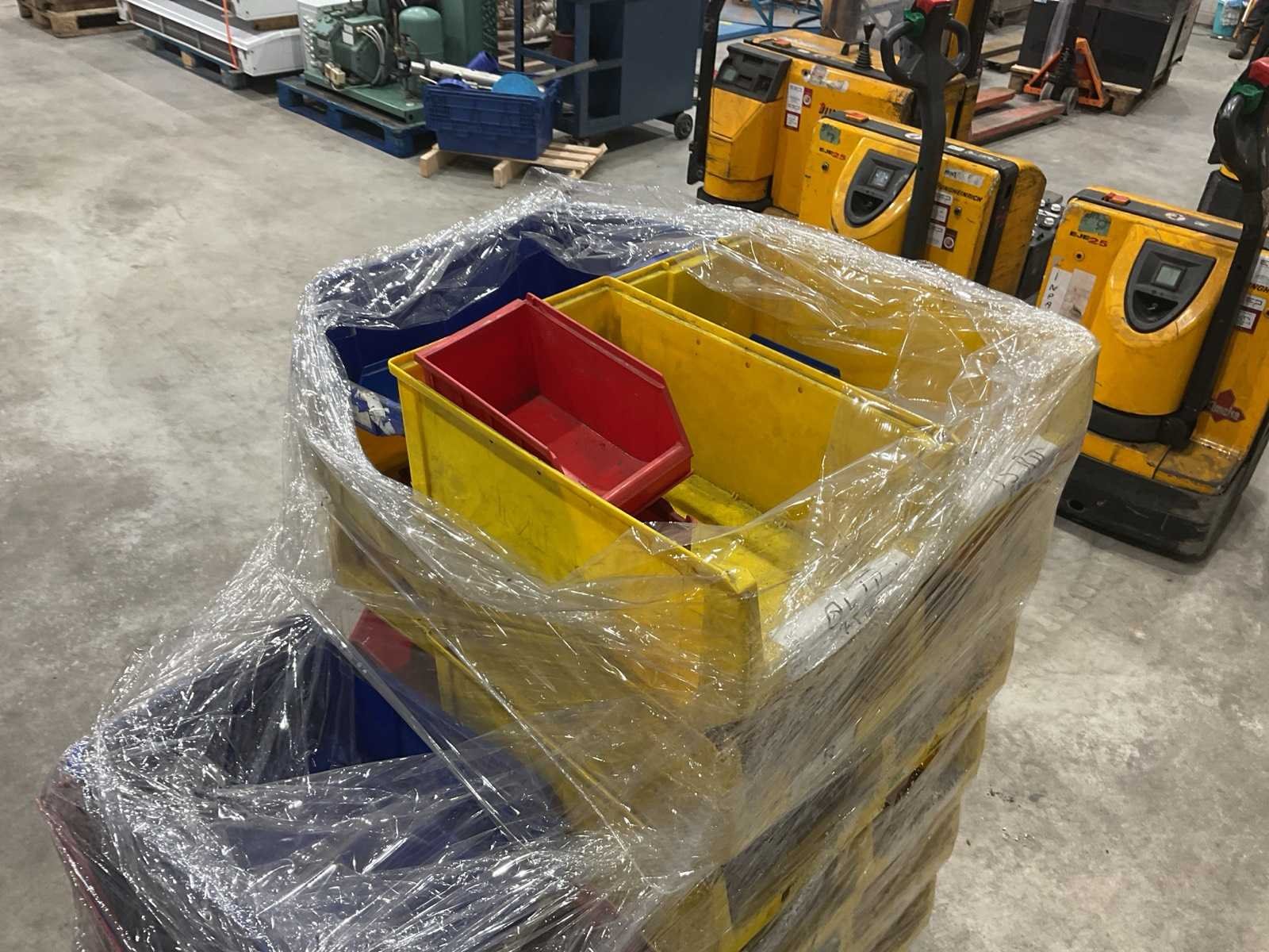 3x pallet met diverse magazijnbakken. Merk: Overtoom Afmeting l: 3500mm Afmeting b: 800mm Afmeting h: 1300mm Kunststof: true