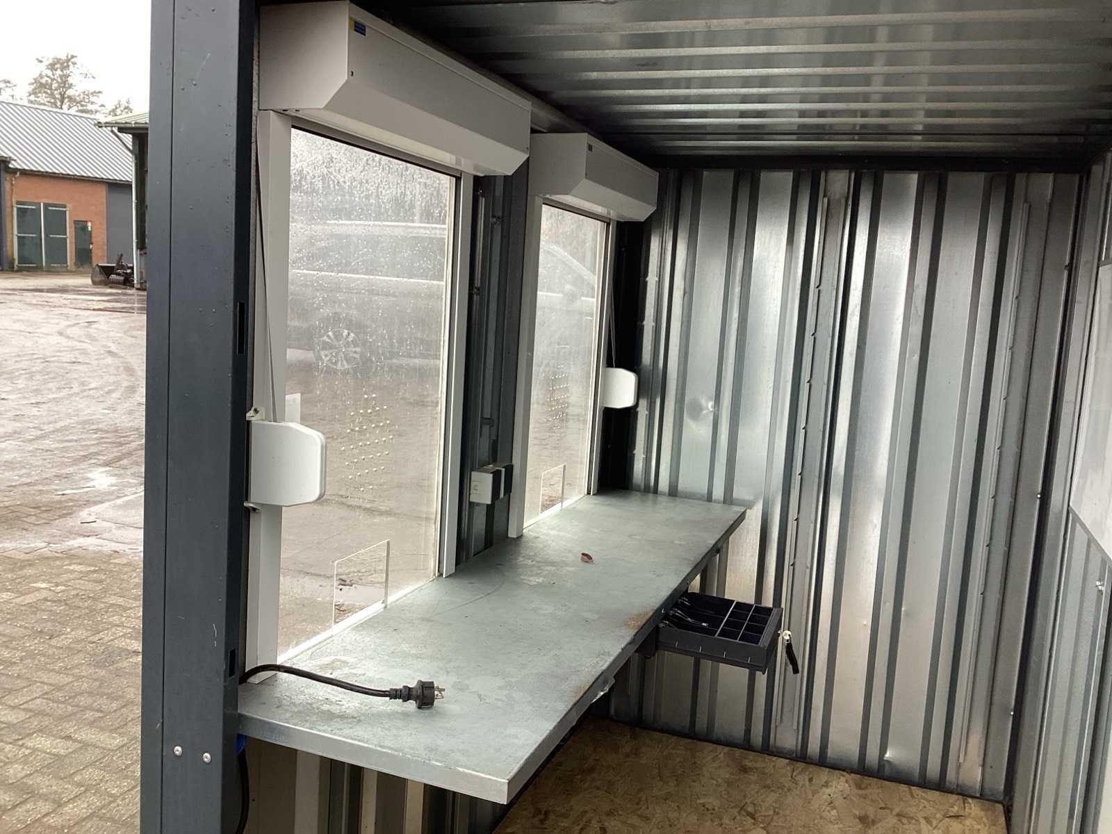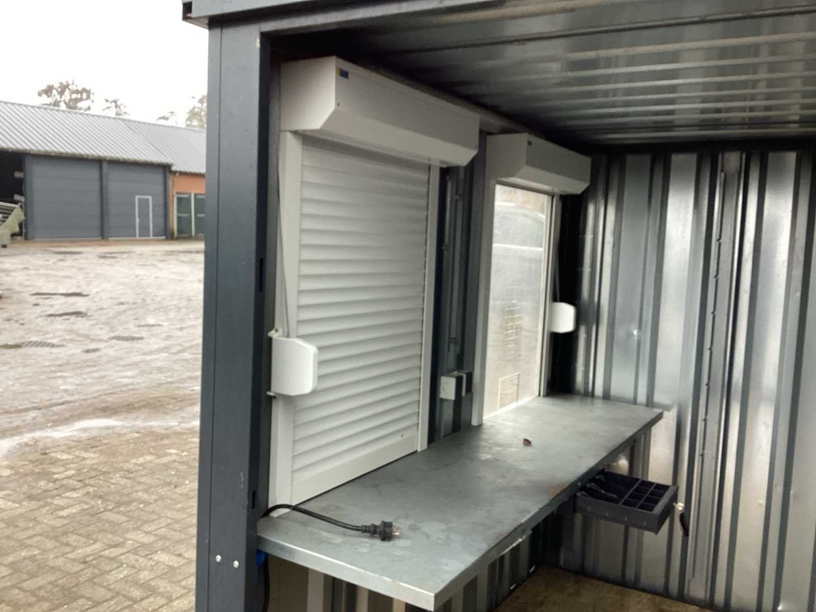 Voorzien van. Rolluiken; kassa laden met sleutel; verlichting; stopcontacten; lepel kokers Merk: Foco Type: GP Bouwjaar: 2021 Serienummer: 110312 Aantal ramen: 2 Totale afmeting L: 2200mm Totale afmeting Breedte: 1430mm Totale afmeting Hoogte: 2100mm