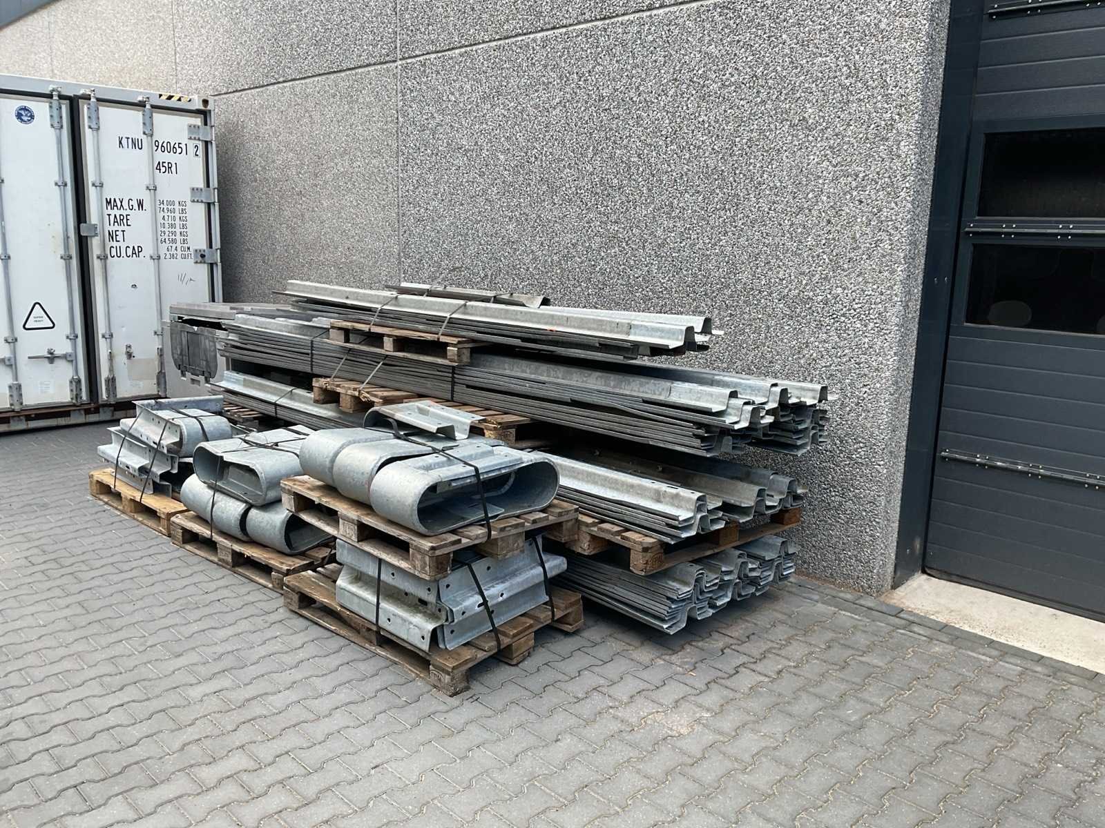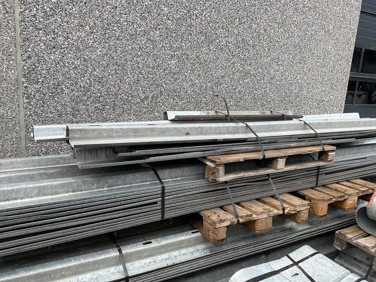 Voorzien van. 70x 430cm lang; div korte stukken; 24x eindstuk; 4x 90 graden stuk; div bevestigingsmateriaal; profiel hoogte 310mm; incl palletbox; 80x voet hoogte 51cm; totaal gewicht 5410kg. Totale afmeting L: 4300mm Totale afmeting Breedte: 2900mm Totale afmeting Hoogte: 1500mm
