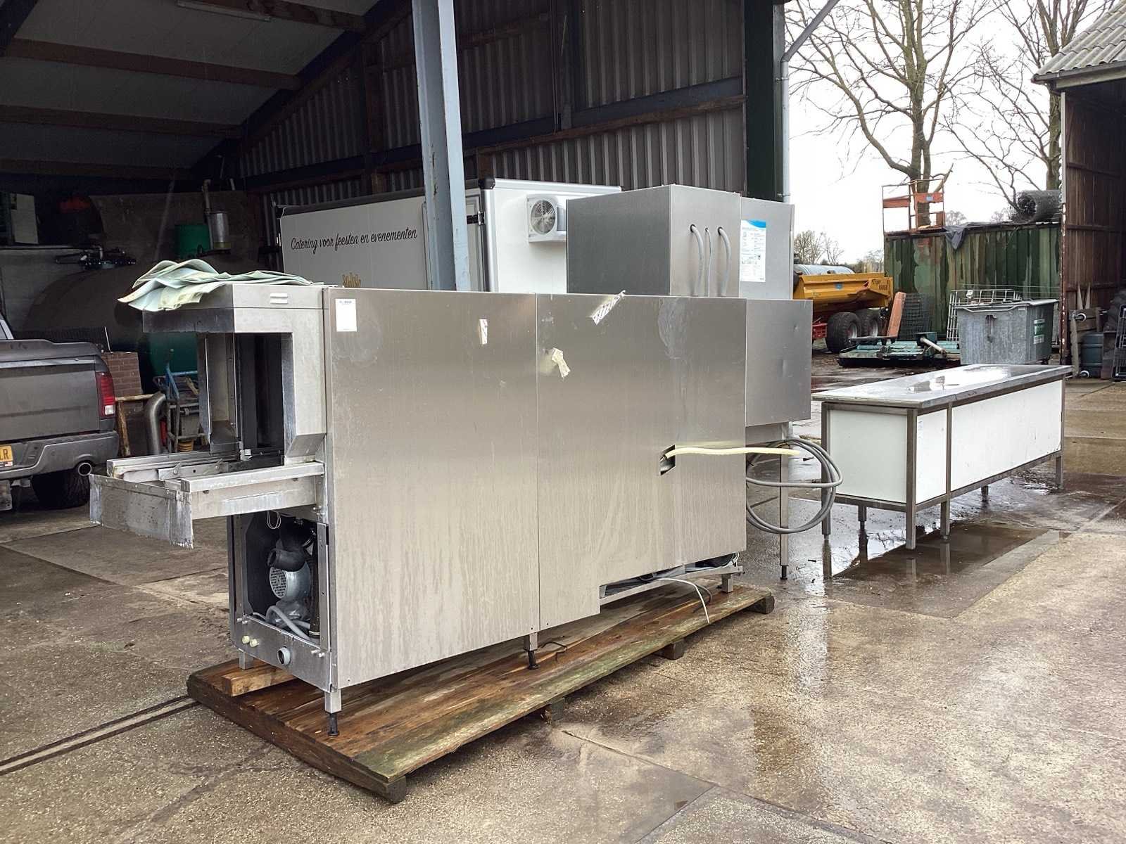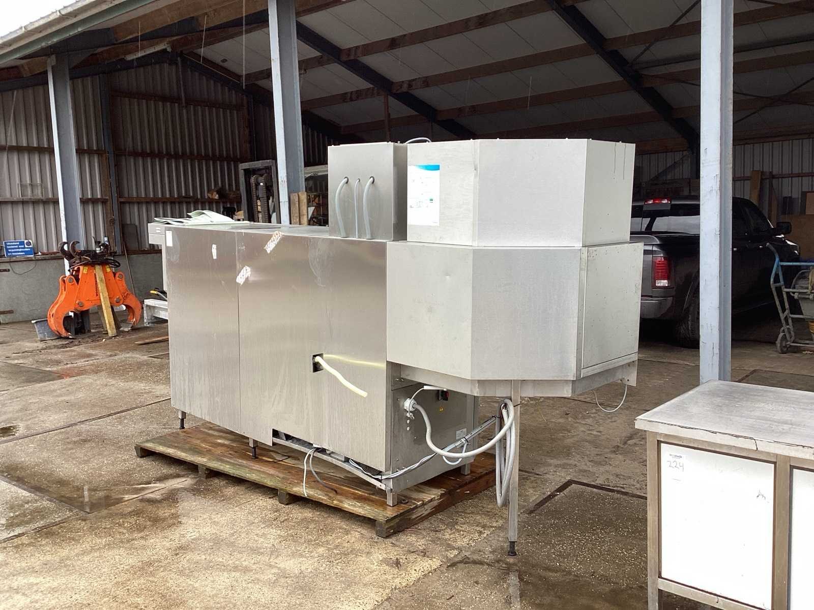 Voorzien van. Door schuiver van onder andere kratten Merk: Hobart Doorloopbreedte: 500mm Mobiel: true Rvs: true Aansluiting: 400V Totale afmeting L: 3650cm Totale afmeting Breedte: 950cm Totale afmeting Hoogte: 2000cm