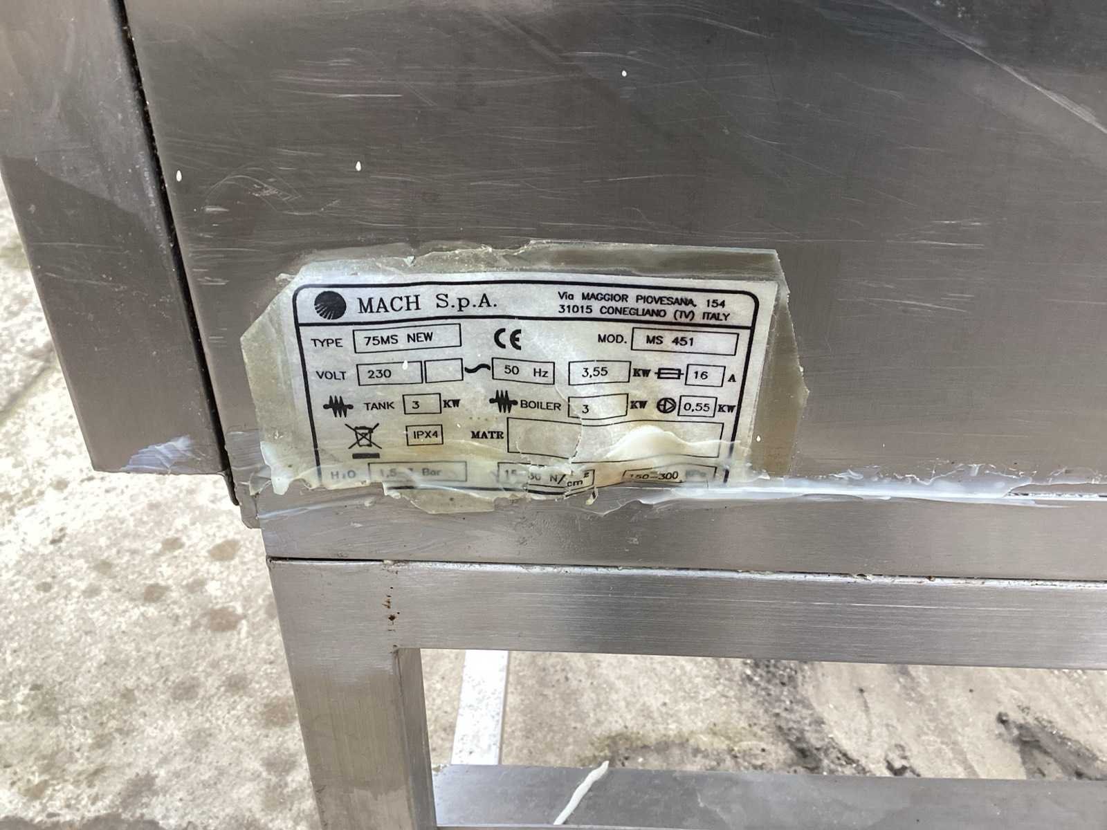 Merk: Mach Type: 75MS NEW Rvs: true Voorlader: true Aansluiting: 230V Totale afmeting L: 600mm Totale afmeting Breedte: 6200mm Totale afmeting Hoogte: 1320mm