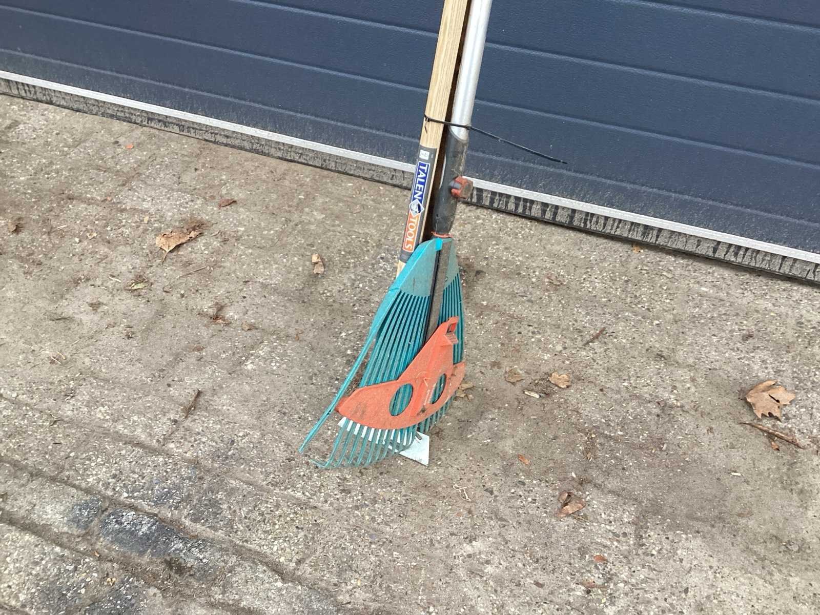 Voorzien van. Blad hark; rollen houder; onkruid hak.