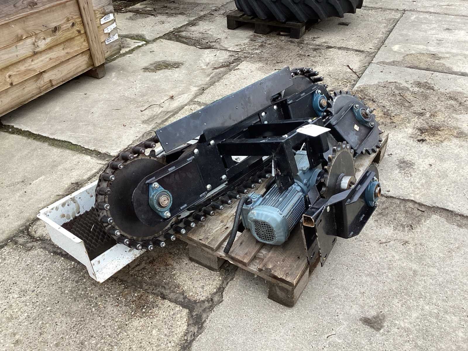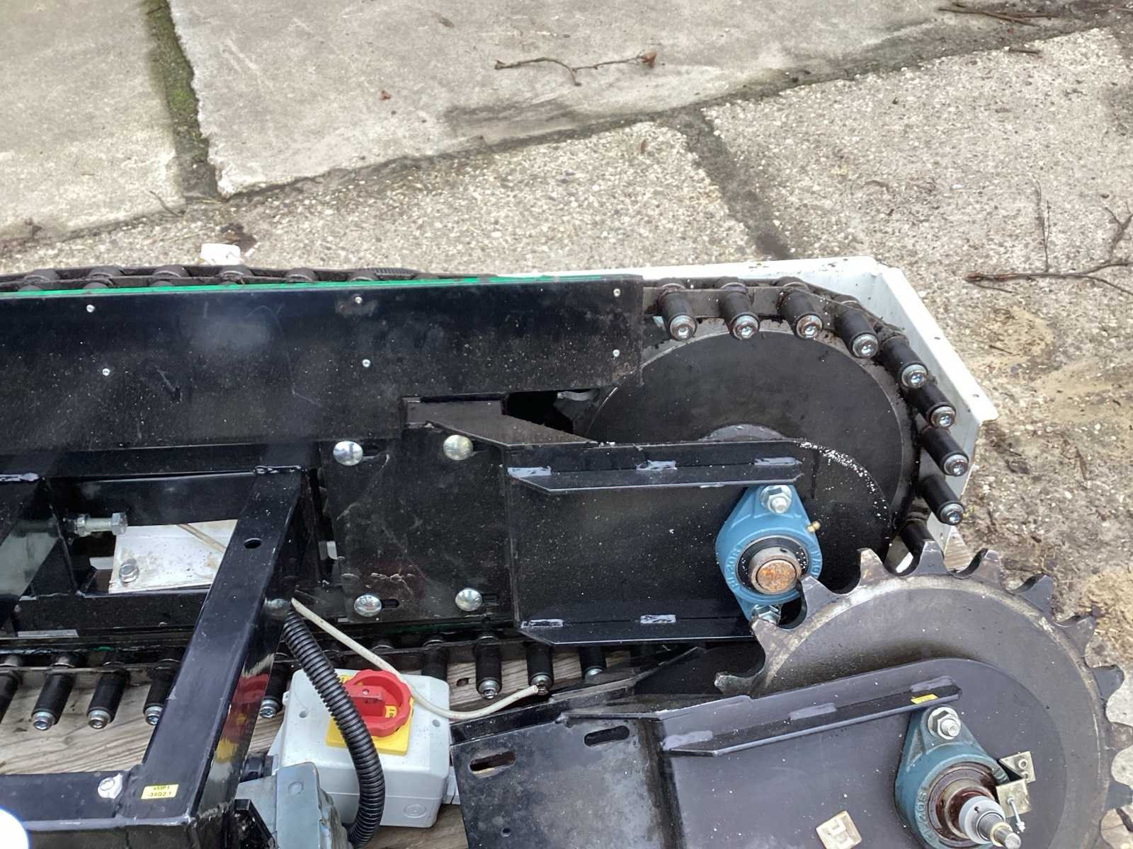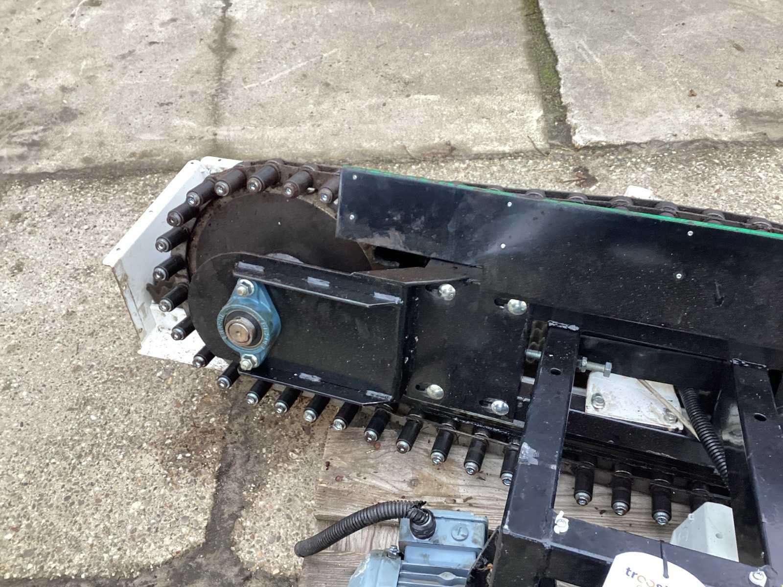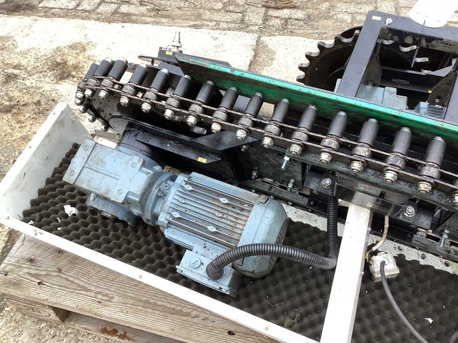 Voorzien van. 2 elektra motoren- reductor; ketting wielen; wordt gebruikt in de kleding industrie Elektrisch aangedreven: true