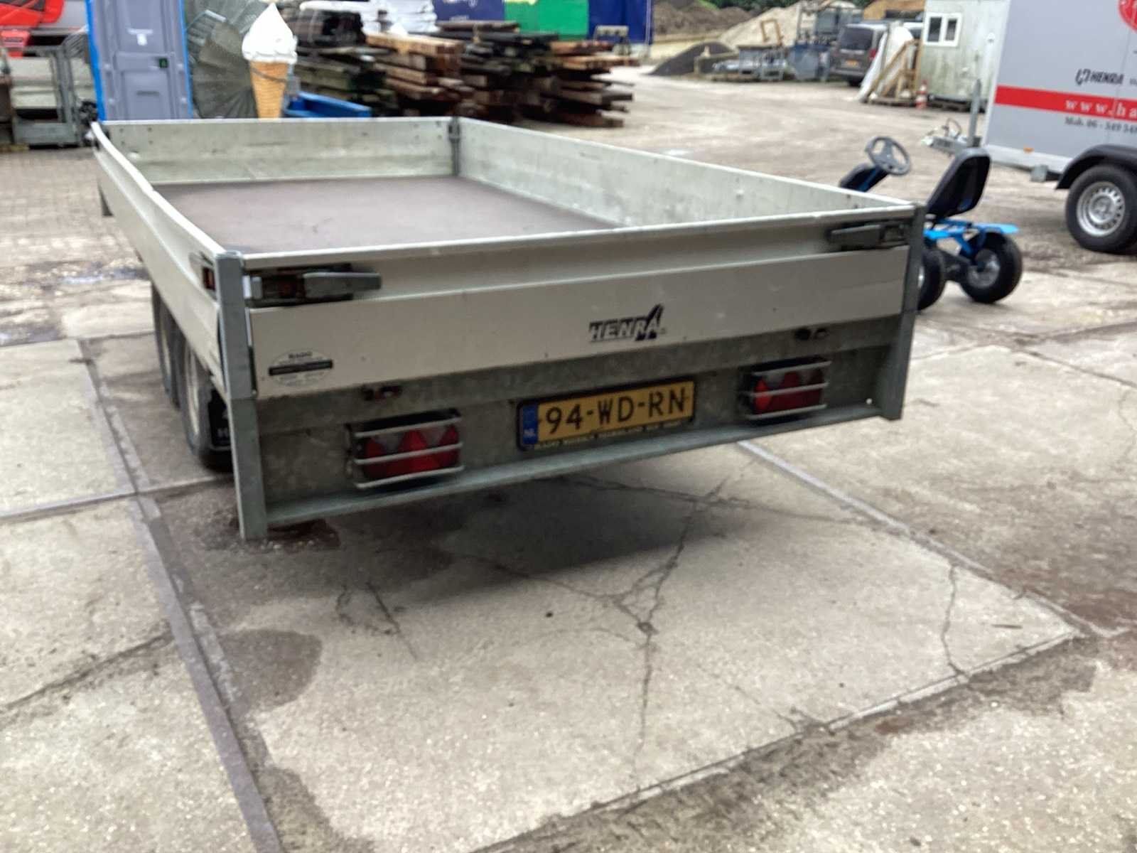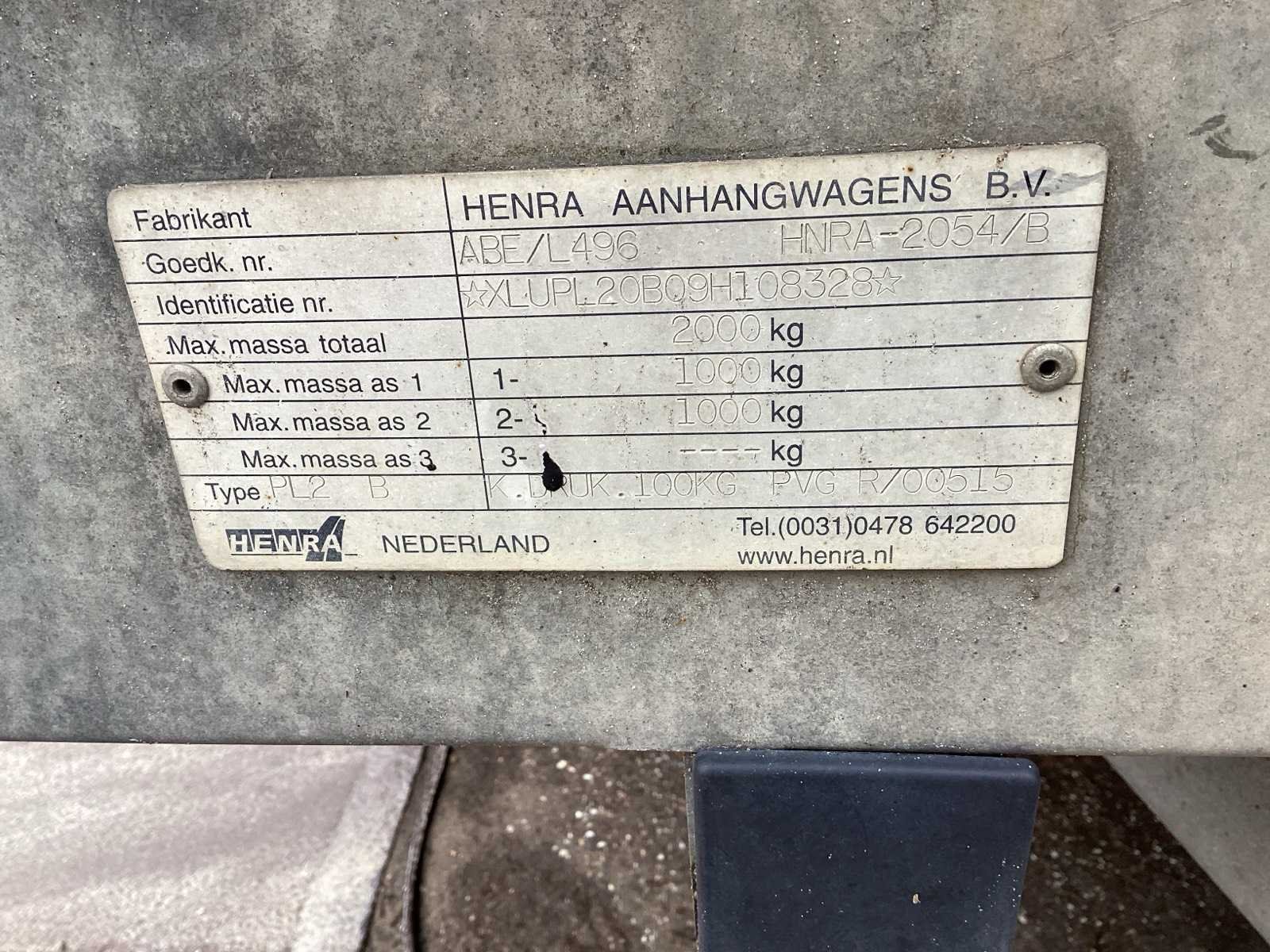 Voorzien van. Nette hout vloer Merk: Henra Type: Pl2 B Bouwjaar: 2009 Aantal assen: 2 Laadbak afmeting l: 350cm Laadbak afmeting b: 185cm Ledig gewicht: 500kg Laadvermogen: 1500kg Datum eerste toelating: 2009-05-29 Datum eerste toelating (NL): 2009-05-29 Kenteken: 94-WD-RN