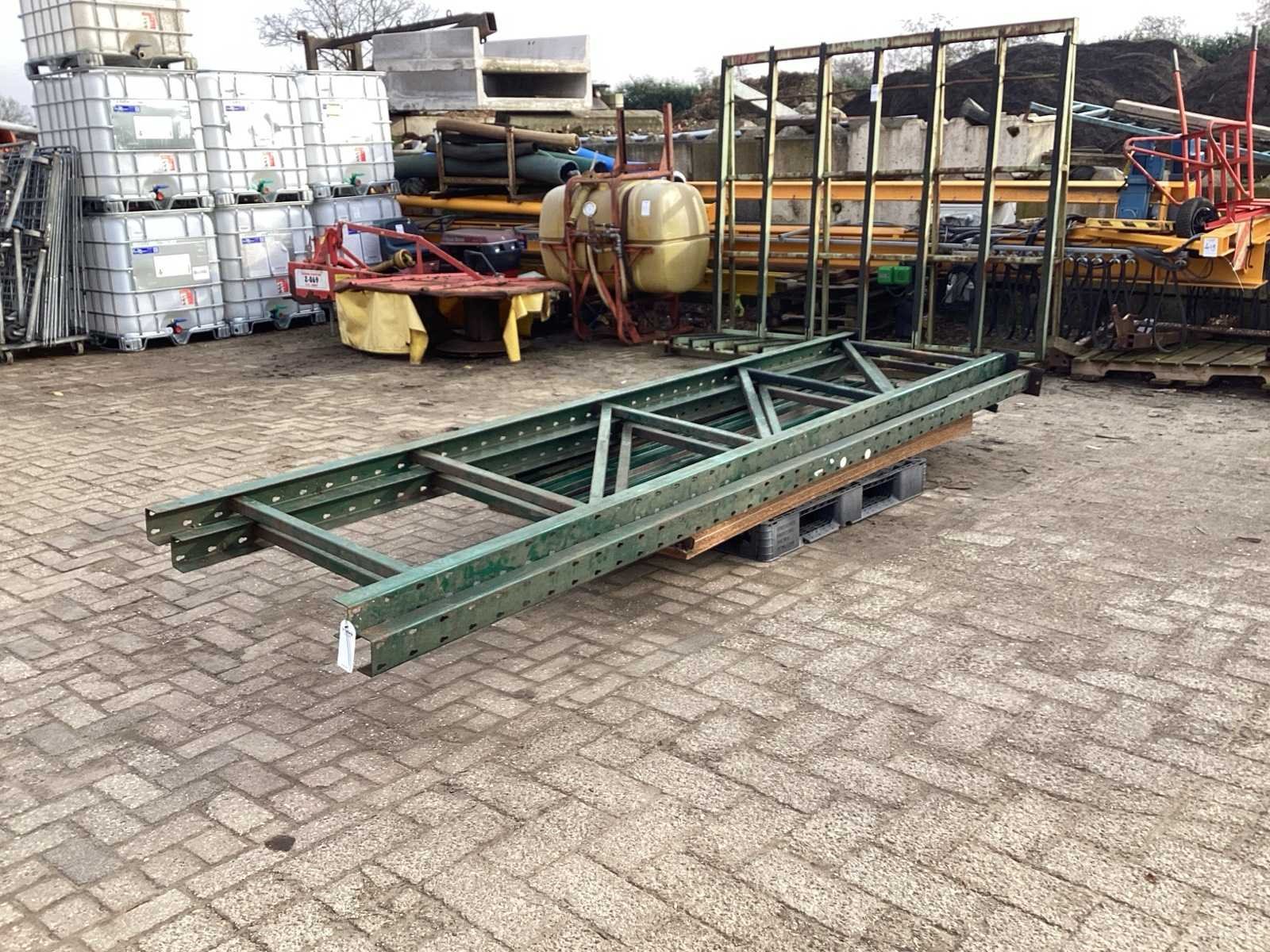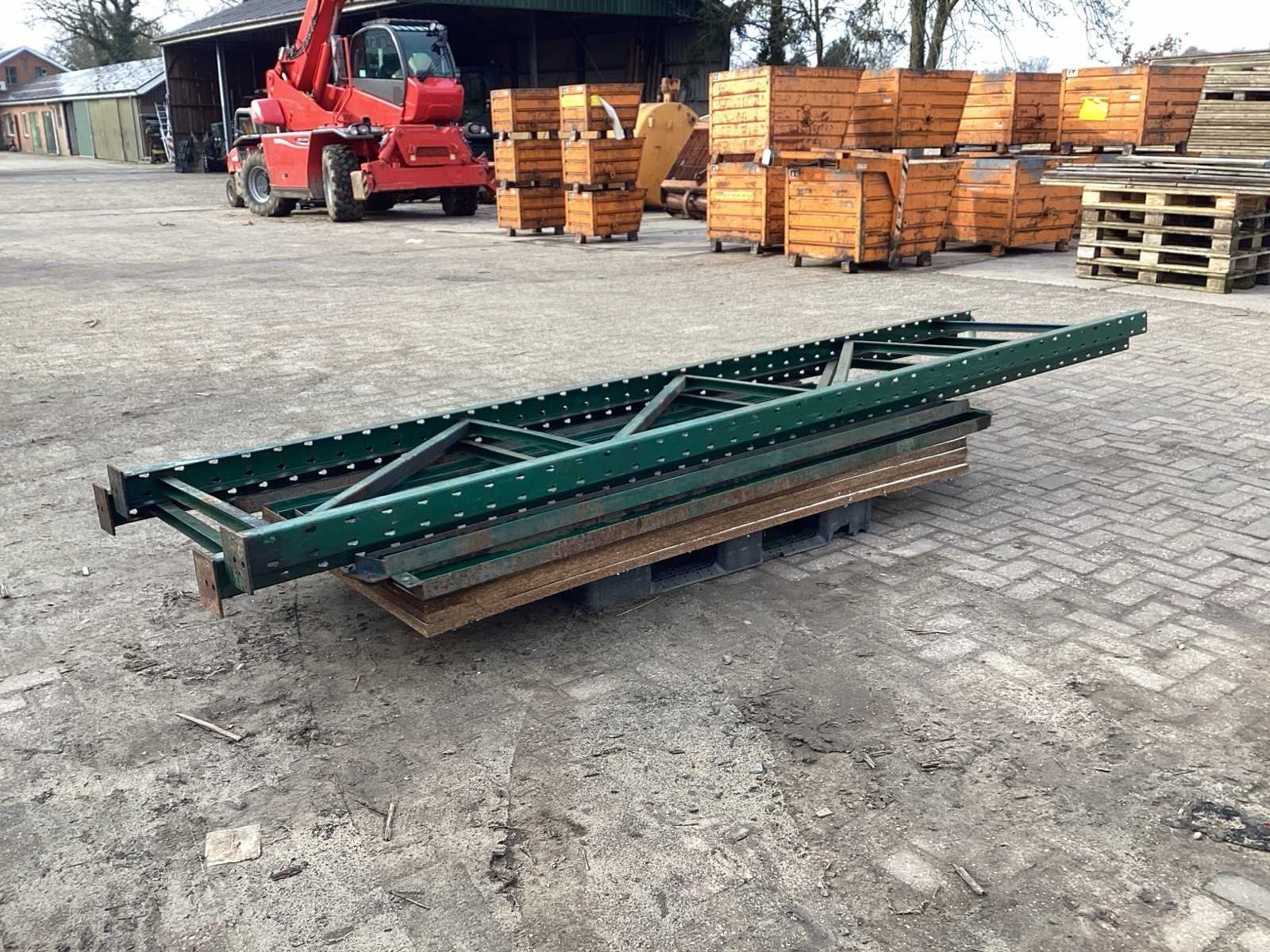 Lengte van de staanders 410 cm; breedte 90 cm; lengte van liggers 245 cm; inleg platen Aantal staanders: 2 Aantal liggers: 8 Demontabel: true Totale afmeting L: 410cm Totale afmeting Breedte: 120cm Totale afmeting Hoogte: 50cm