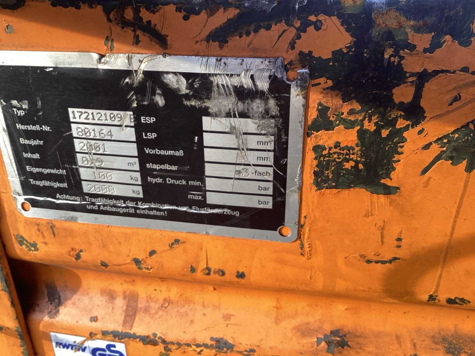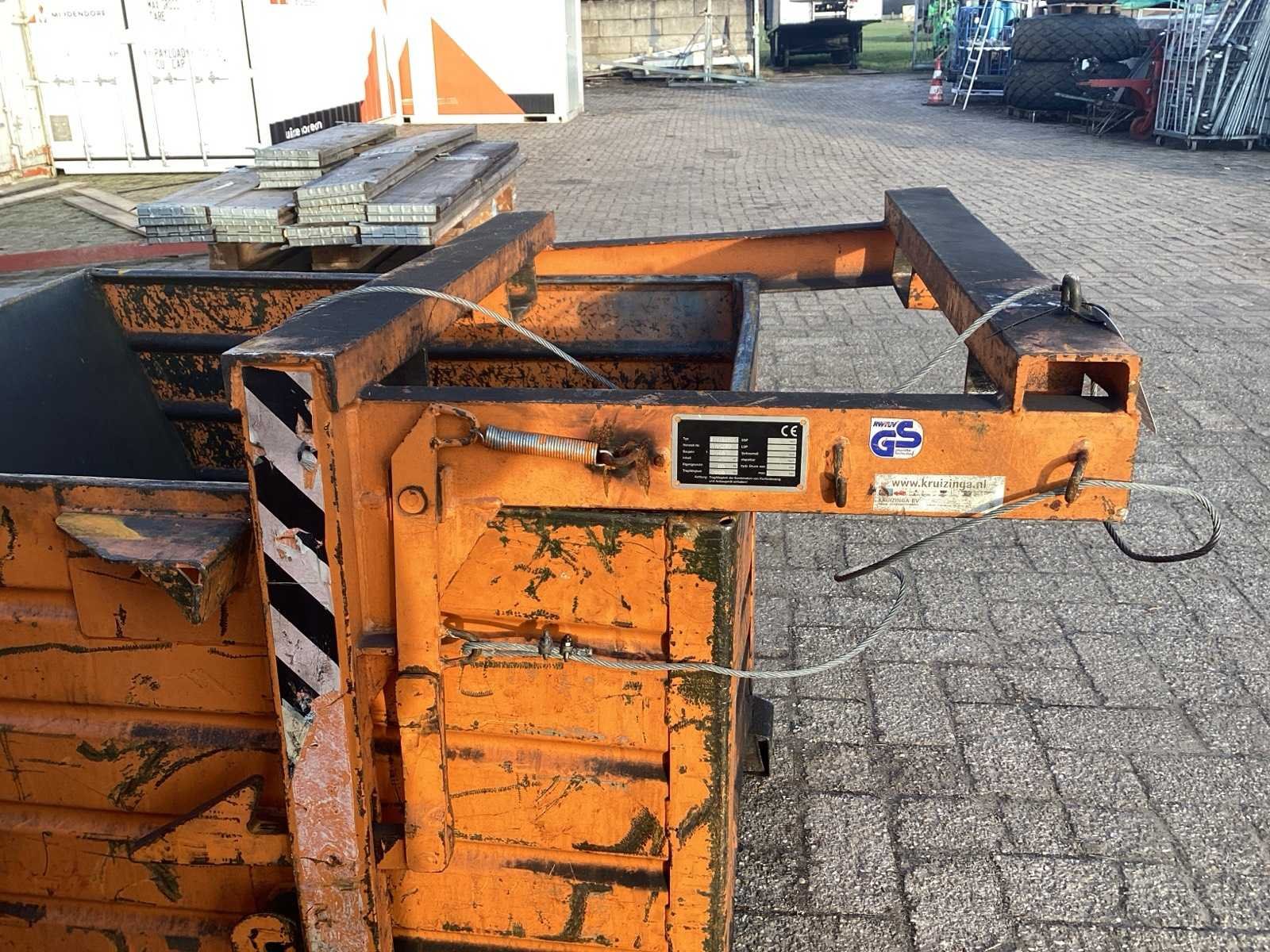 Voorzien van. Kiep systeem voor lepel bord Merk: RWTÜV Inhoud: 900 liter Opslagcontainer: true Totale afmeting L: 1200mm Totale afmeting Breedte: 1000mm Totale afmeting Hoogte: 900mm