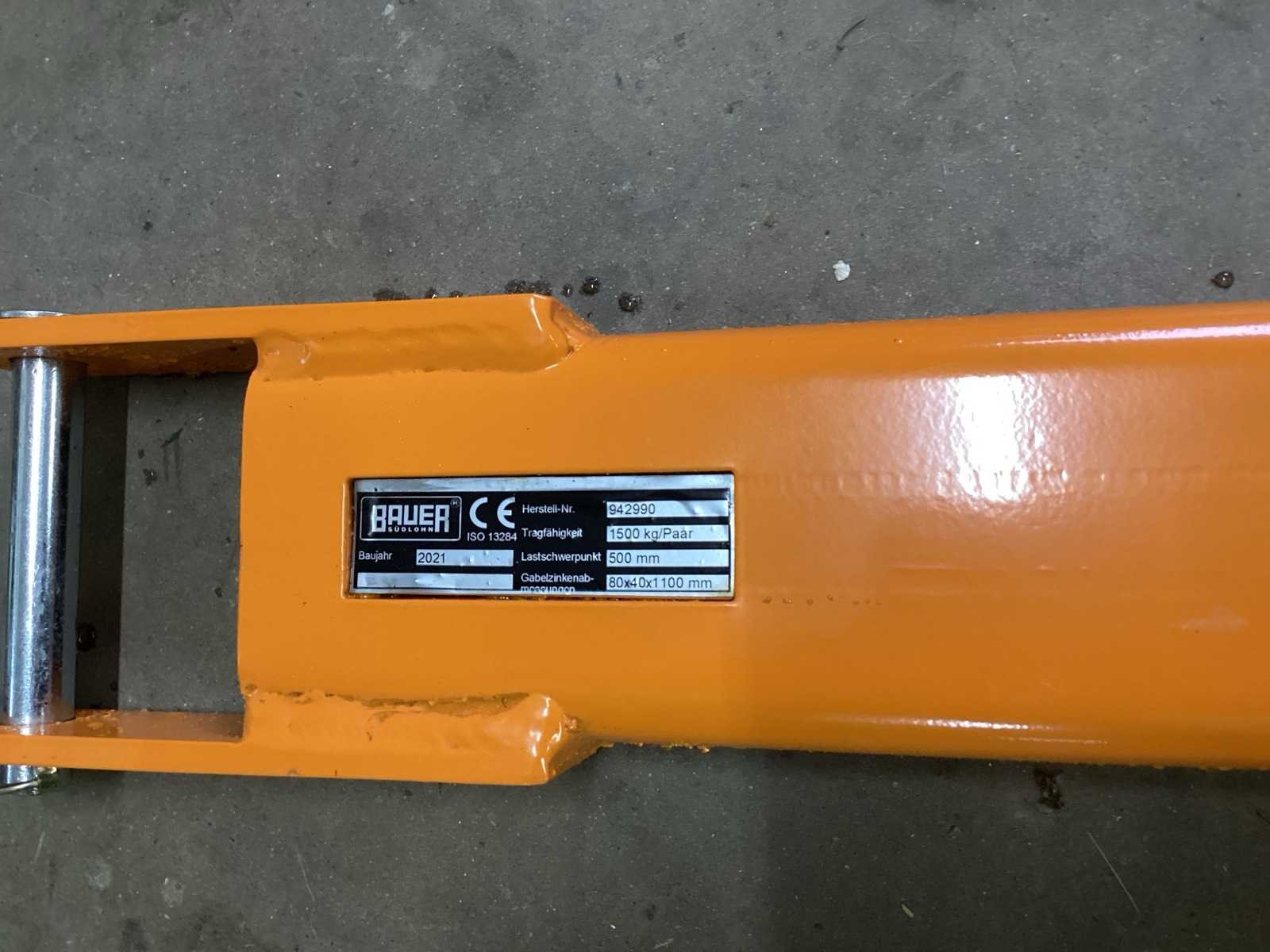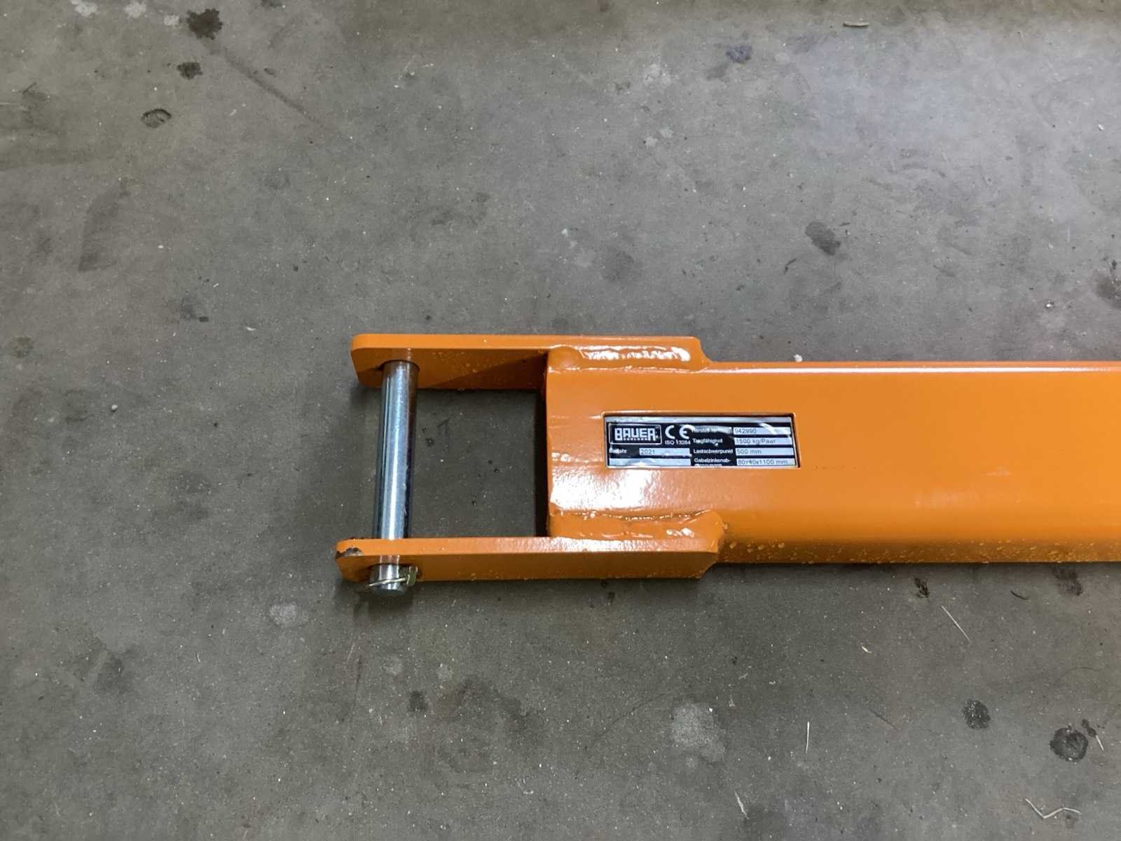 Voorzien van. Vergrendeling; ongebruikt; heftruck voorzetstuk Merk: Bauer Hijsvermogen: 1500kg Afmeting l: 1800mm