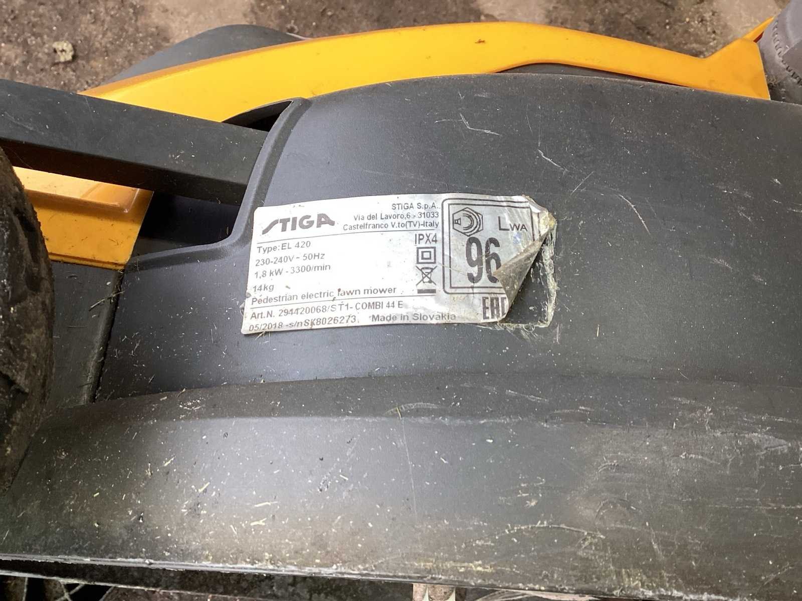 Merk: Stiga Type: EL420 Werkbreedte: 42cm Loopmaaier: true Aansluiting: 230 Opvang container: true