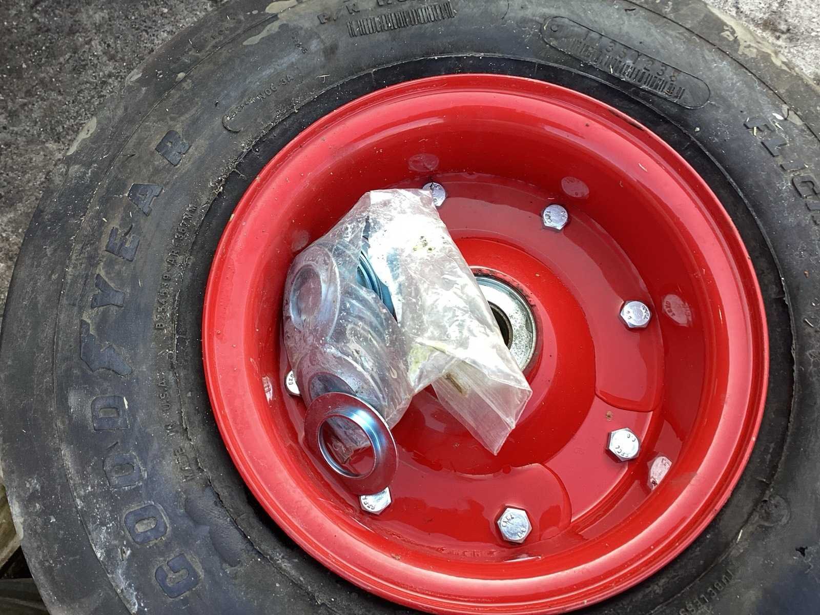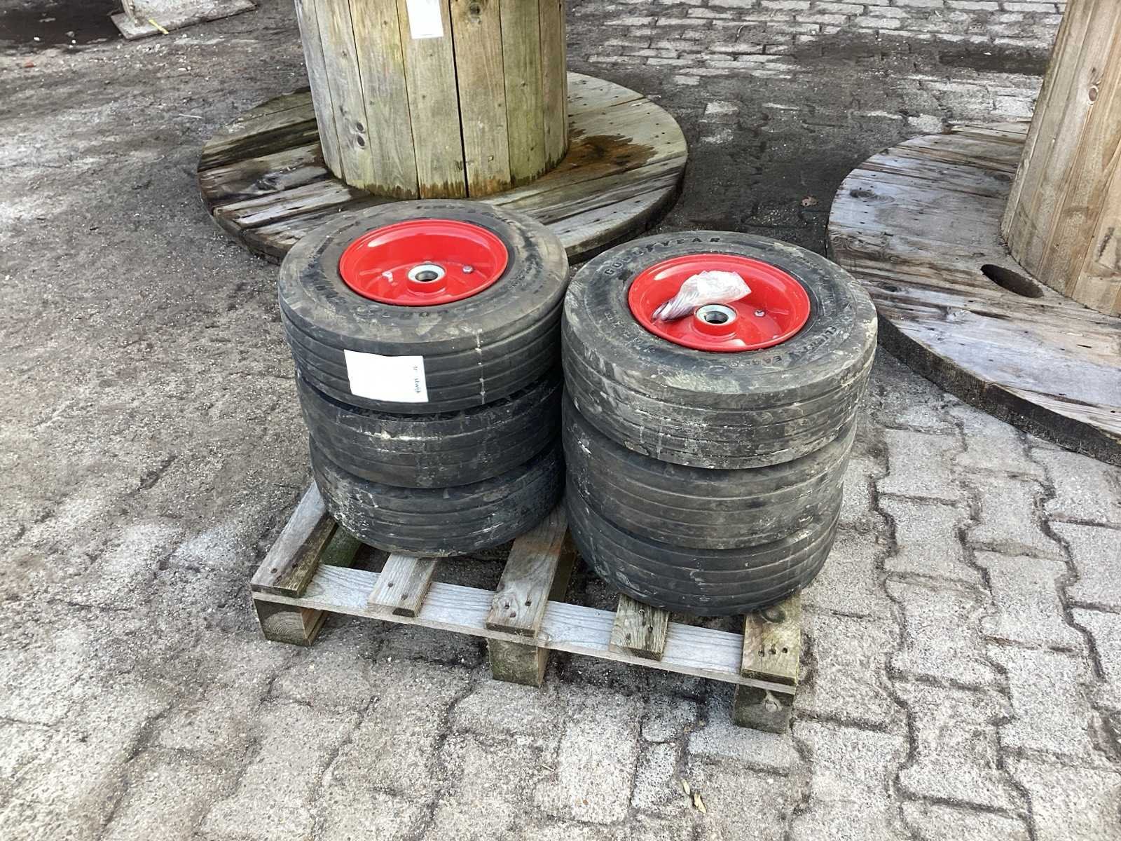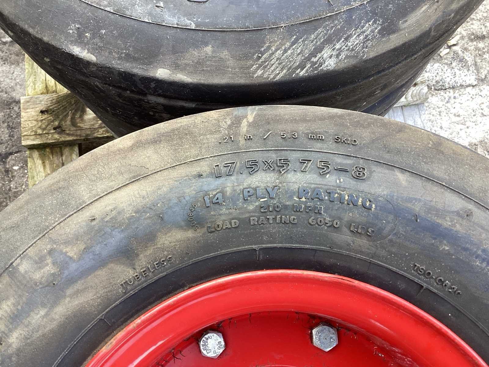 Voorzien van. Ongebruikte velgen; as maat 30 mm; banden massief Merk: Good Year Type: Flight eagle Bandenmaat: 17.5x5.75-8