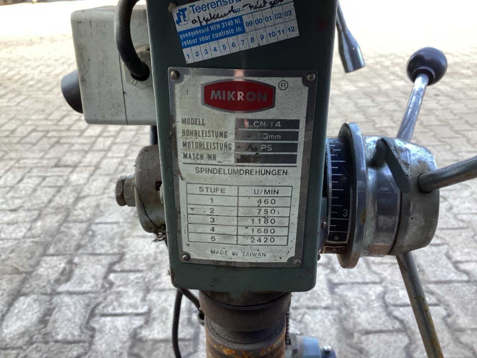 Heeft geen motor Merk: Mikron Type: LCN-14 Boorcapaciteit: 13mm Tafel afmeting b: 310mm Afmeting b: 310mm Afmeting h: 900mm