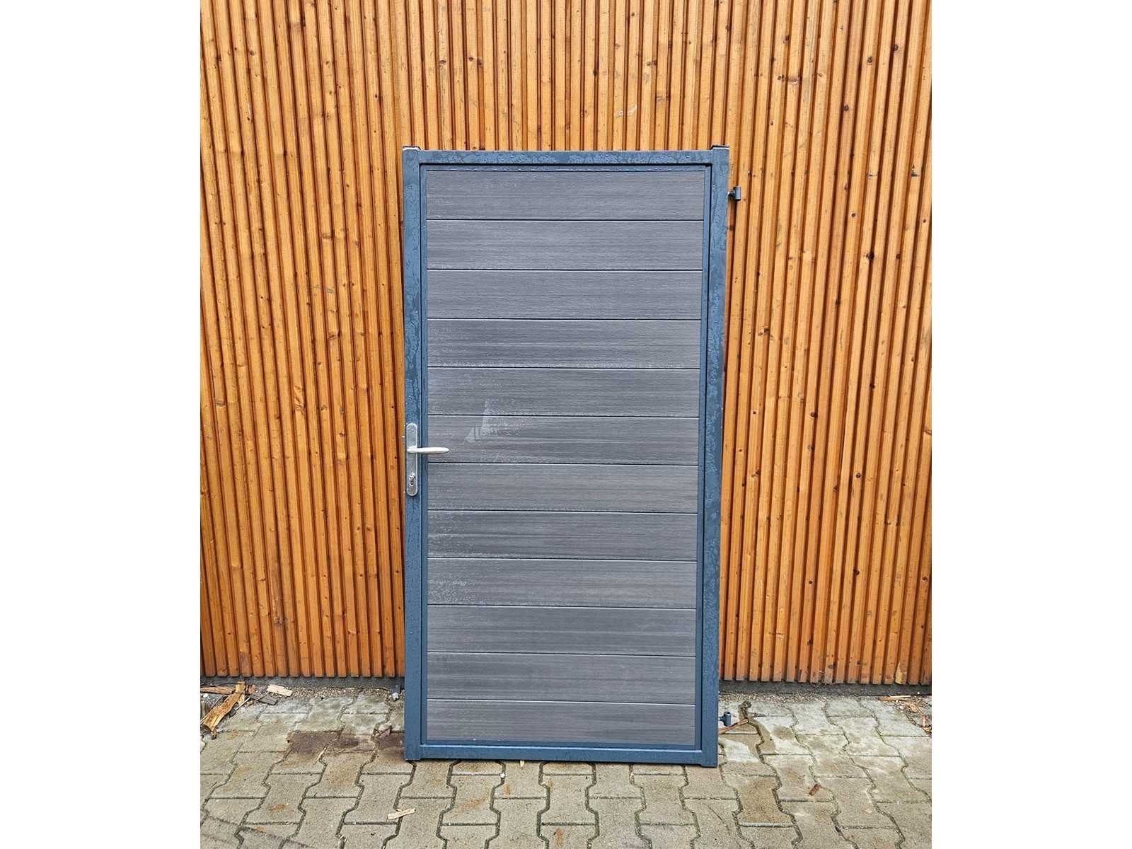 Tuinpoort voorzien van een verzinkt stalen en gecoat deurframe. Voorzien van WPC composiet planken Merk: velufence Kleur: antraciet Breedte: 95cm Hoogte: 190cm Materiaal: composiet