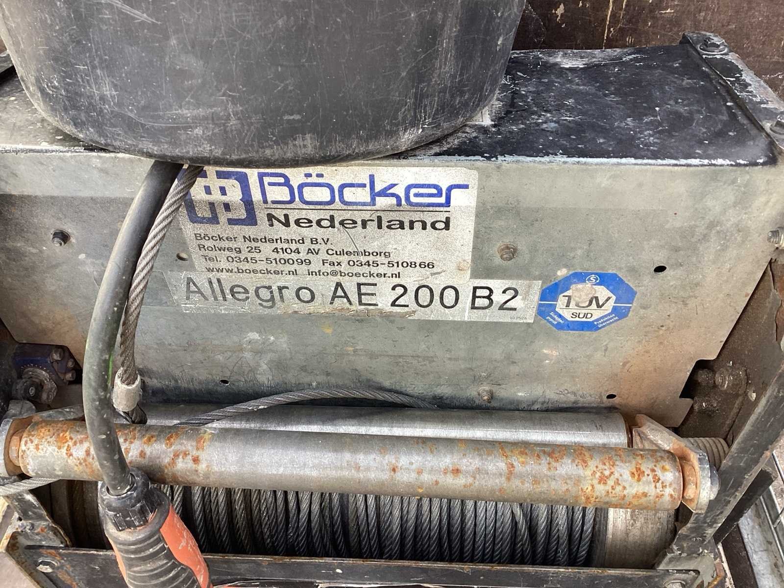 Voorzien van. 8 geleide frames; grond steun; diverse voeding en besturing kabel; Merk: Böcker Type: AE 200b Staalkabel: true