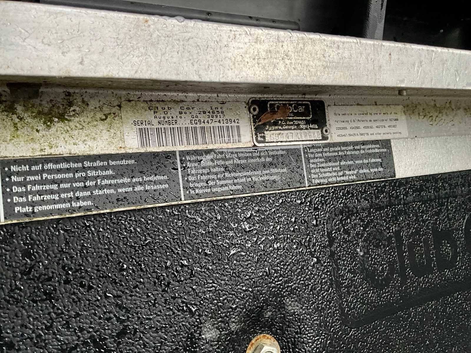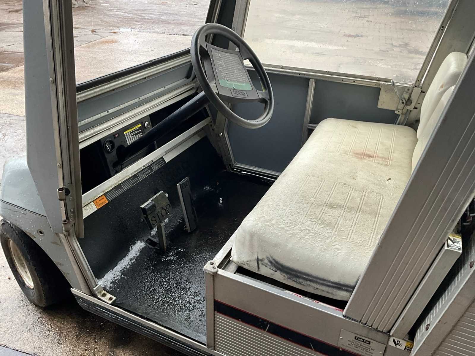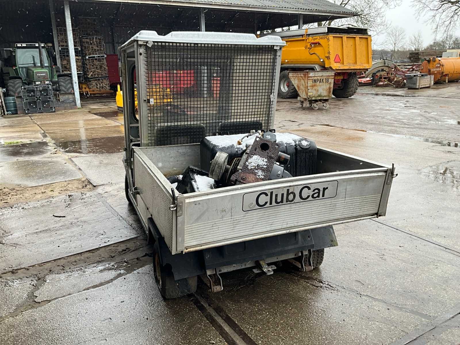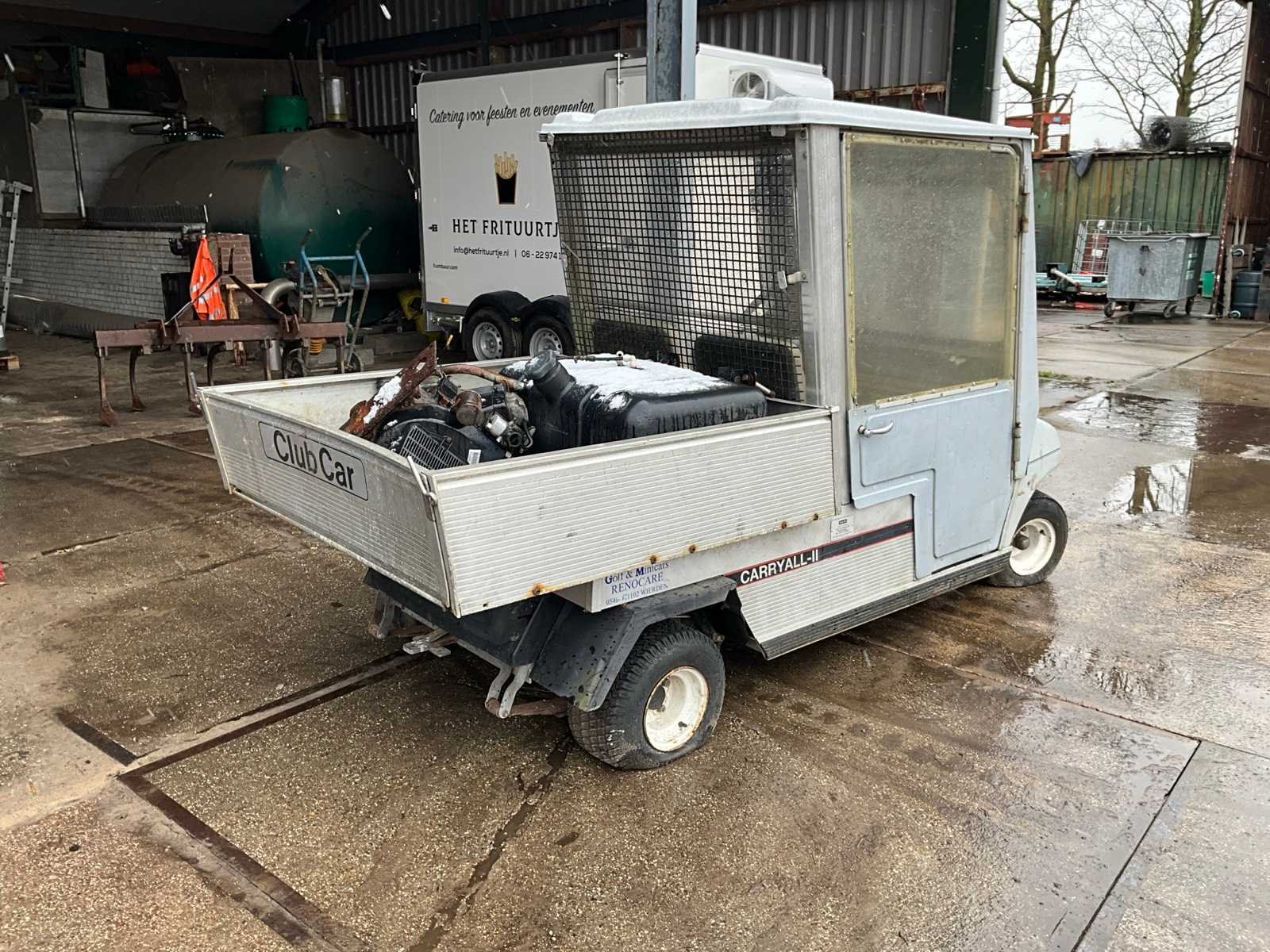 Kenteken TTJ-52-X, voorzien van laadbak, Let op! loopt niet Merk: ClubCar Type: Carryall-II Aantal personen: 2 Benzine: true