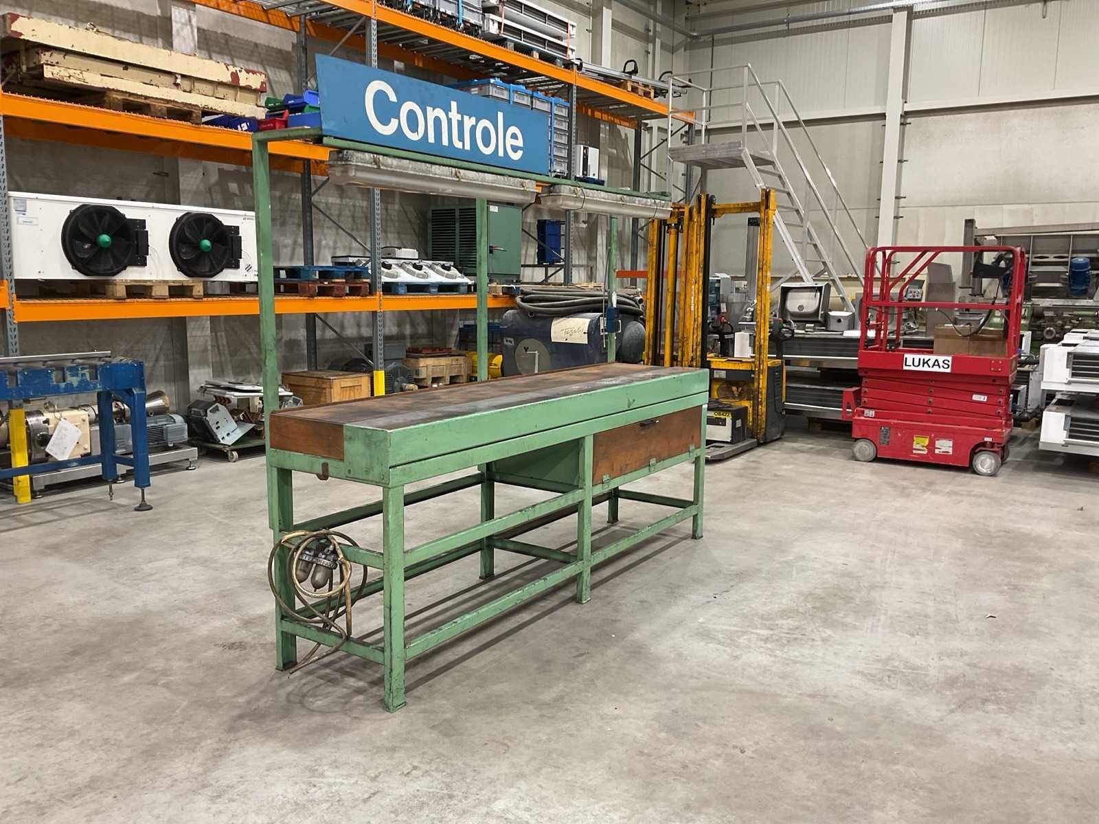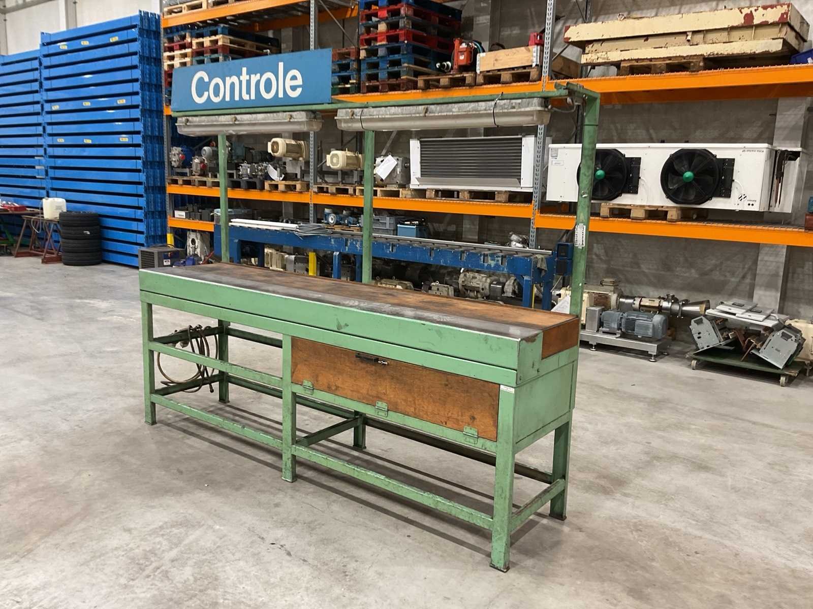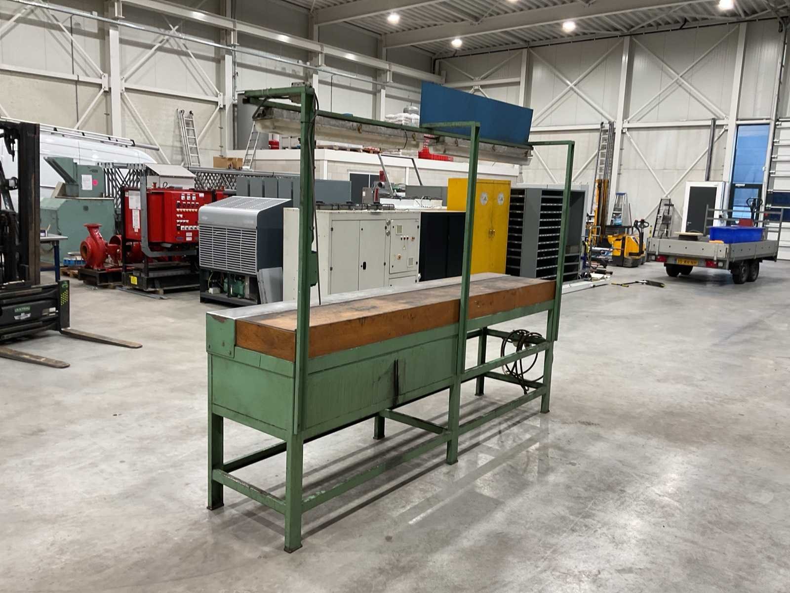 Voorzien van verlichting; werkblad hoogte 115cm Breedte: 750mm Lengte: 3000mm Hoogte: 2600mm Materiaal: Staal hout