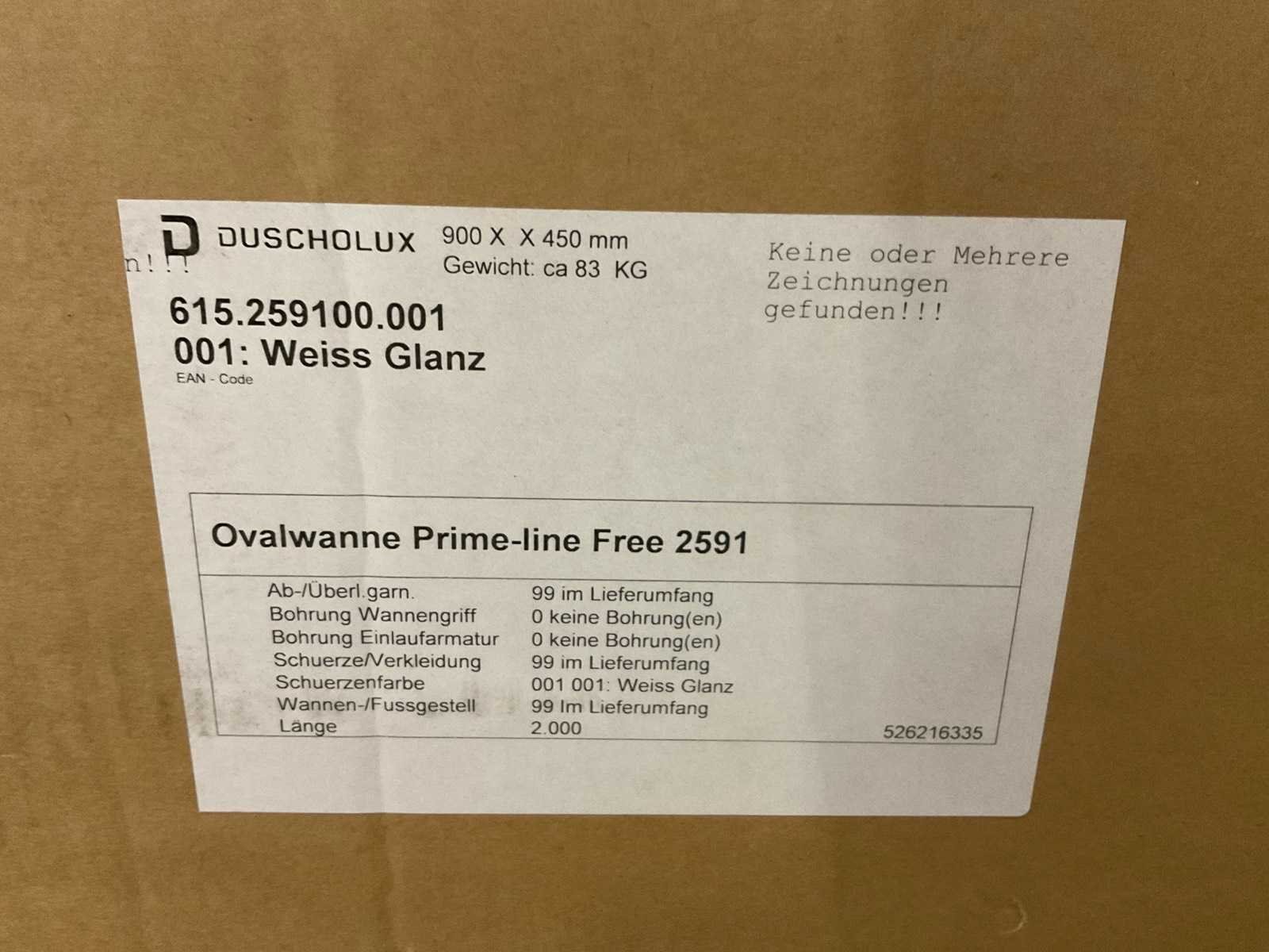 Duscholux prime-line free 2591 200x90cm vrijstaand bad