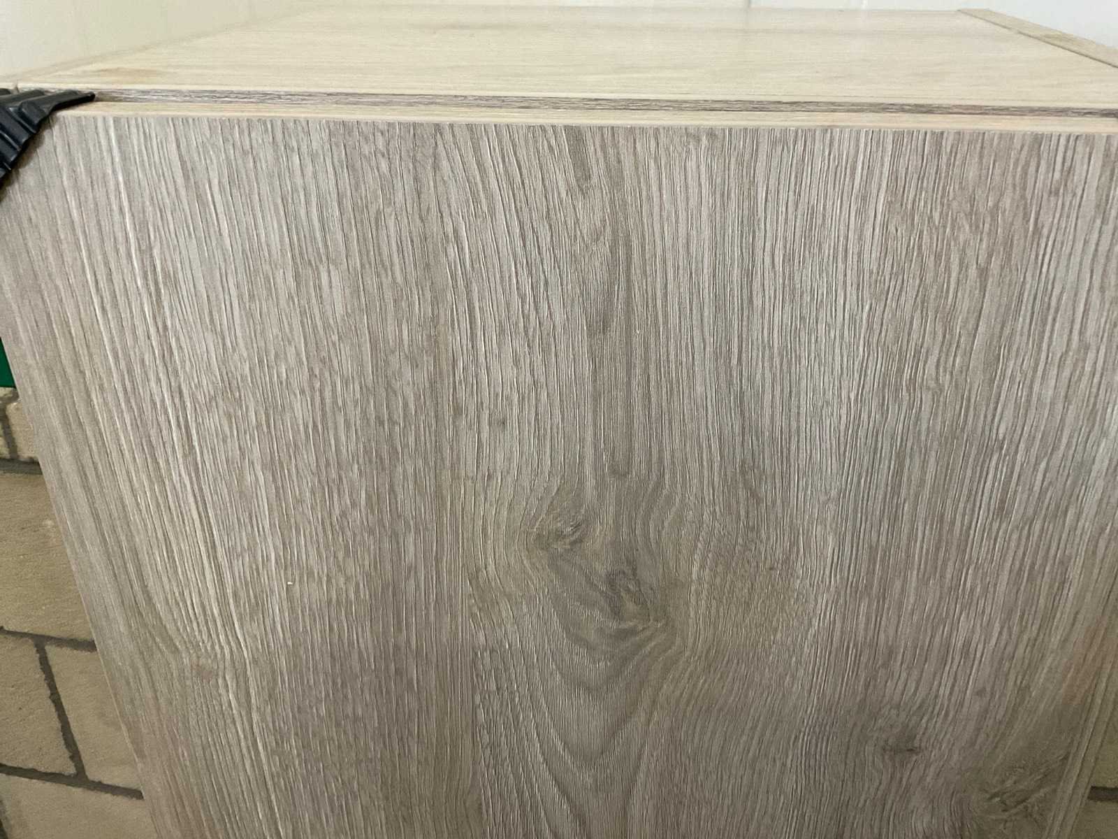 Met glazen schappen. Merk: Delpha Model: D-Motion Rechts Lengte: 44cm Breedte: 34cm Hoogte: 144cm Materiaal: Hout