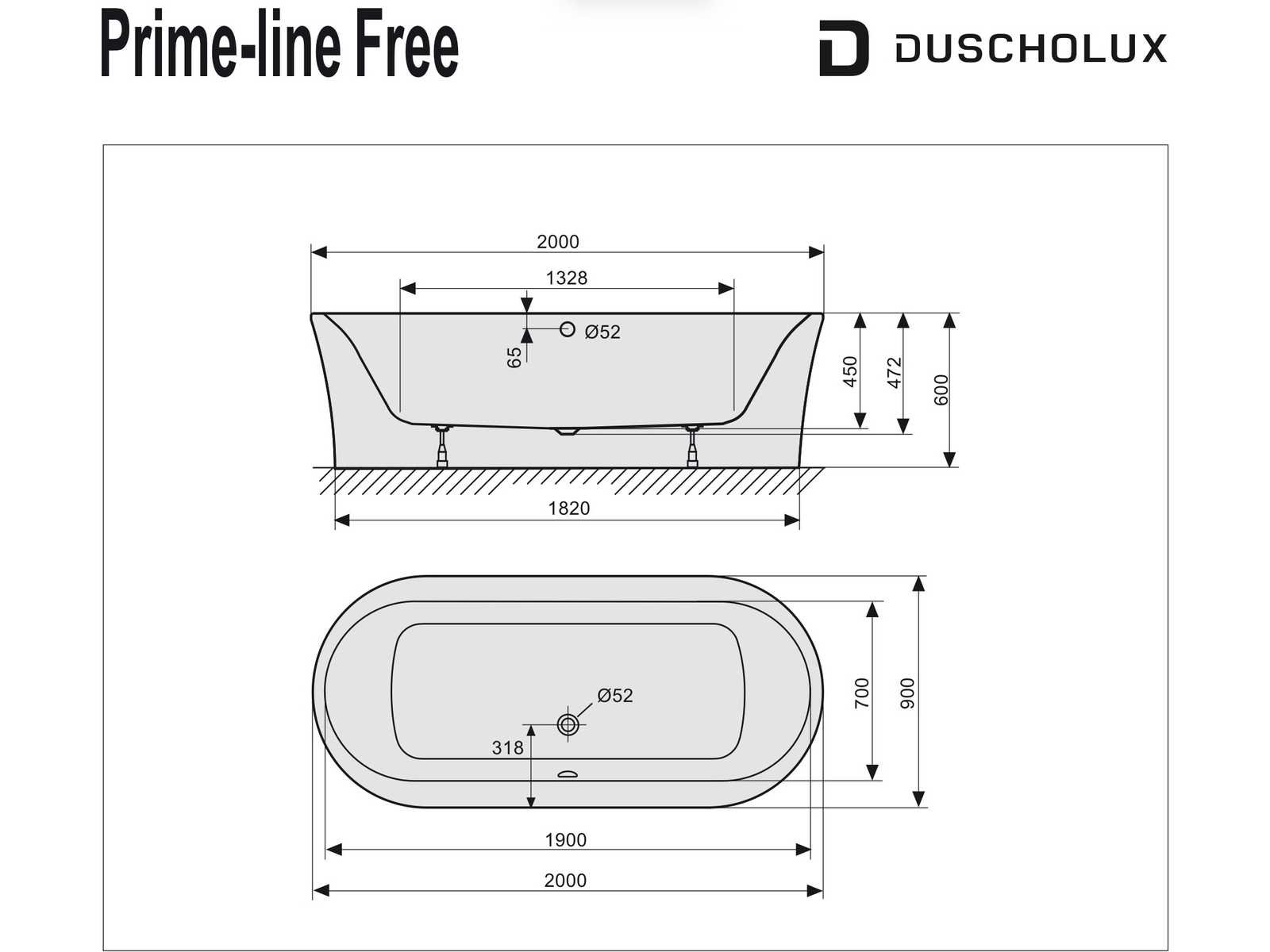 Duscholux prime-line free 2591 200x90cm vrijstaand bad