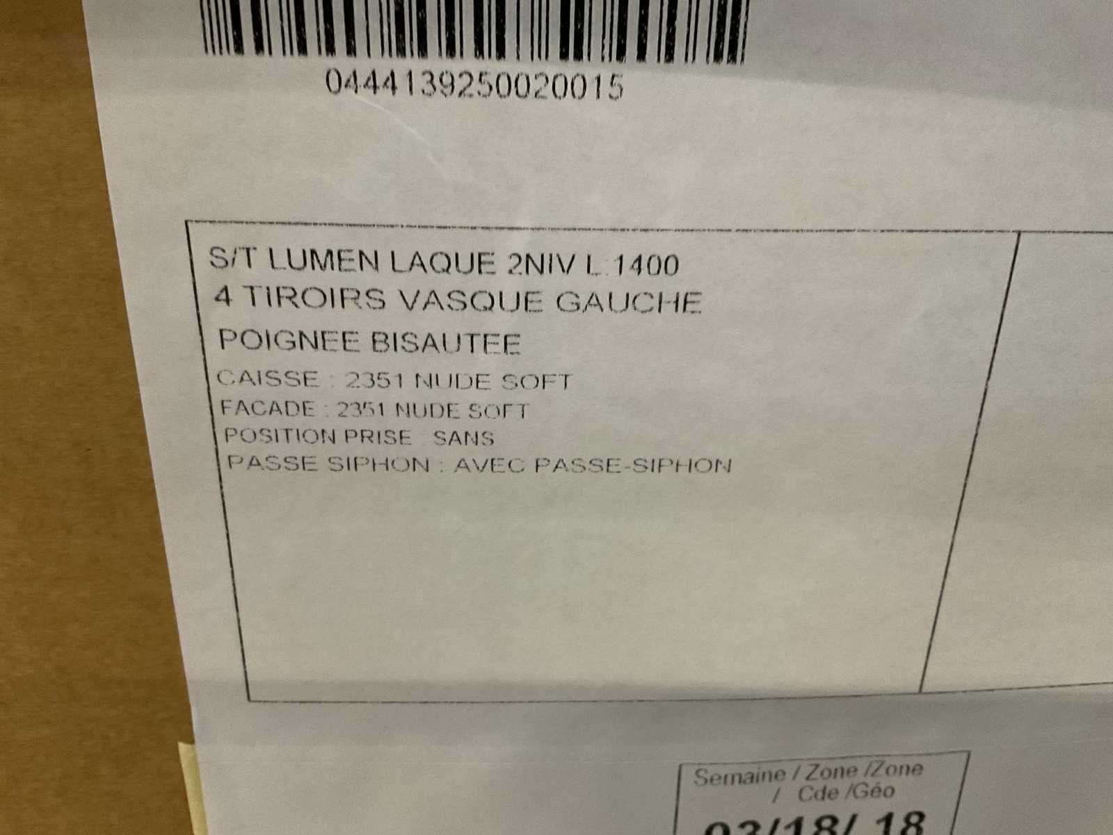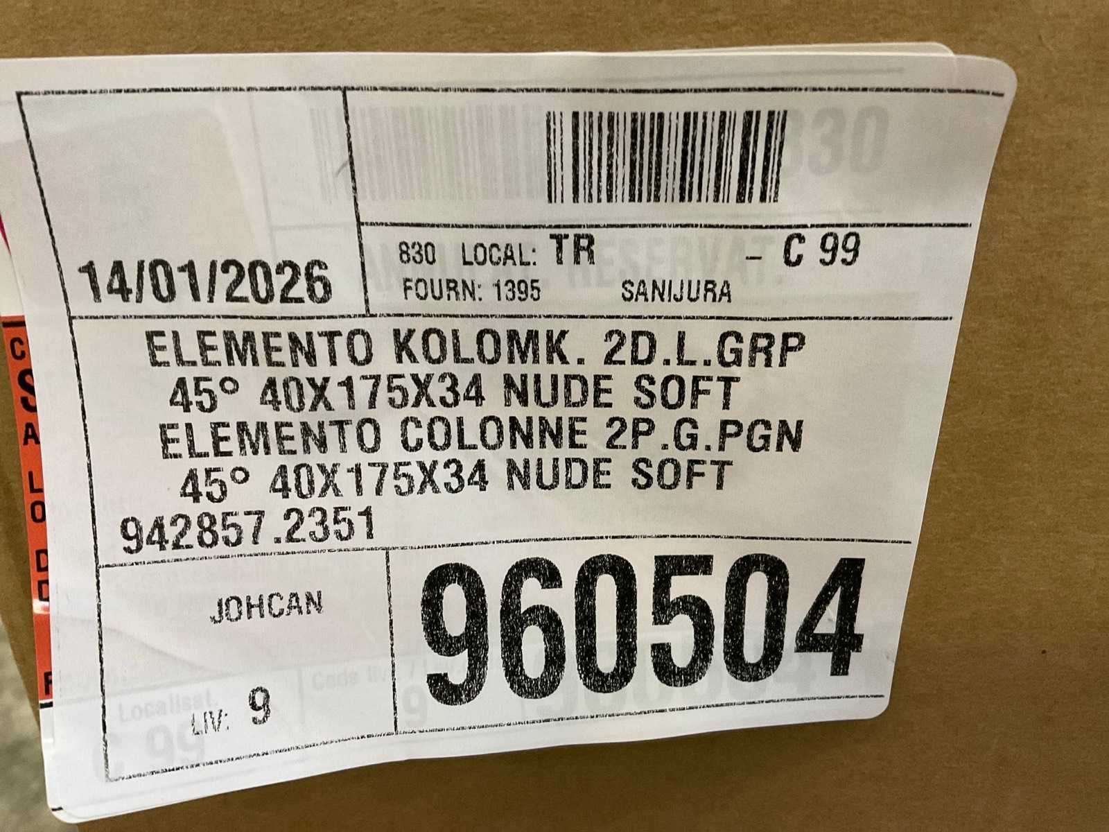 Met 4x lade, incl. 1X Sanijura Elemento 2-deurs linkse kolomkast, kleur Nude Soft, afm. H175xB40xD34cm. Merk: Sanijura Model: Lumen 140cm Kleur: Nude Soft Lengte: 140cm Breedte: 51cm Hoogte: 57cm