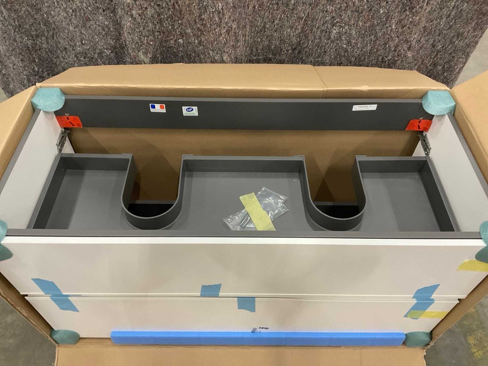 Met 2x lade. Merk: Sanijura Model: Lateral 2.0 120cm Kleur: Mat wit Lengte: 120cm Breedte: 51cm Hoogte: 60cm
