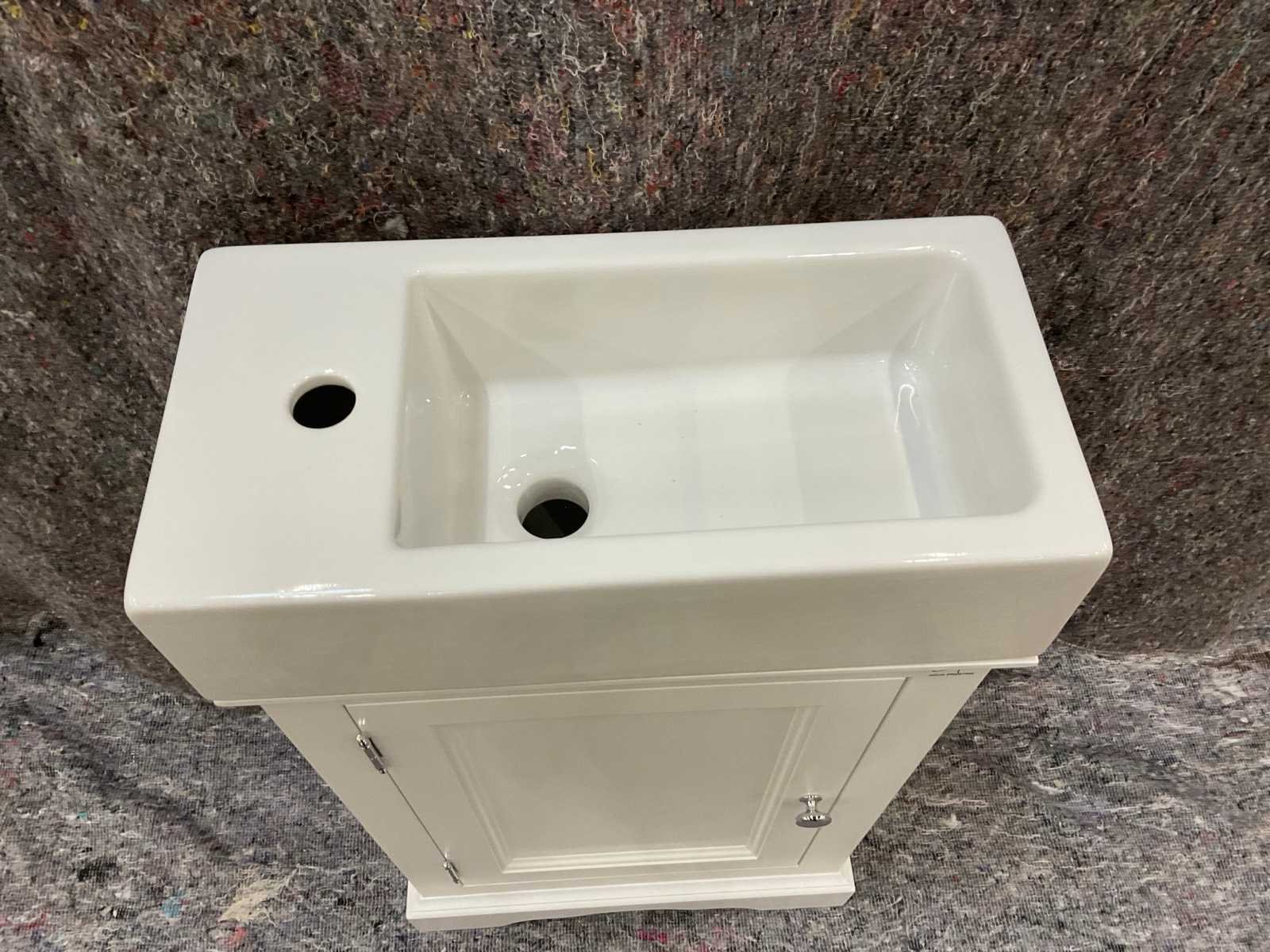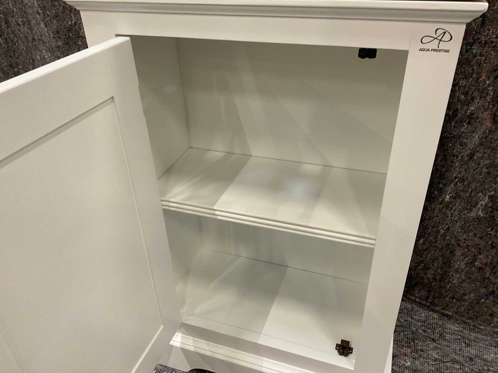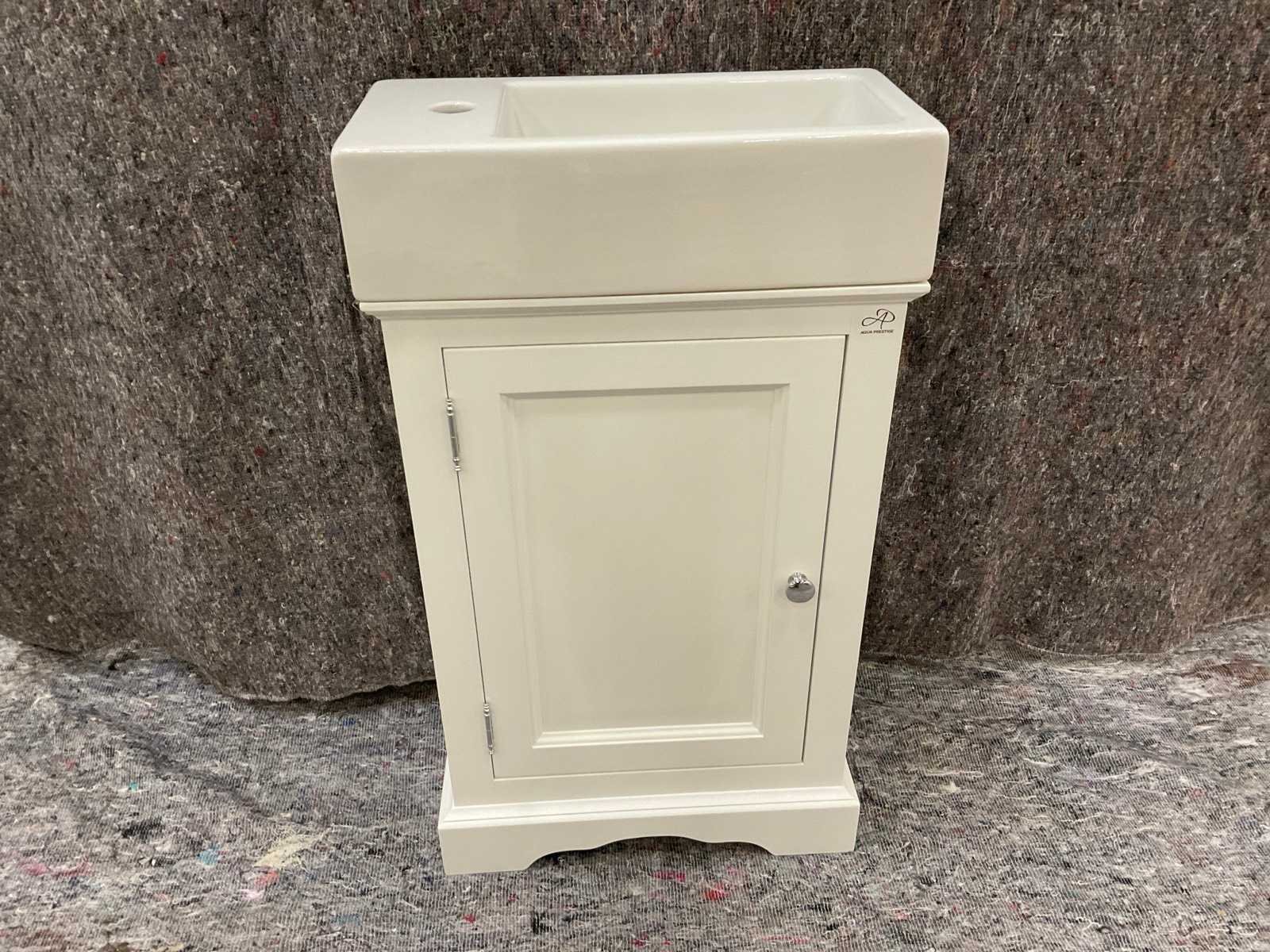 Met kraangat (links of rechts). Merk: Aqua Prestige Model: Camrose 50cm Kleur: Chroom / Wit Lengte: 50cm Breedte: 25cm Hoogte: 89cm