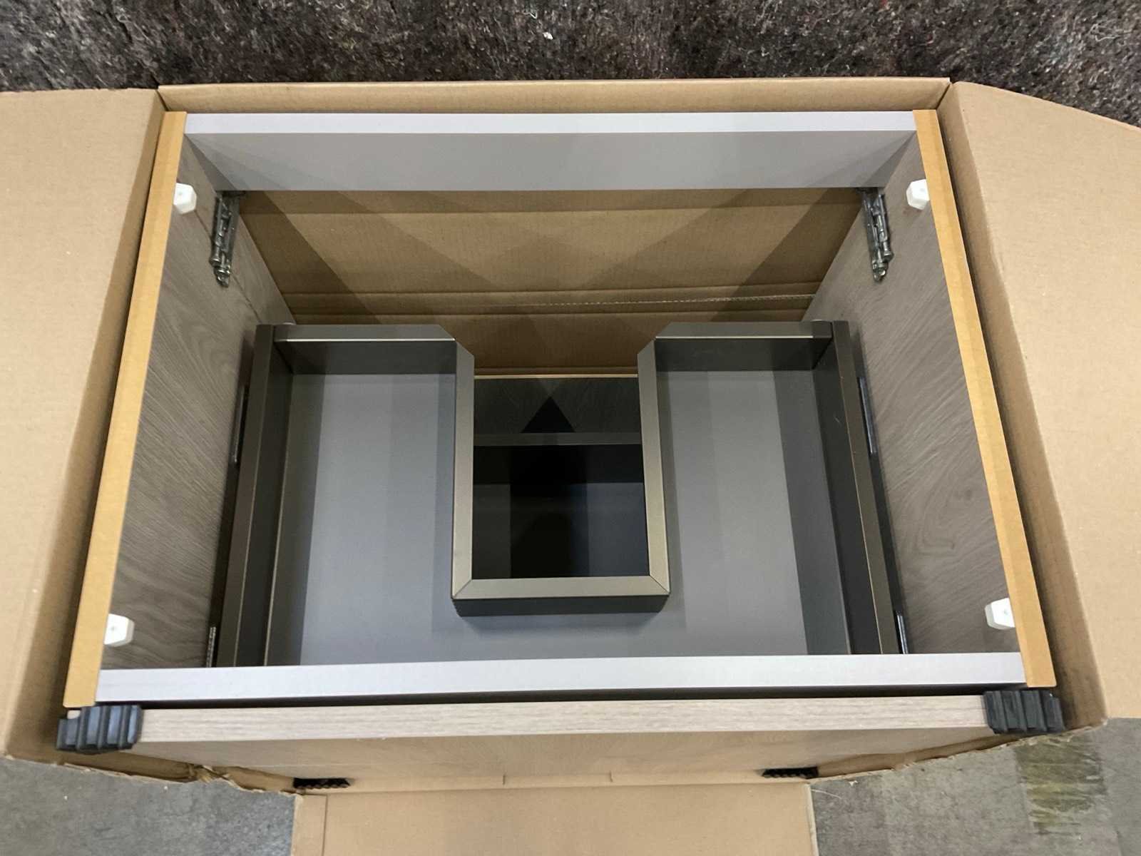 Met 2x lade. Merk: Delpha Model: D-Motion 60cm Kleur: Epicea Grijs Lengte: 60cm Breedte: 46cm Hoogte: 62cm
