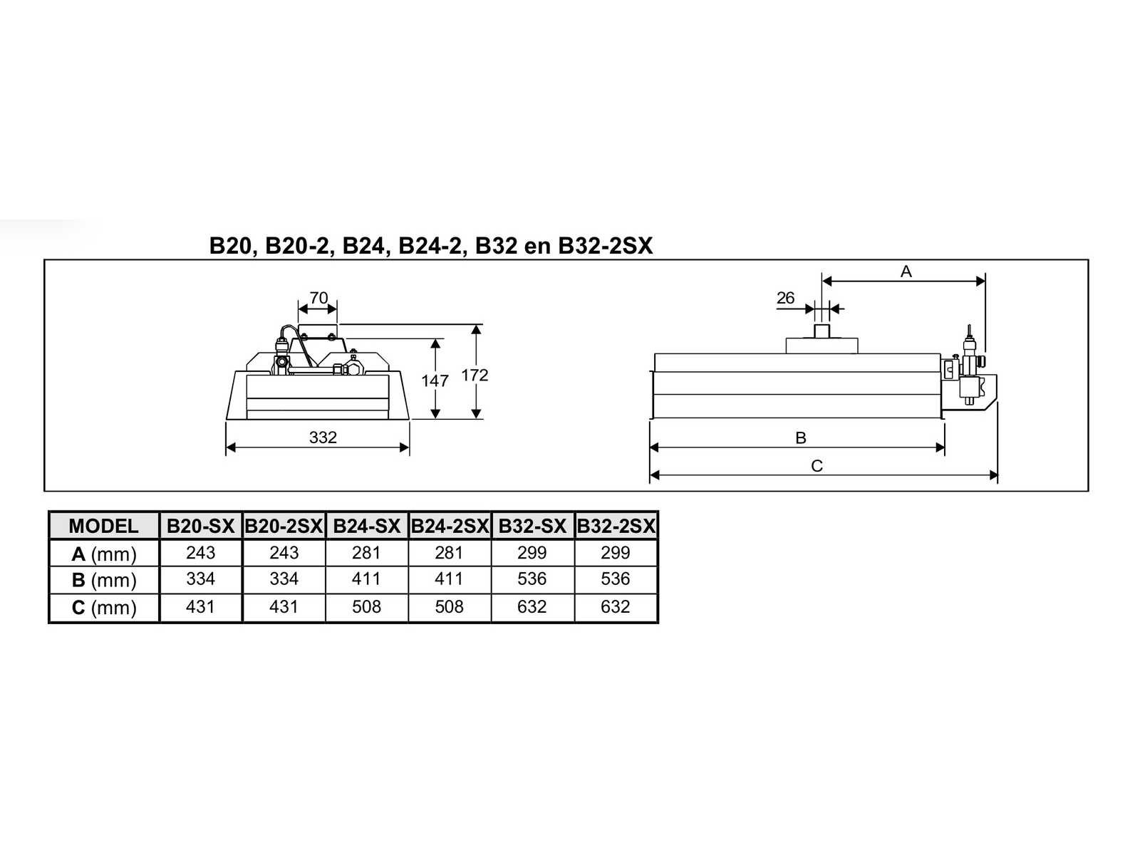Soper b32 sx g20/g25 13.5kw gasgestookte infraroodstraler