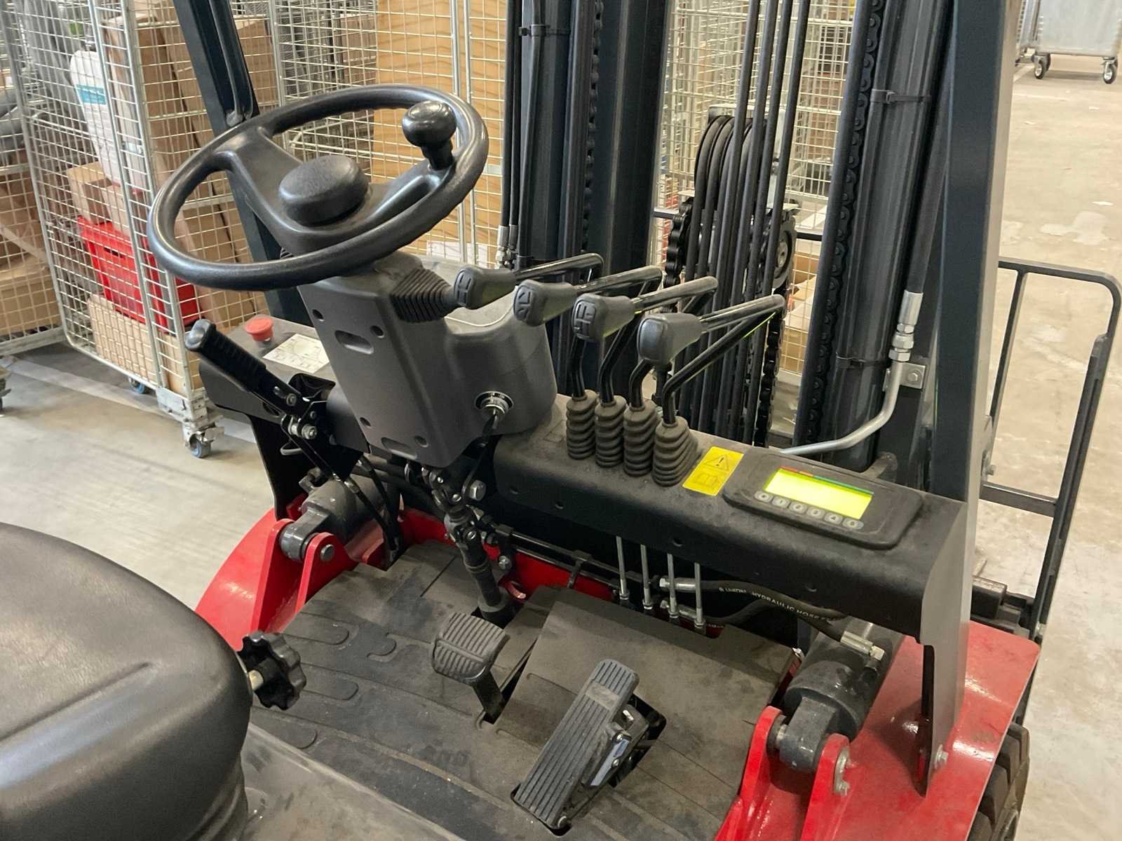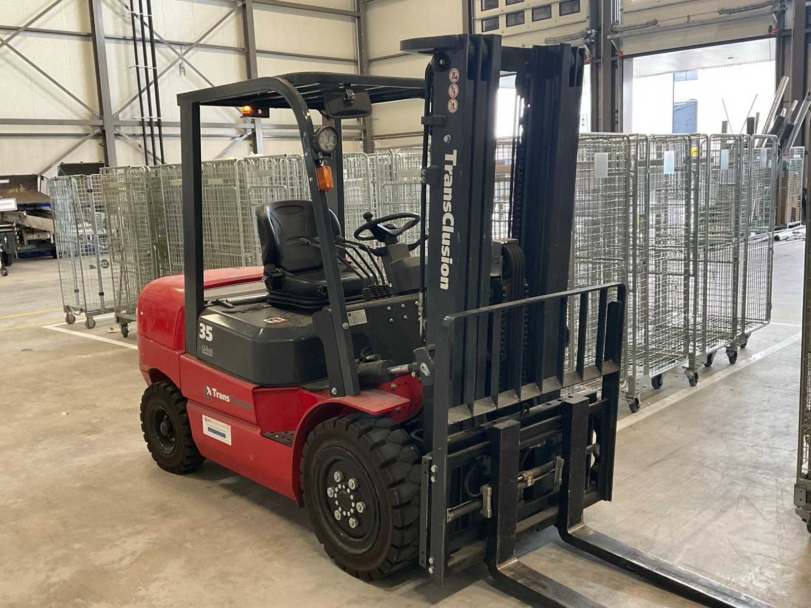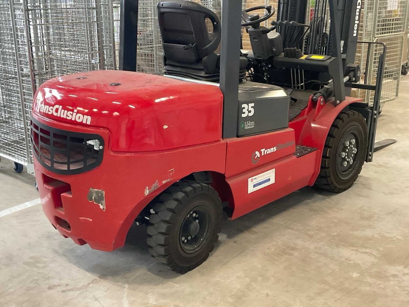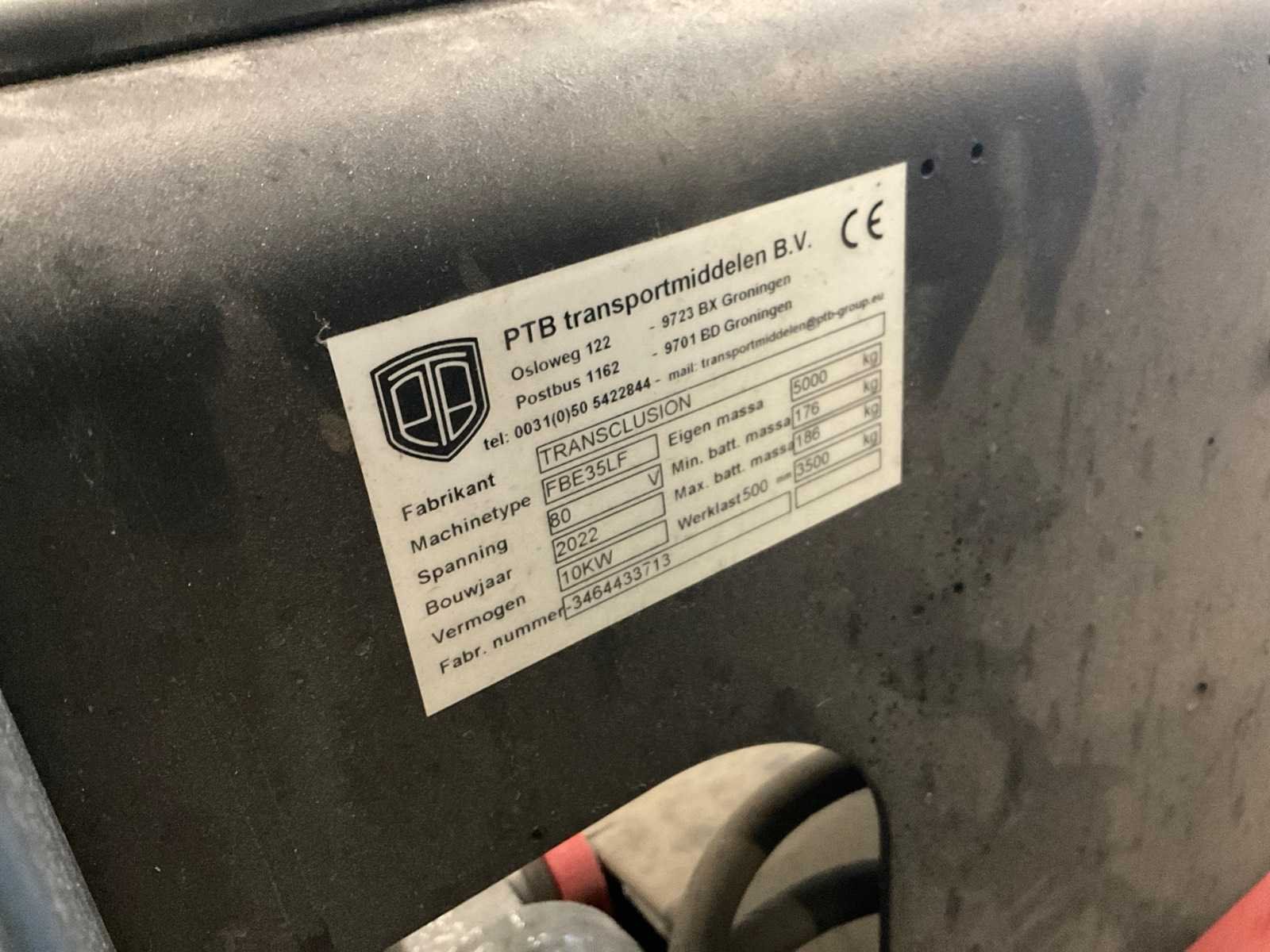 Let op! Uitlevering geschiedt op afspraak. Merk: Transclusion Type: FBE35LF Bouwjaar: 2022 Brandstof: Elektrisch Aantal wielen: 4 Afgelezen urenstand: 242 Accu lader: true Triple mast: true Eigen gewicht: 5000kg Hefvermogen: 3500kg Vol rubber banden: true